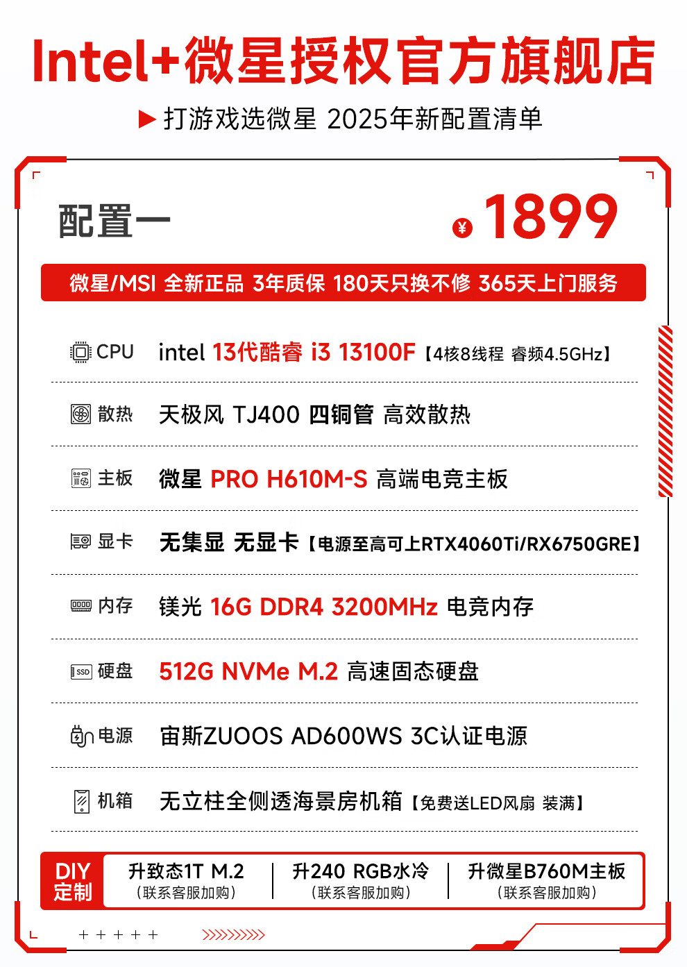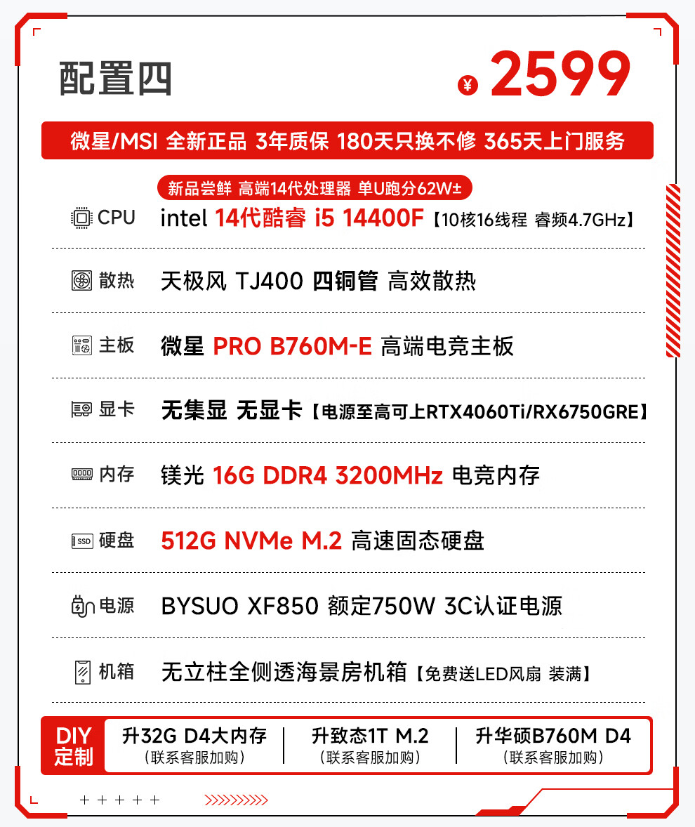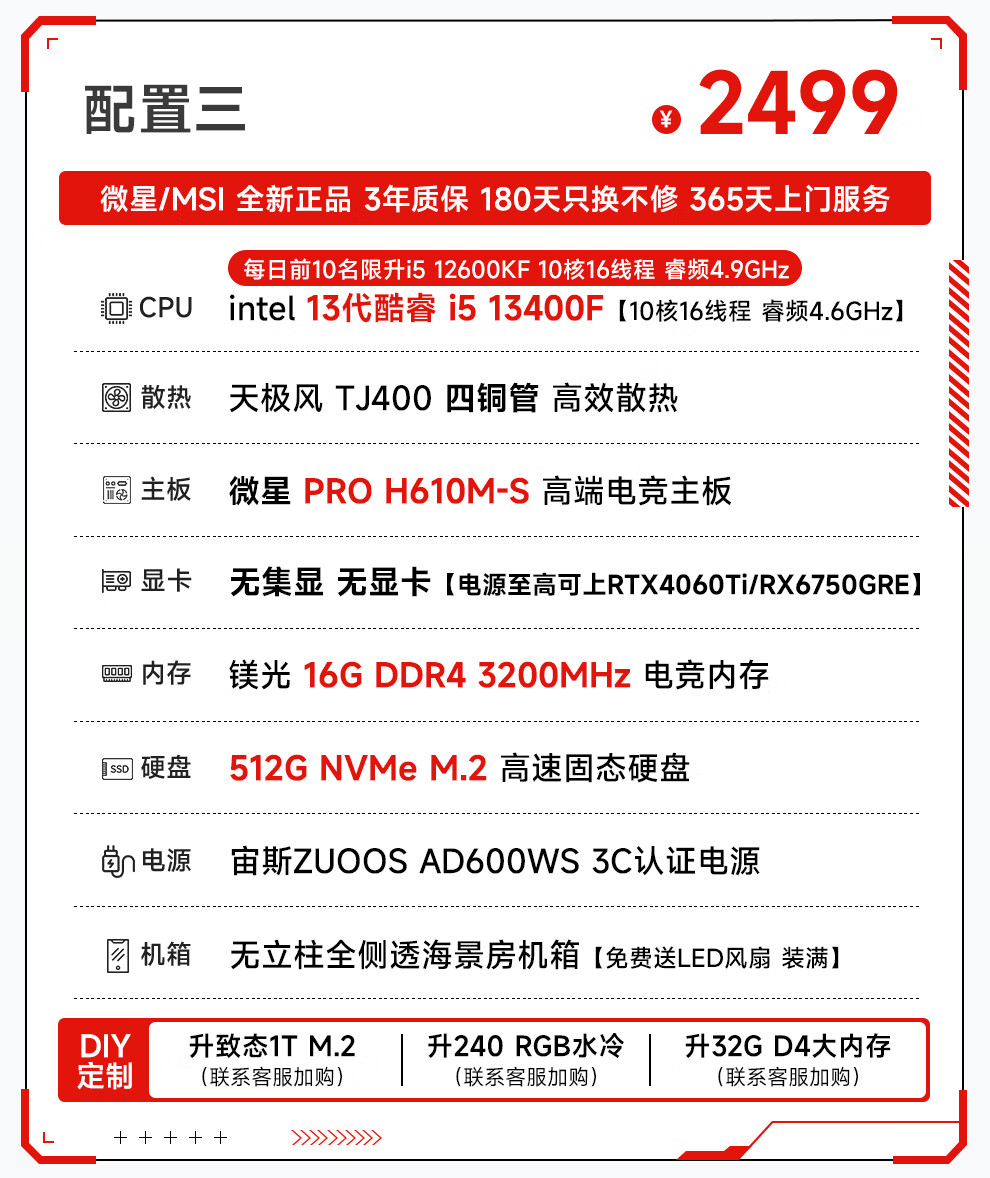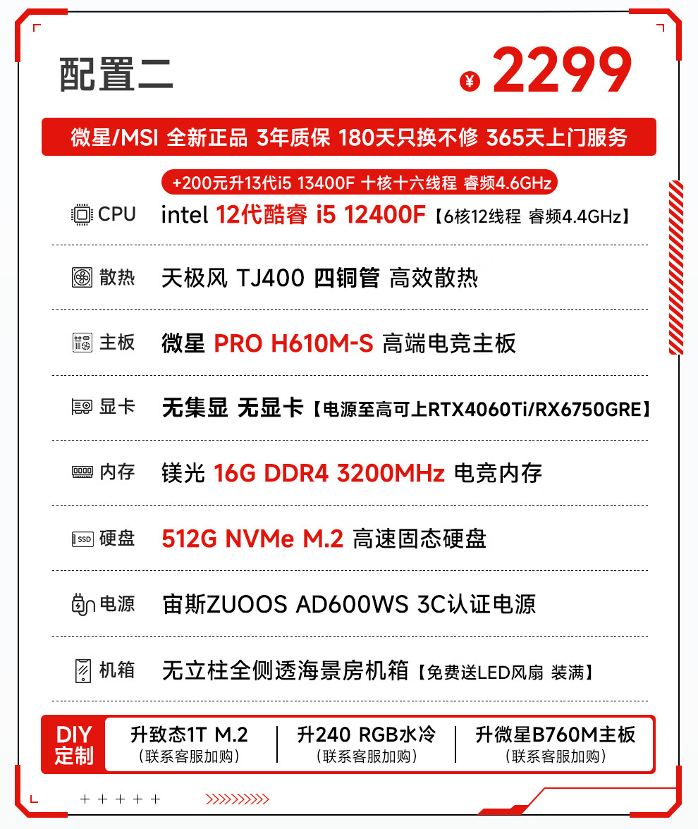 MSI i5 12400F/13400F/14600KF/13700F/14700KF assembled computer desktop console game design without graphics card MSI quasi-system DIY assembly machine configuration two i5 12400F+16G+512G