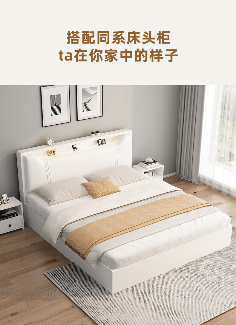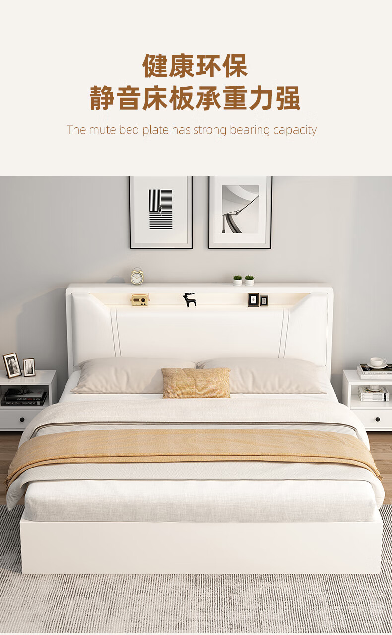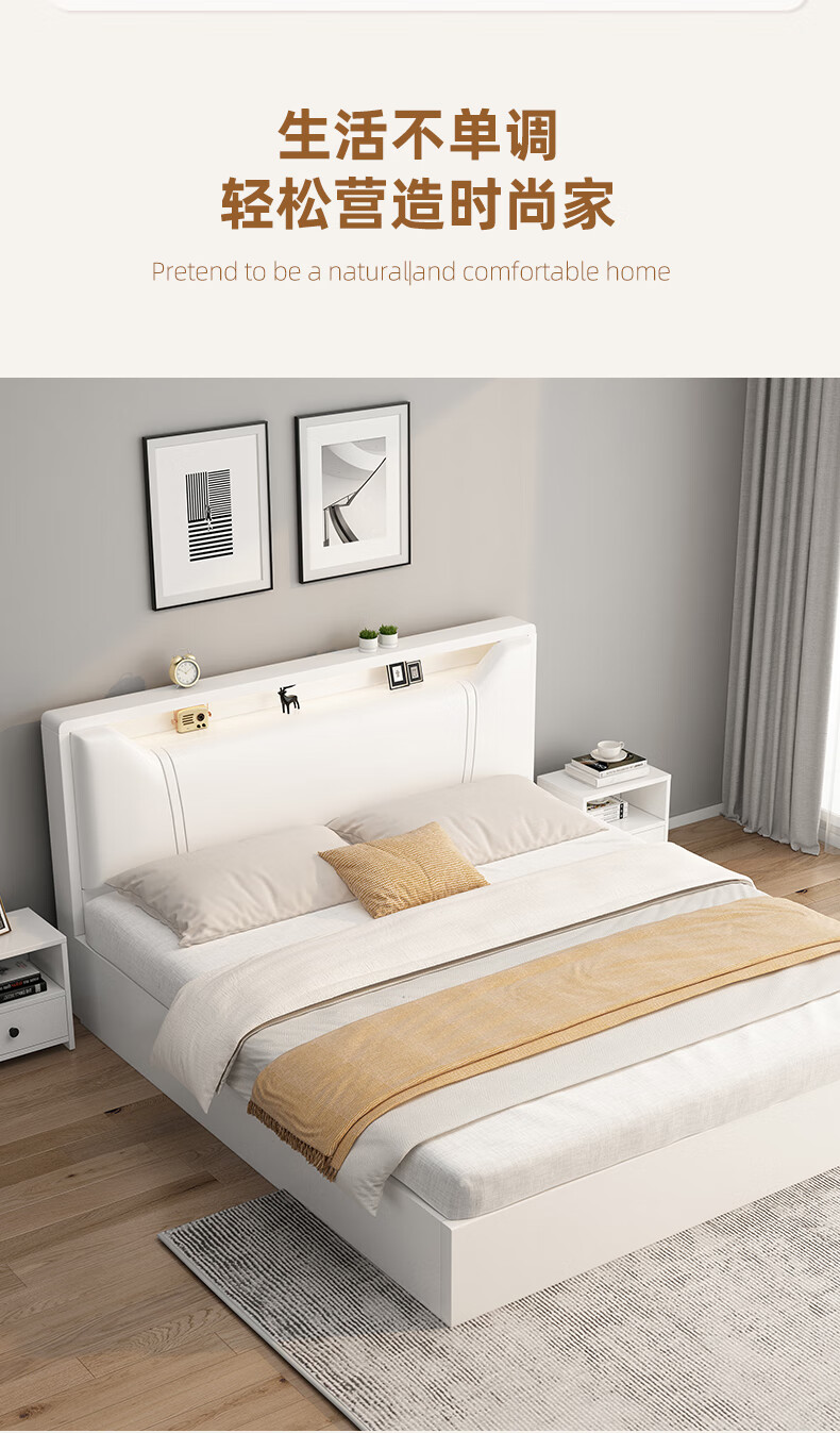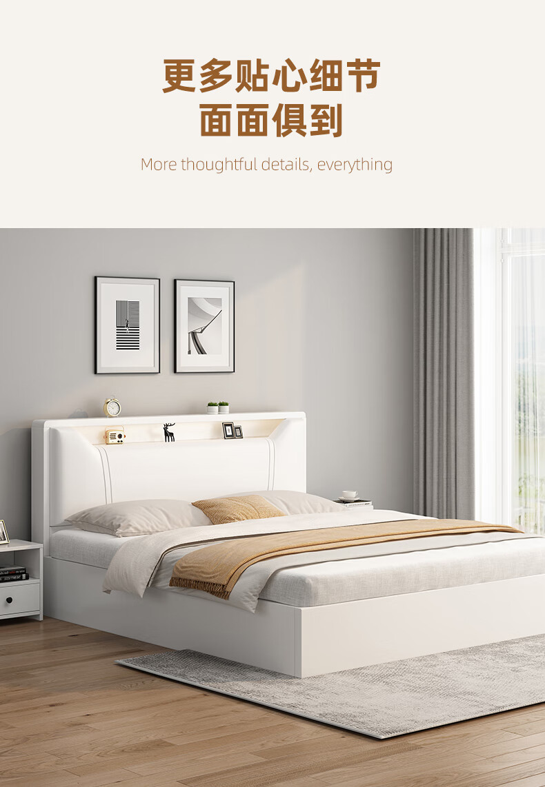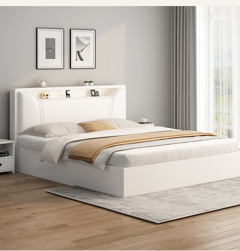 Edith bed solid wood bed 1.8 meters double bed master bedroom king bed simple small apartment rental room soft package single bed storage bed white single bed 1500mm*2000mm