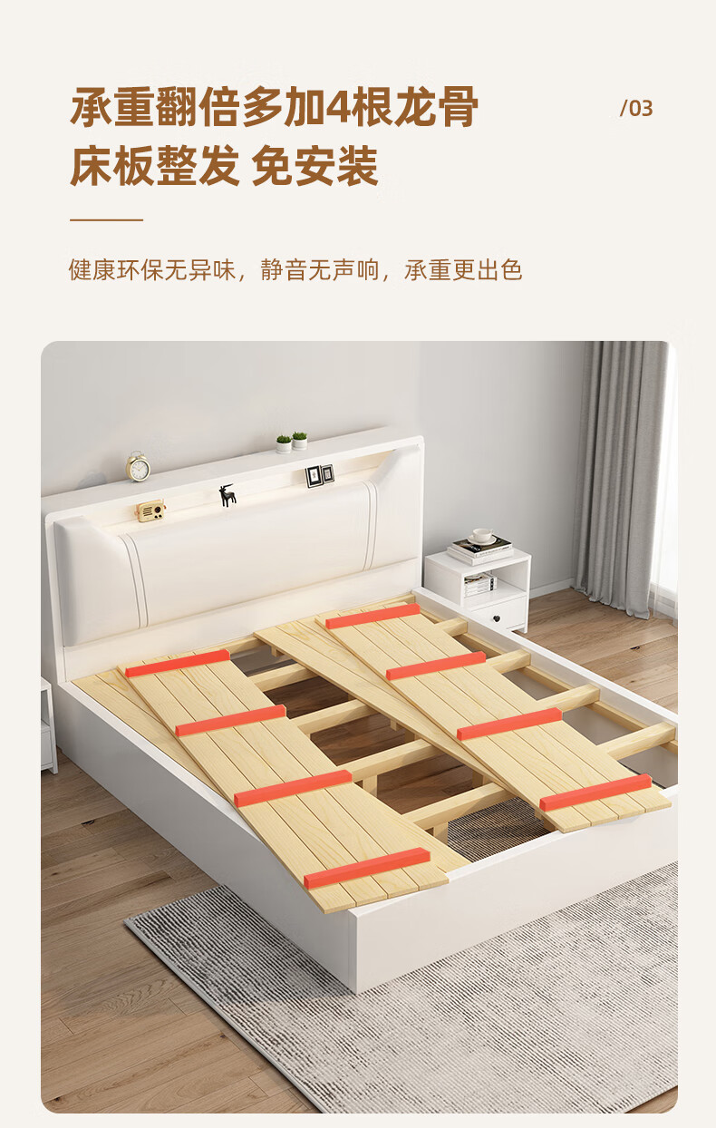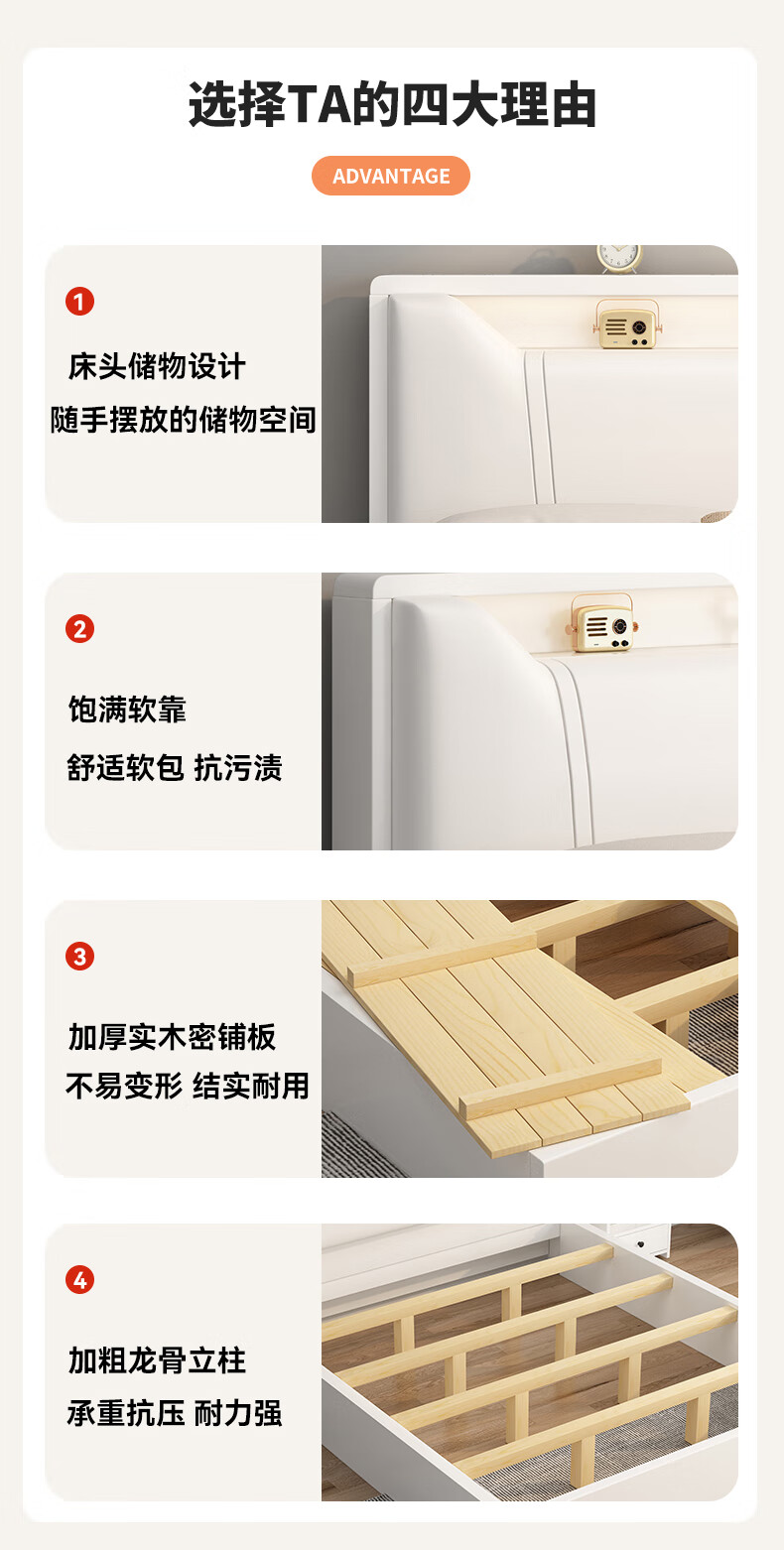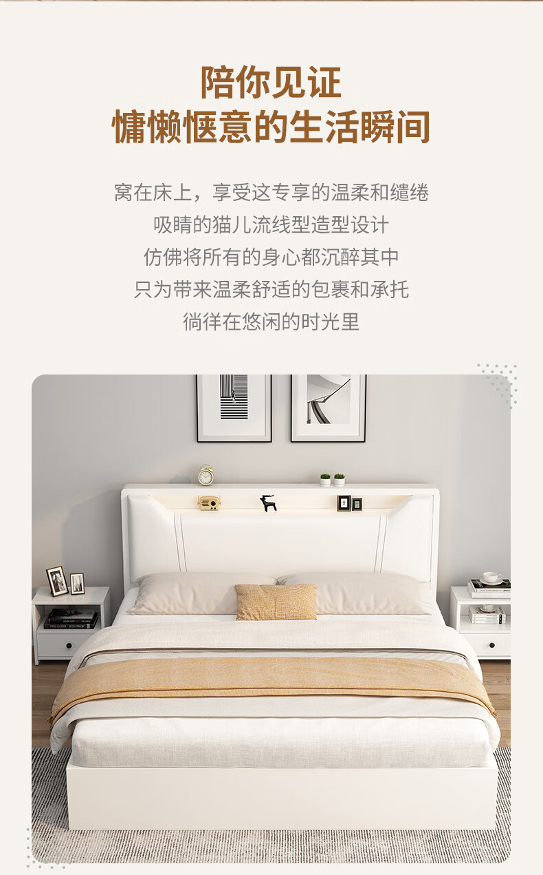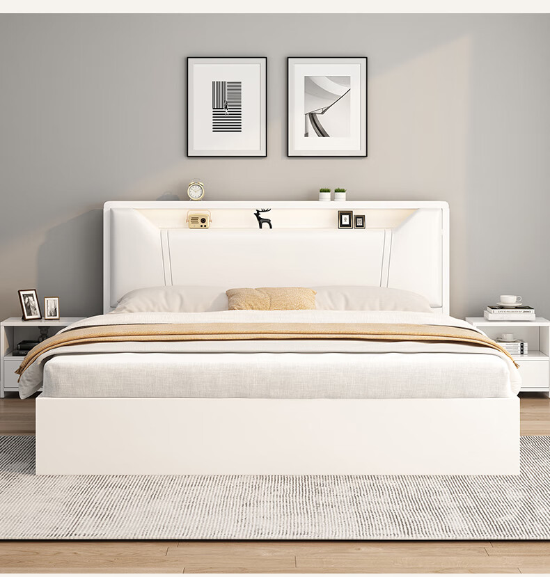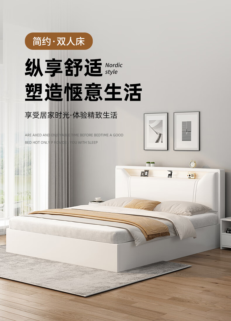 Edith bed solid wood bed 1.8 meters double bed master bedroom king bed simple small apartment rental room soft package single bed storage bed white single bed 1500mm*2000mm