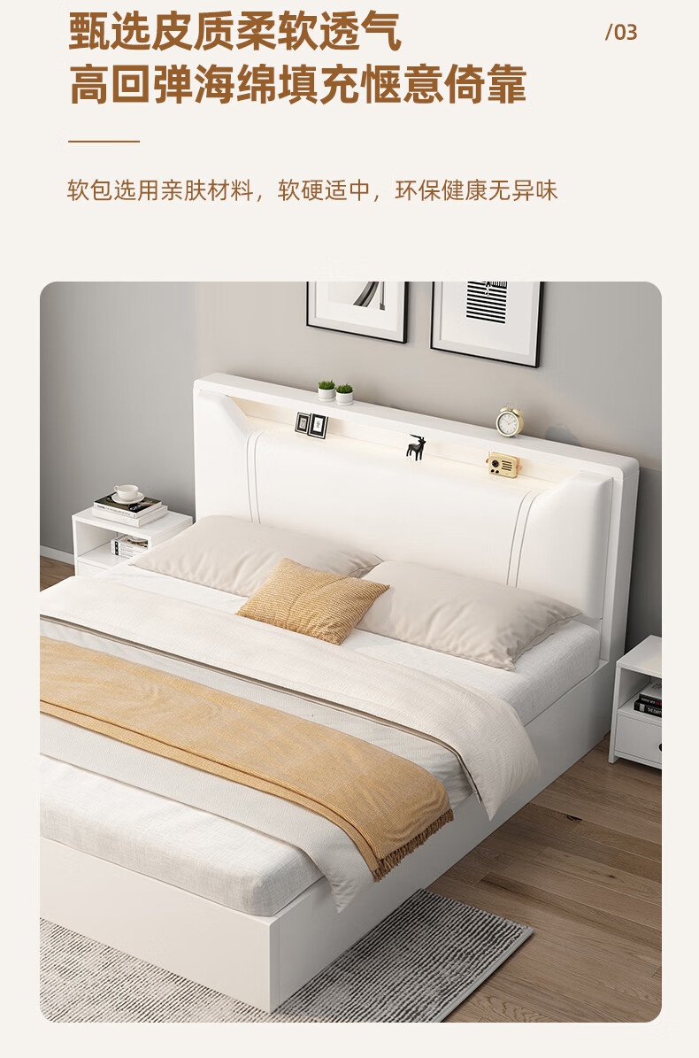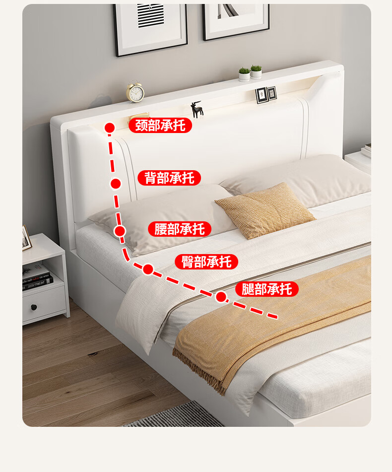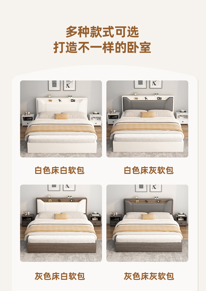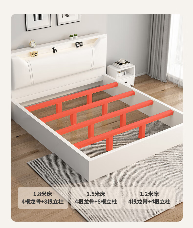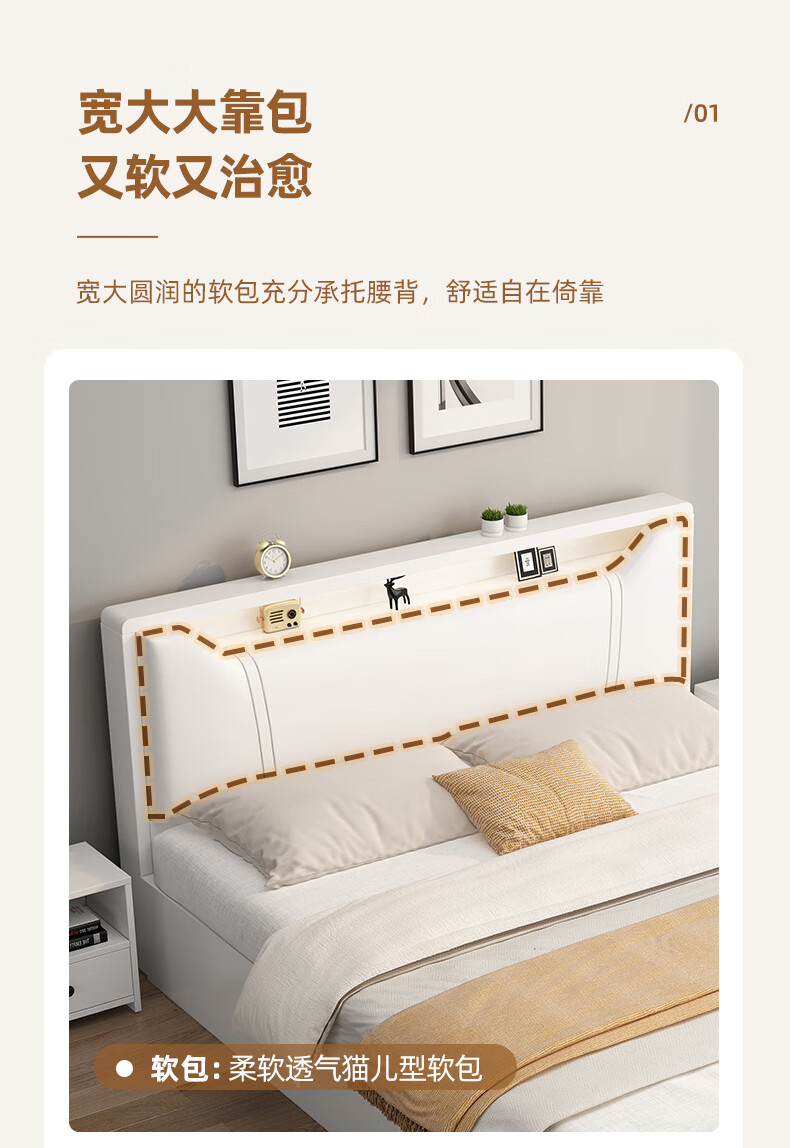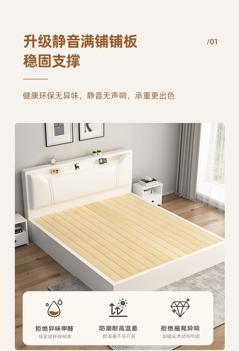 Edith bed solid wood bed 1.8 meters double bed master bedroom king bed simple small apartment rental room soft package single bed storage bed white single bed 1500mm*2000mm