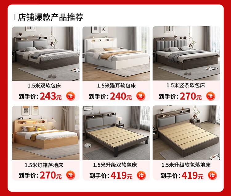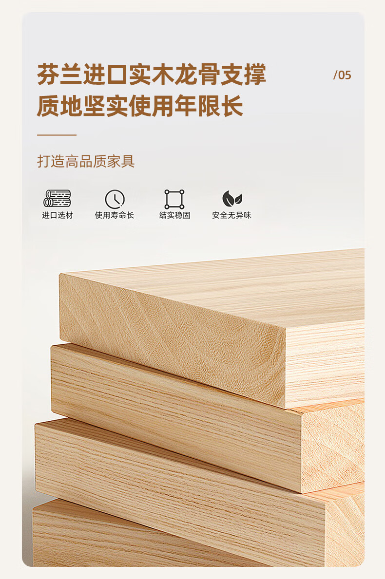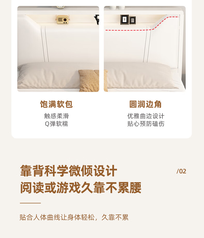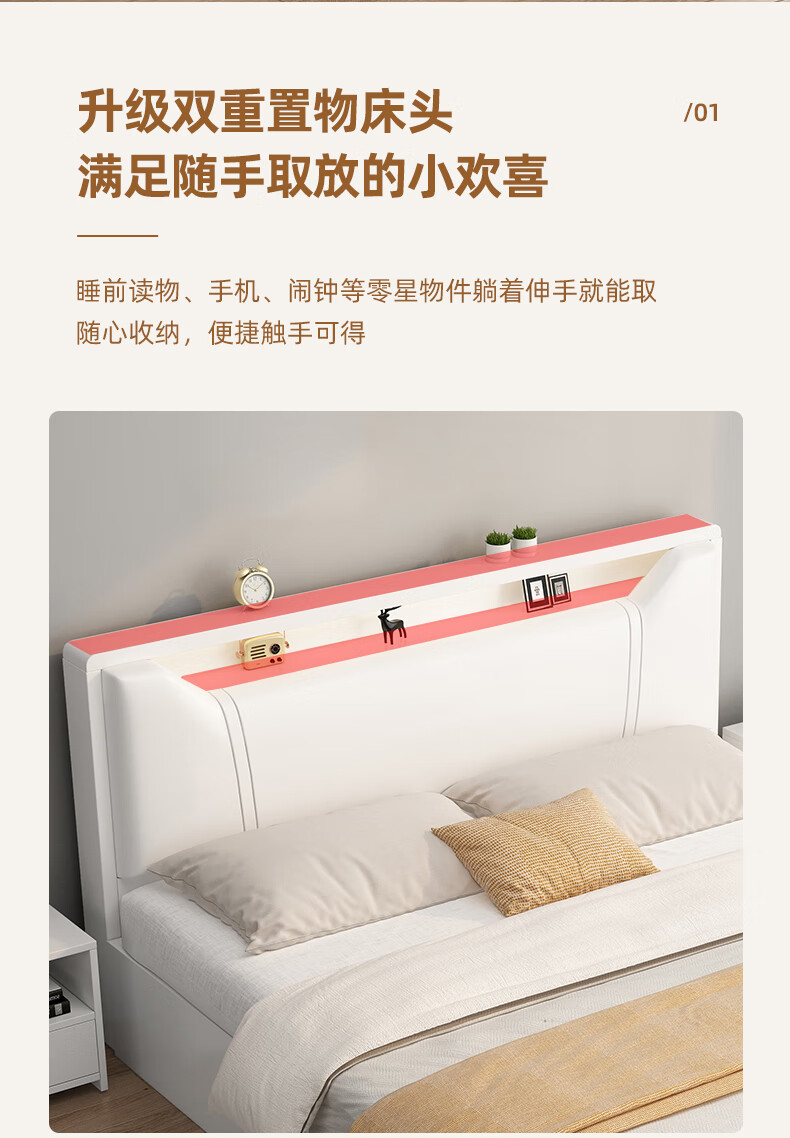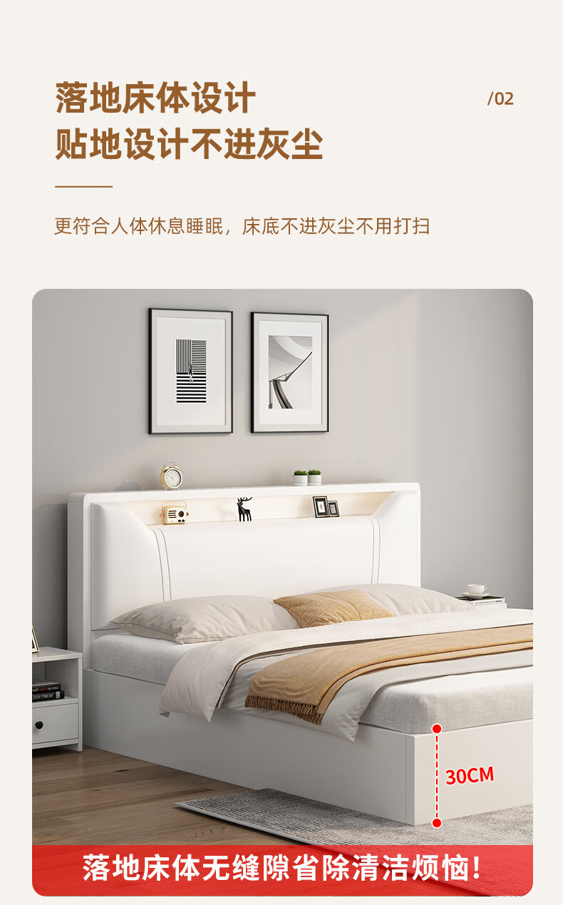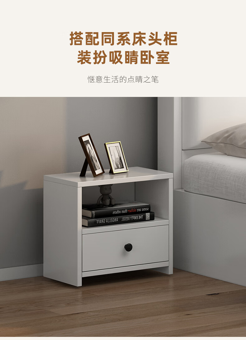 Edith bed solid wood bed 1.8 meters double bed master bedroom king bed simple small apartment rental room soft package single bed storage bed white single bed 1500mm*2000mm