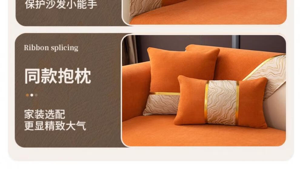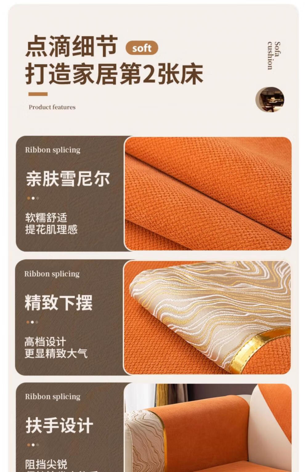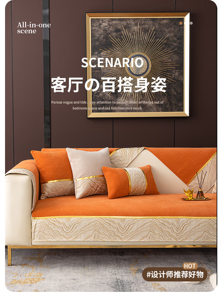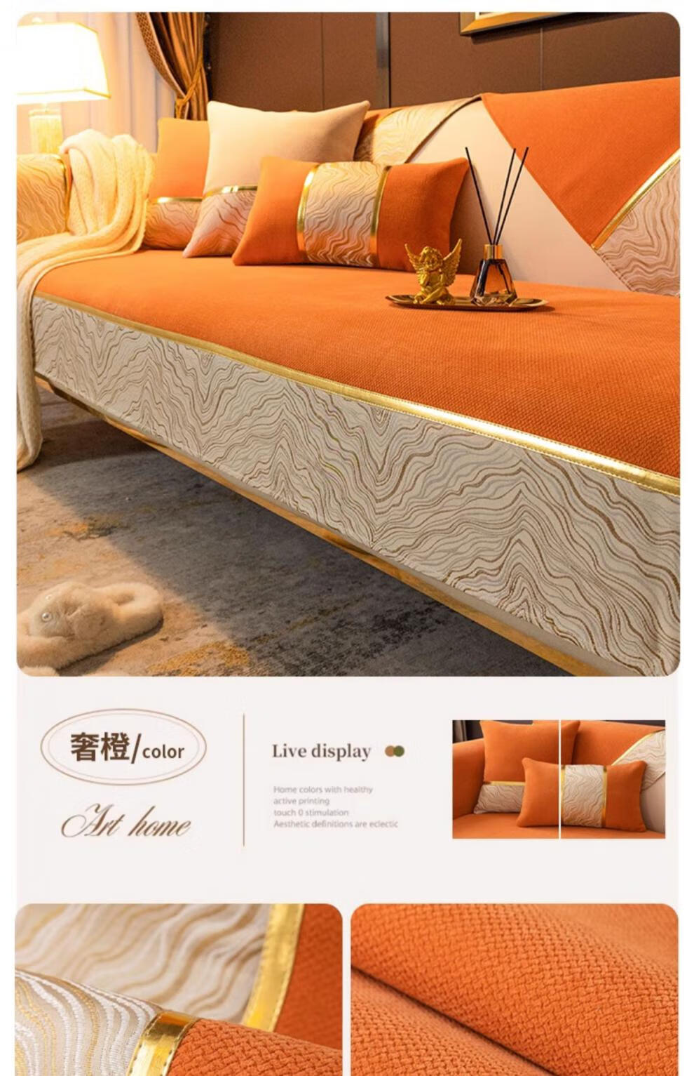 Baixini leather orange sofa cushion, universal non-slip cushion cover, cloth towel for summer, new style, high-end, Mangyao-orange (upgraded and thickened chenille) 70*70cm one piece (can be used as armrest/backrest)