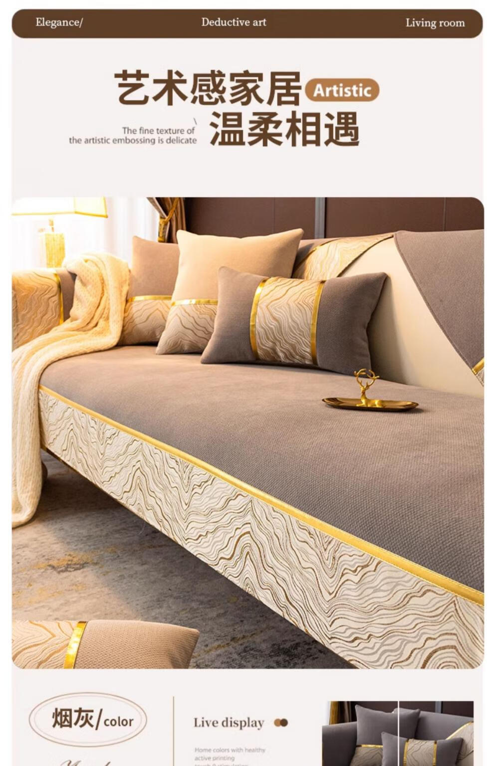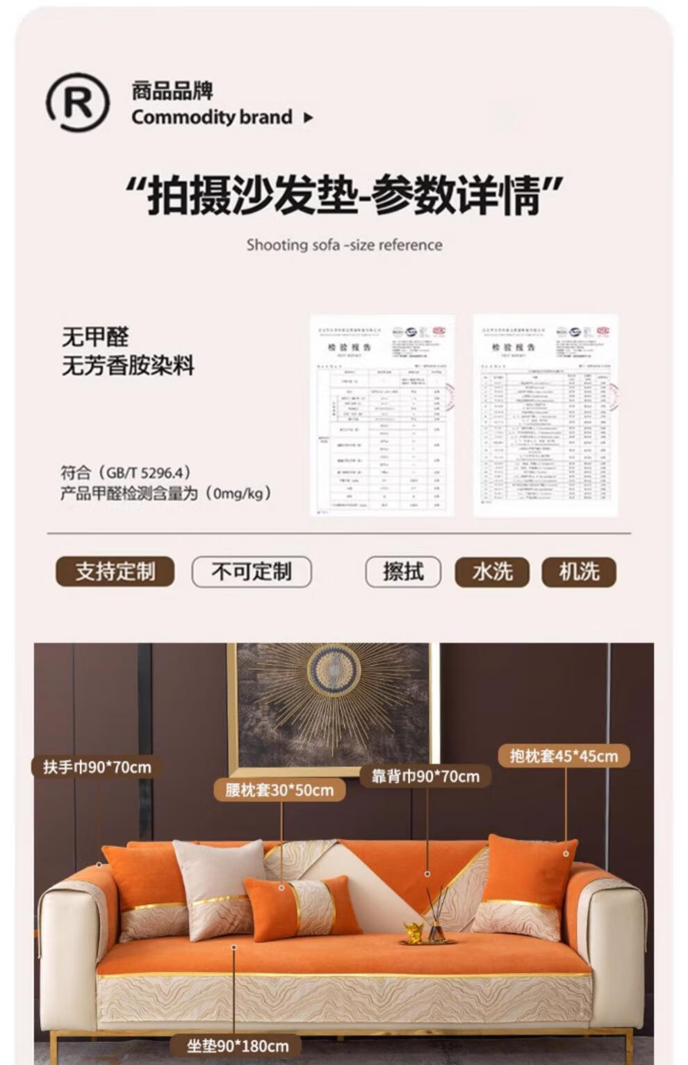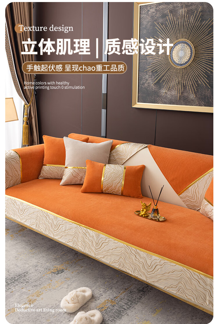 Baixini leather orange sofa cushion, universal non-slip cushion cover, cloth towel for summer, new style, high-end, Mangyao-orange (upgraded and thickened chenille) 70*70cm one piece (can be used as armrest/backrest)
