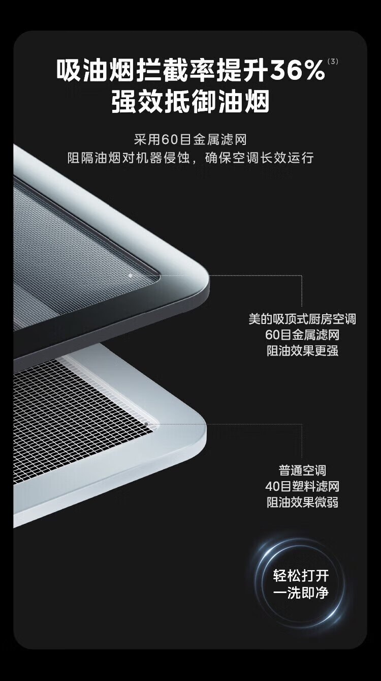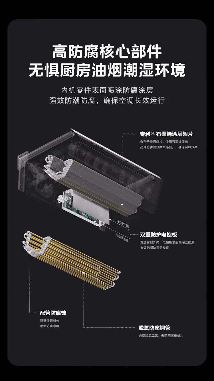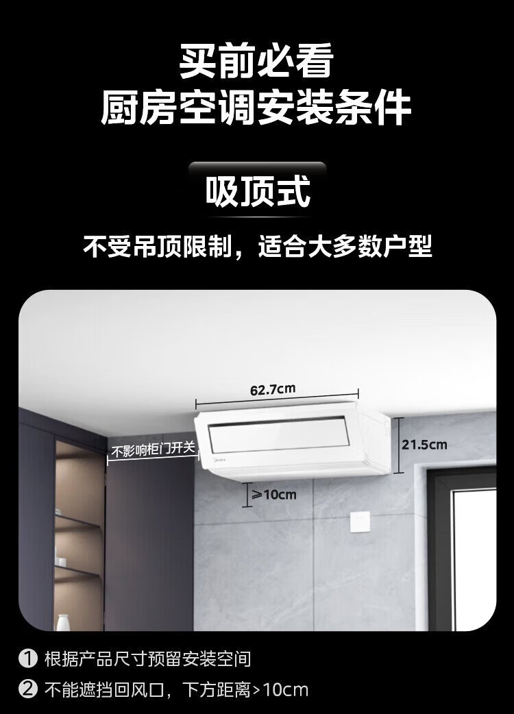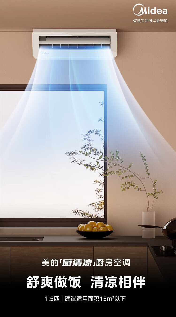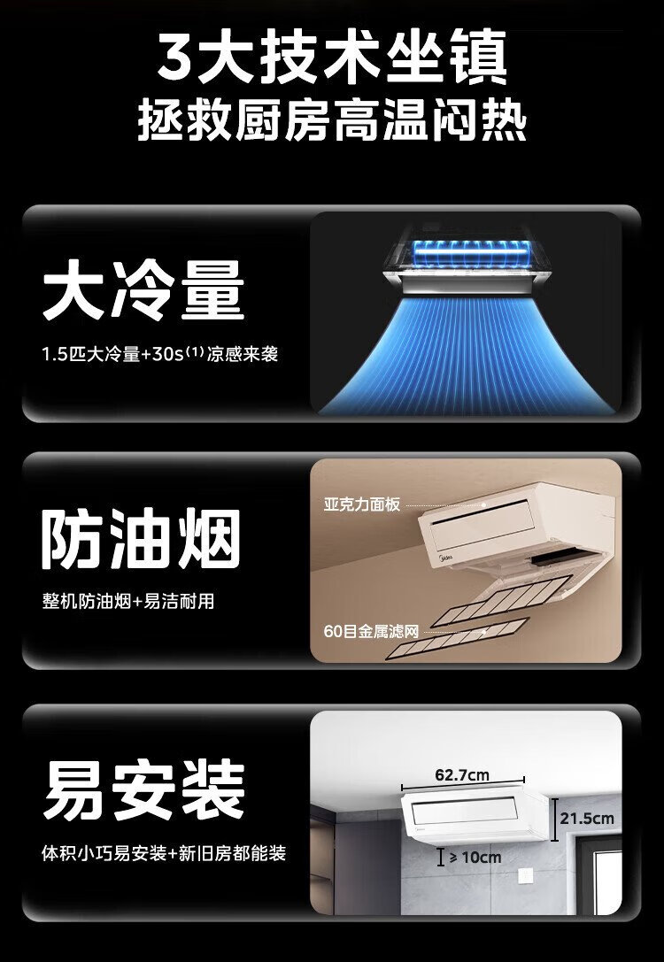 Midea kitchen air conditioner, small cool square, ceiling-mounted 1.5 HP, new level of energy efficiency, frequency conversion energy saving, large cooling capacity of oil fume, special air conditioner for home kitchen, kitchen air conditioner, 1.5 HP, ceiling-mounted XD300, white