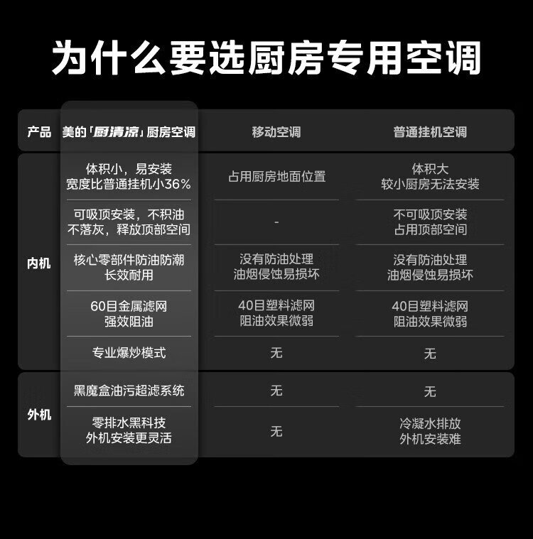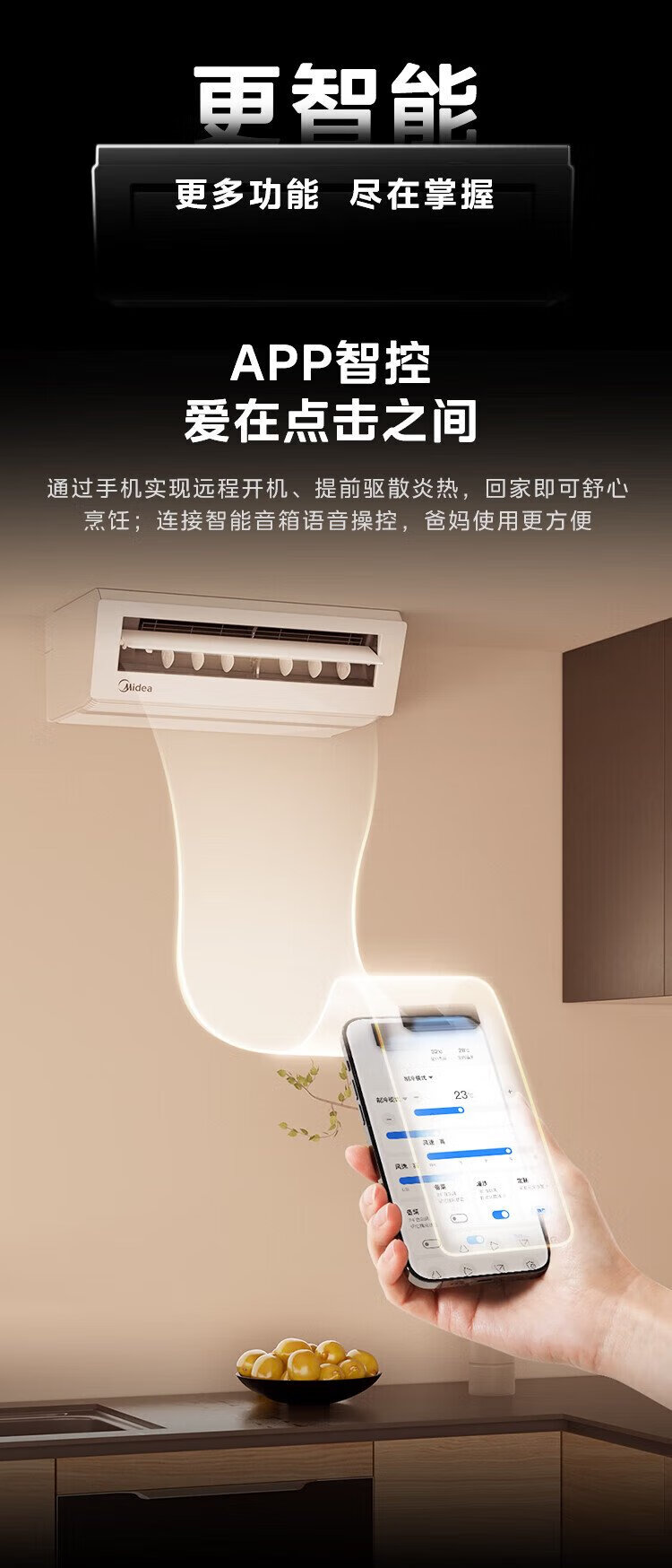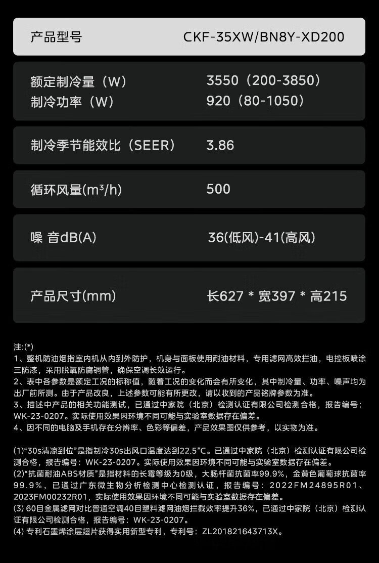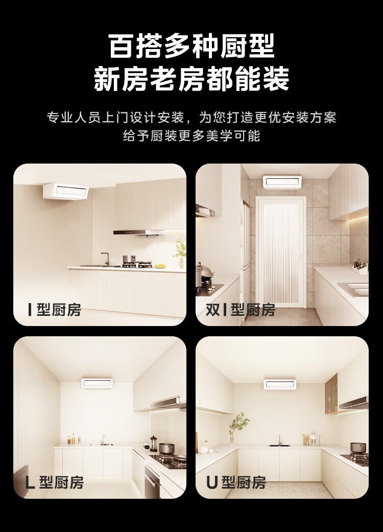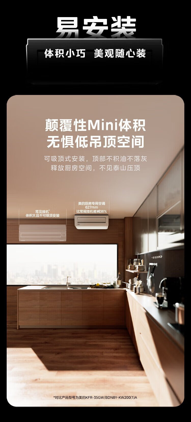 Midea kitchen air conditioner, small cool square, ceiling-mounted 1.5 HP, new level of energy efficiency, frequency conversion energy saving, large cooling capacity of oil fume, special air conditioner for home kitchen, kitchen air conditioner, 1.5 HP, ceiling-mounted XD300, white