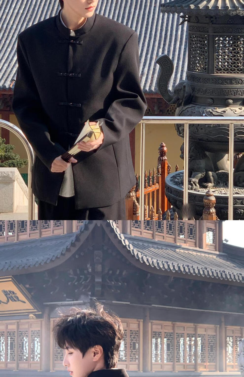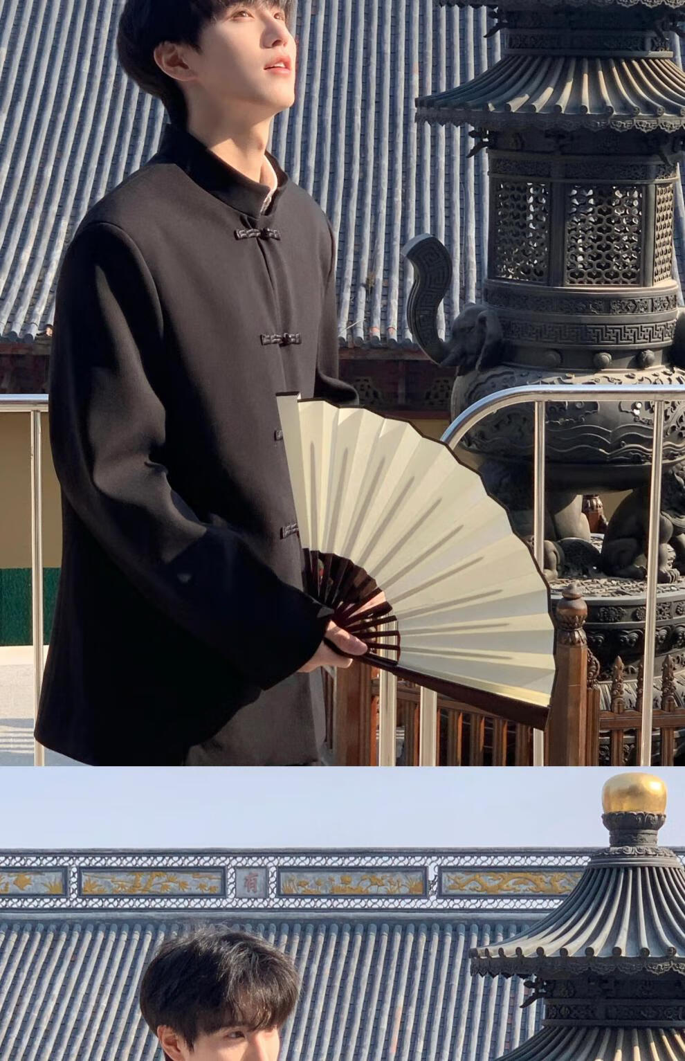 Locochi new Chinese style tunic suit suit for men spring and summer high-end Chinese style stand collar shoulder pad suit Tang suit jacket for men XZ26 tunic suit + white shirt + black trousers + tie 2XL recommended 135-155 Jin Jin equals 0.5 kg