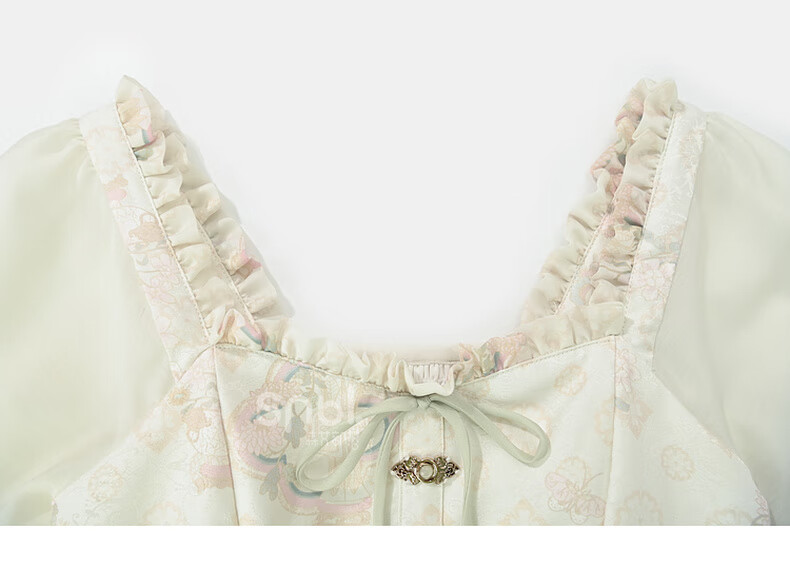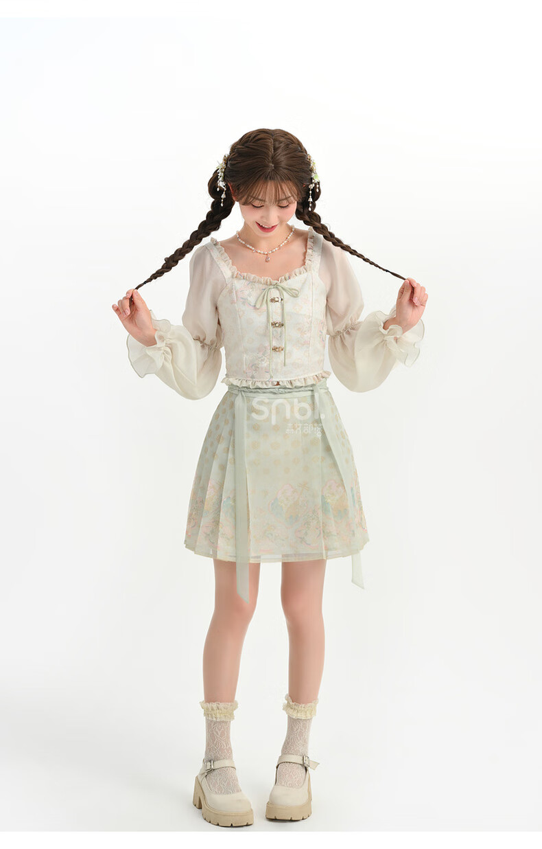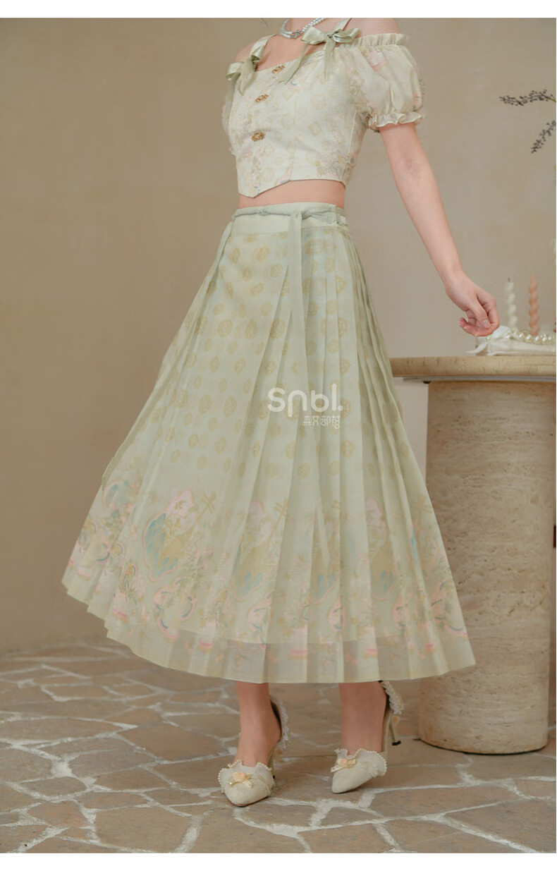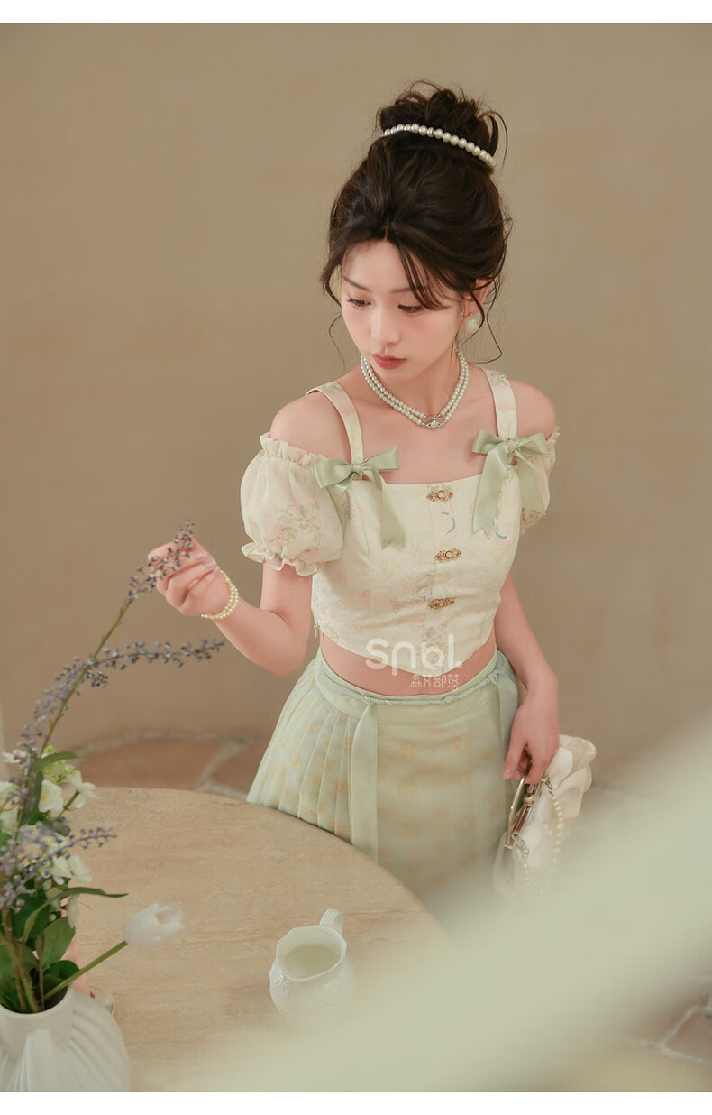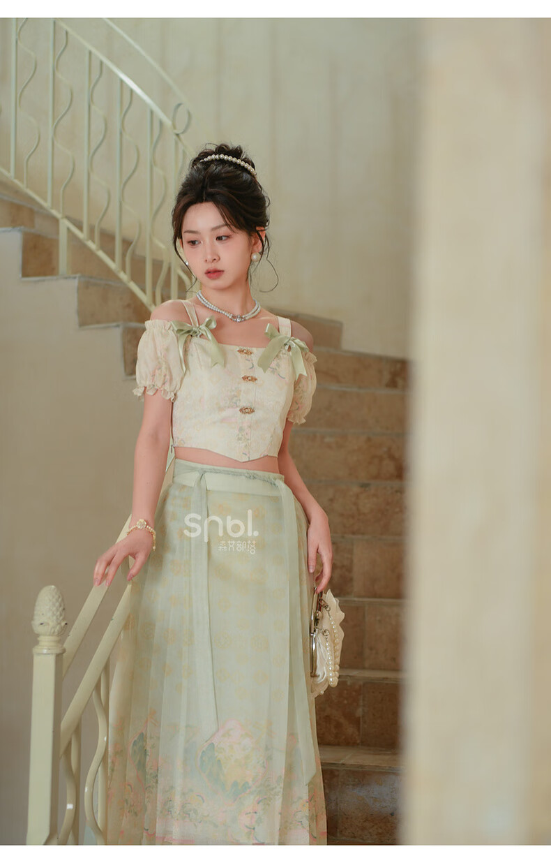 森女部落唐代紫檀木画槽琵琶气质雪纺衫套装新中式改良马面裙东方简奢风 短袖上衣(单件) 单件 M