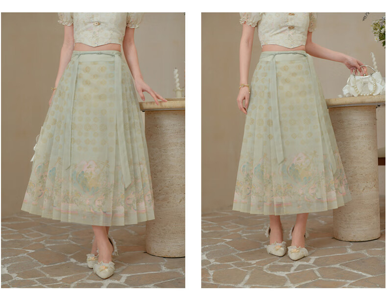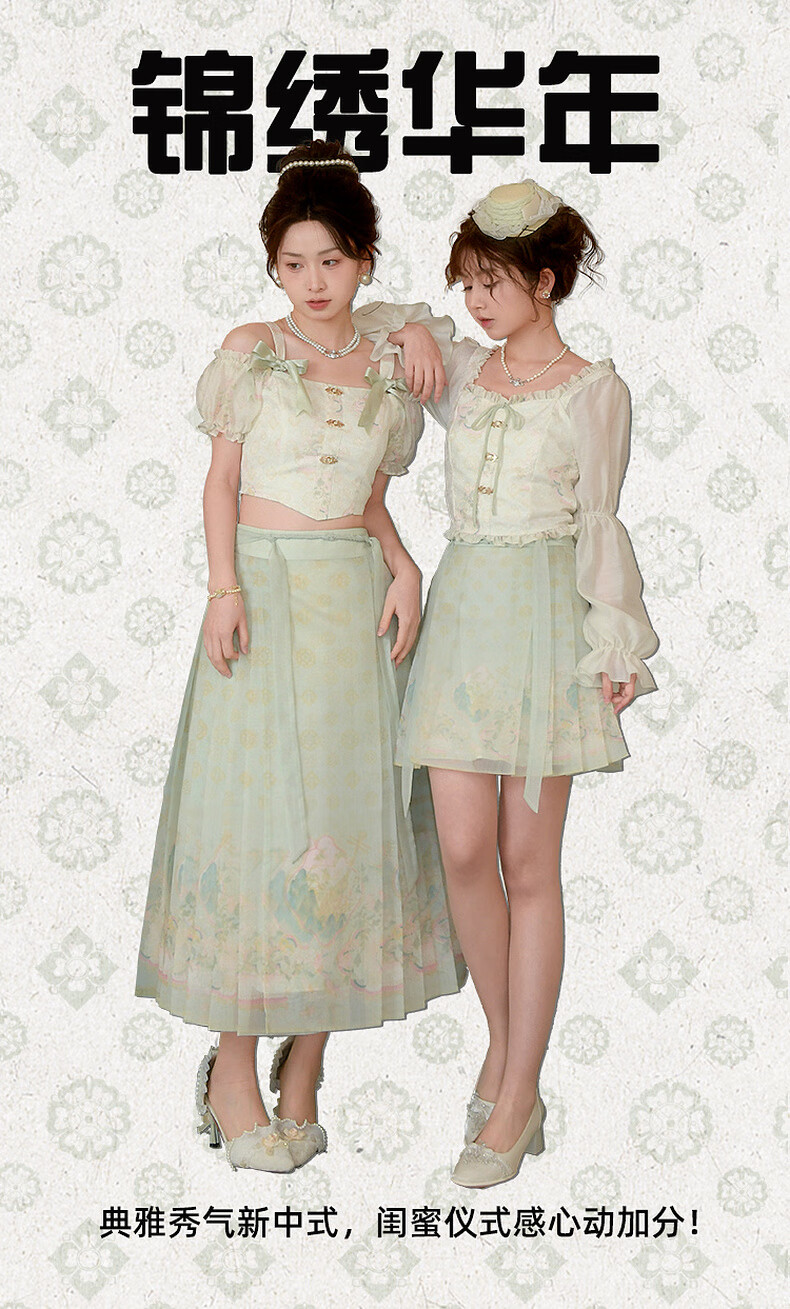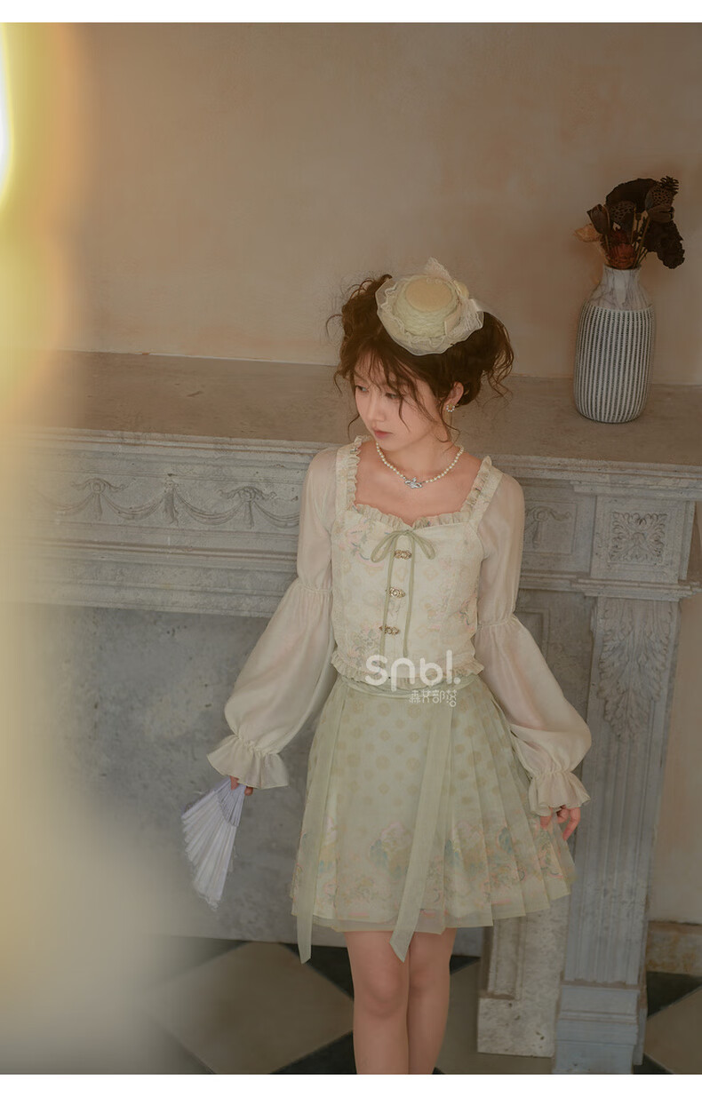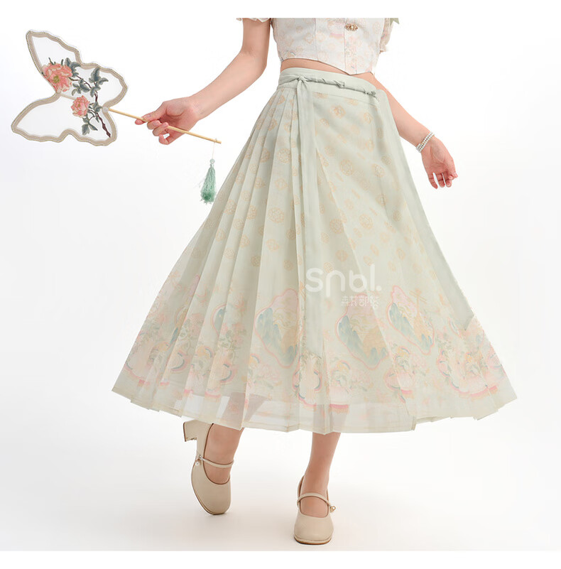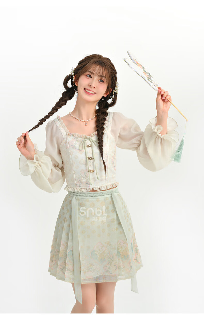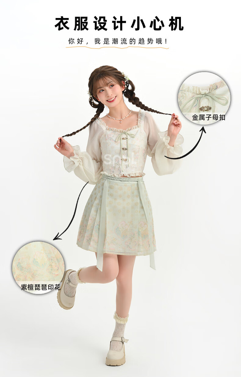 森女部落唐代紫檀木画槽琵琶气质雪纺衫套装新中式改良马面裙东方简奢风 短袖上衣(单件) 单件 M