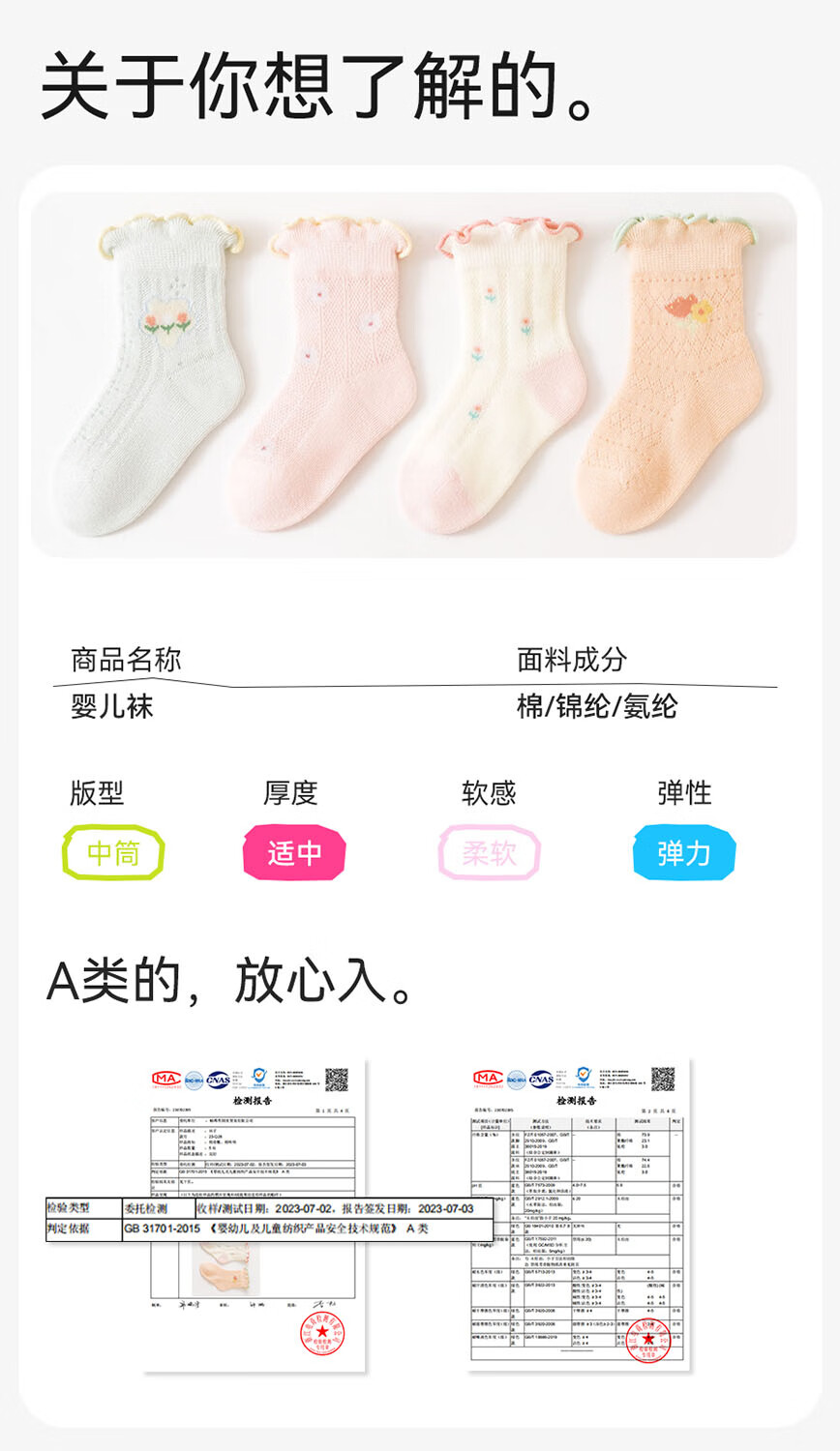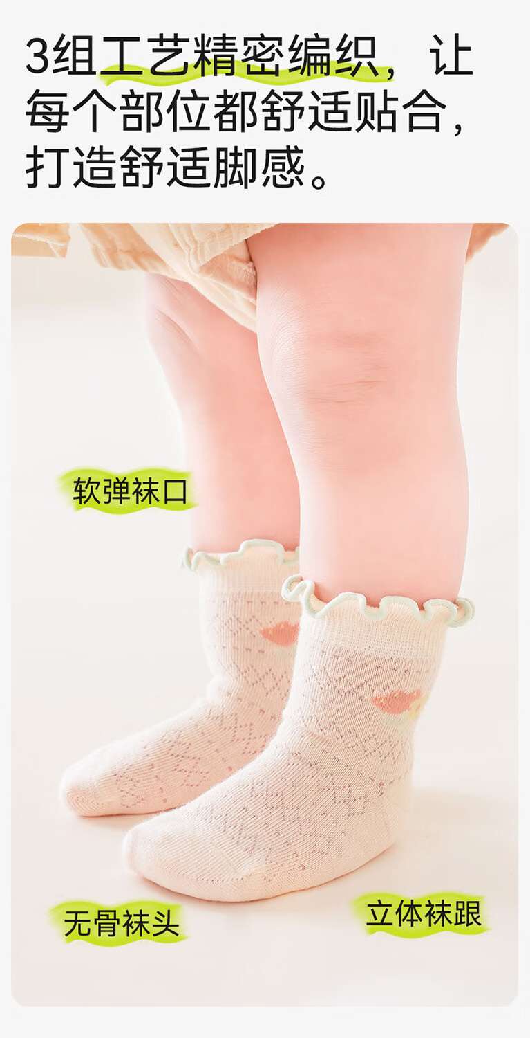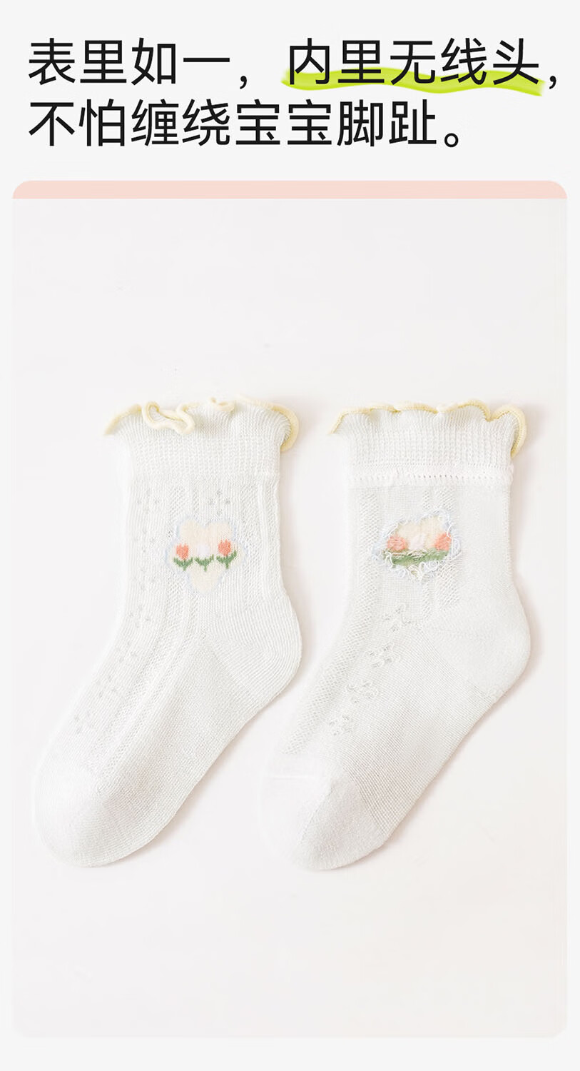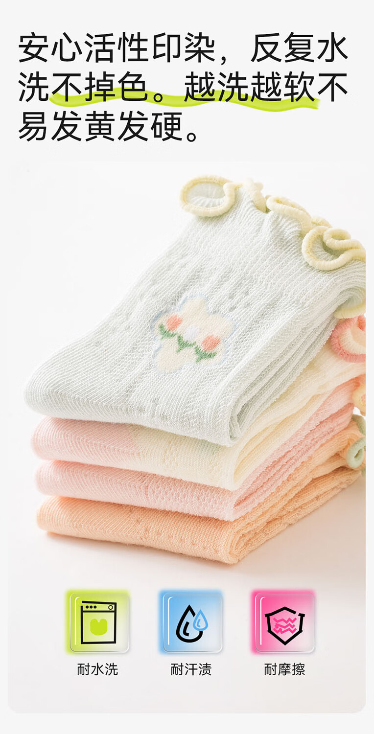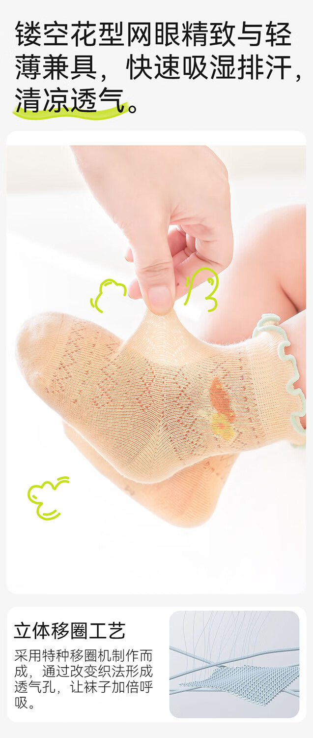 Mianqi Xiong baby socks summer thin pure cotton mesh socks baby fungus summer breathable socks newborn newborn thin socks B1017-4 pairs light mesh socks 6-12 months - size M, foot length 9-11cm