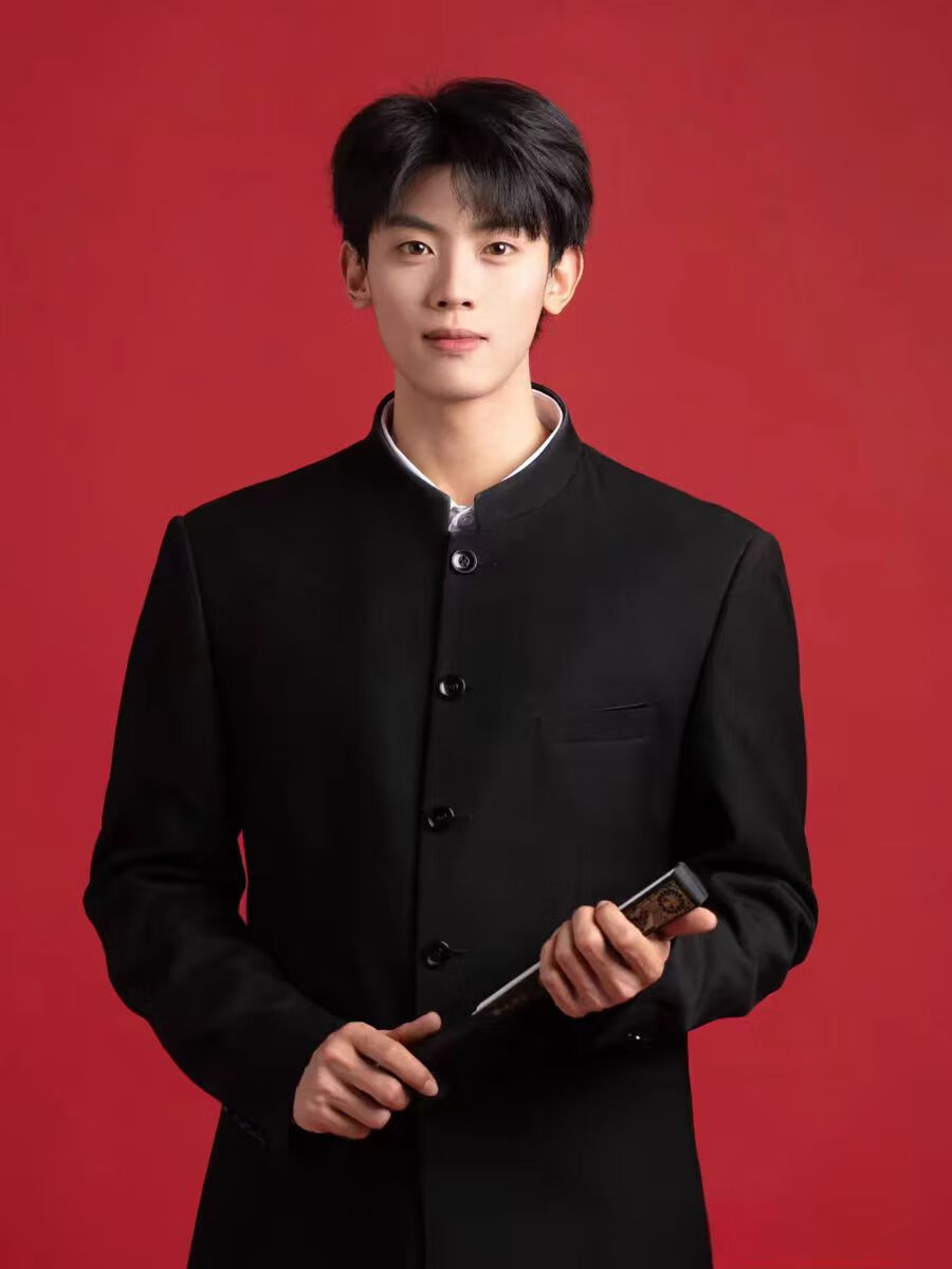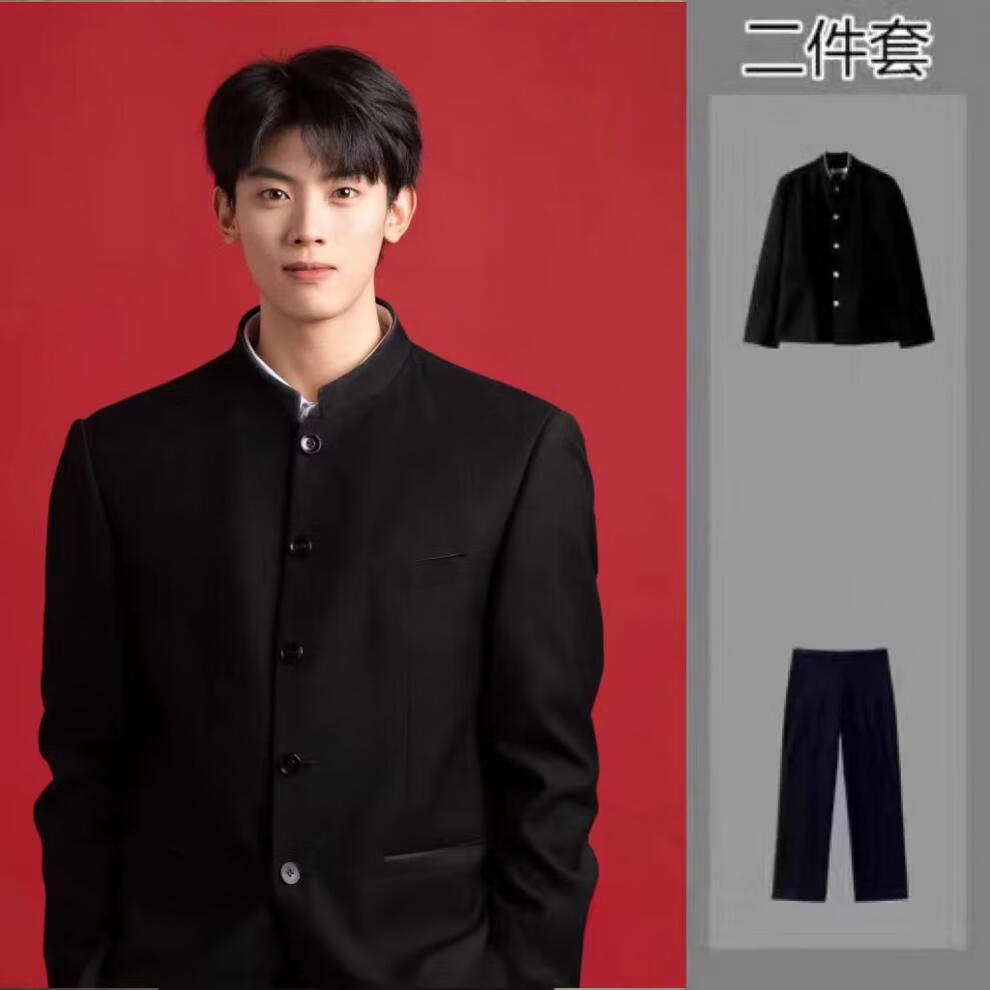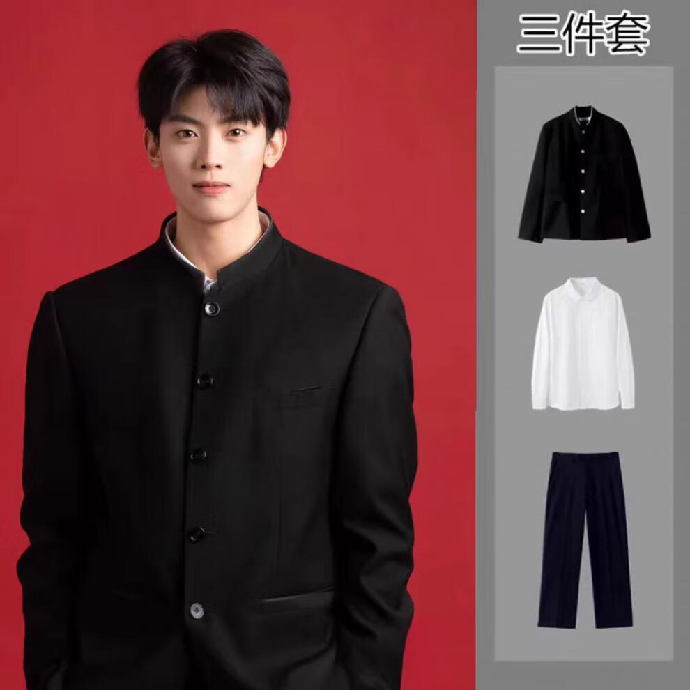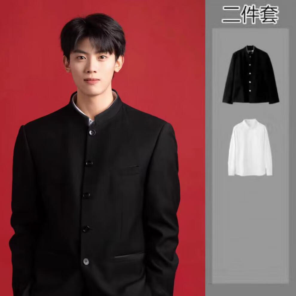 Locochi new Chinese tunic suit suit for men summer youth Chinese style stand collar shoulder pad suit Tang suit jacket Tang suit jacket + white shirt + black trousers XL Collect and follow for priority delivery
