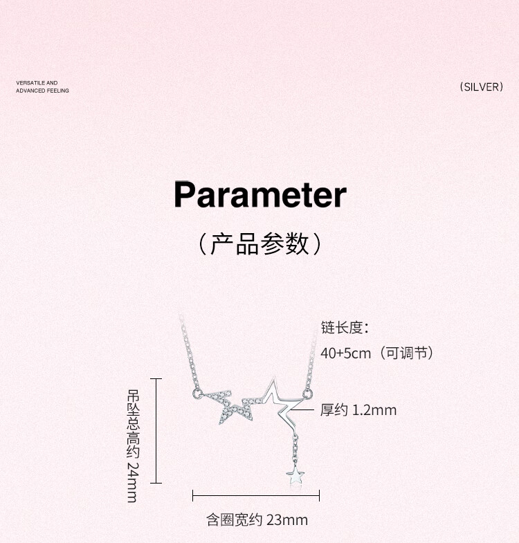 Saturday Fortune (ZLF) S925 silver necklace for women, romantic half star symbol, versatile niche pendant for birthday gift, pendant chain length 40+5cm
