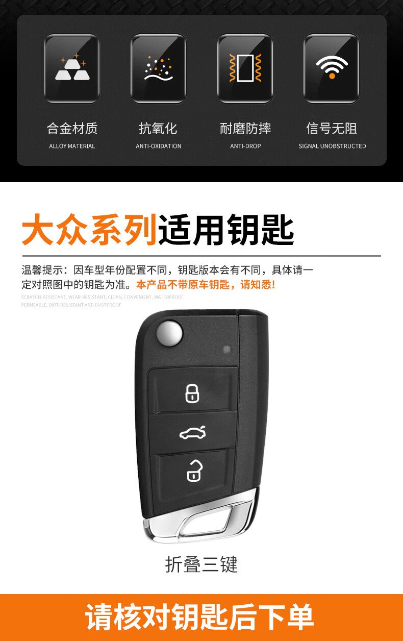 LONGSNOL Volkswagen key cover 23-24 models Lavida special 17-23 models Tiguan L23 Sagitar 24 Tanyue shell metal buckle B type gun orange single shell