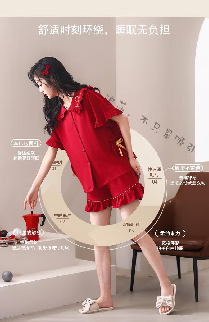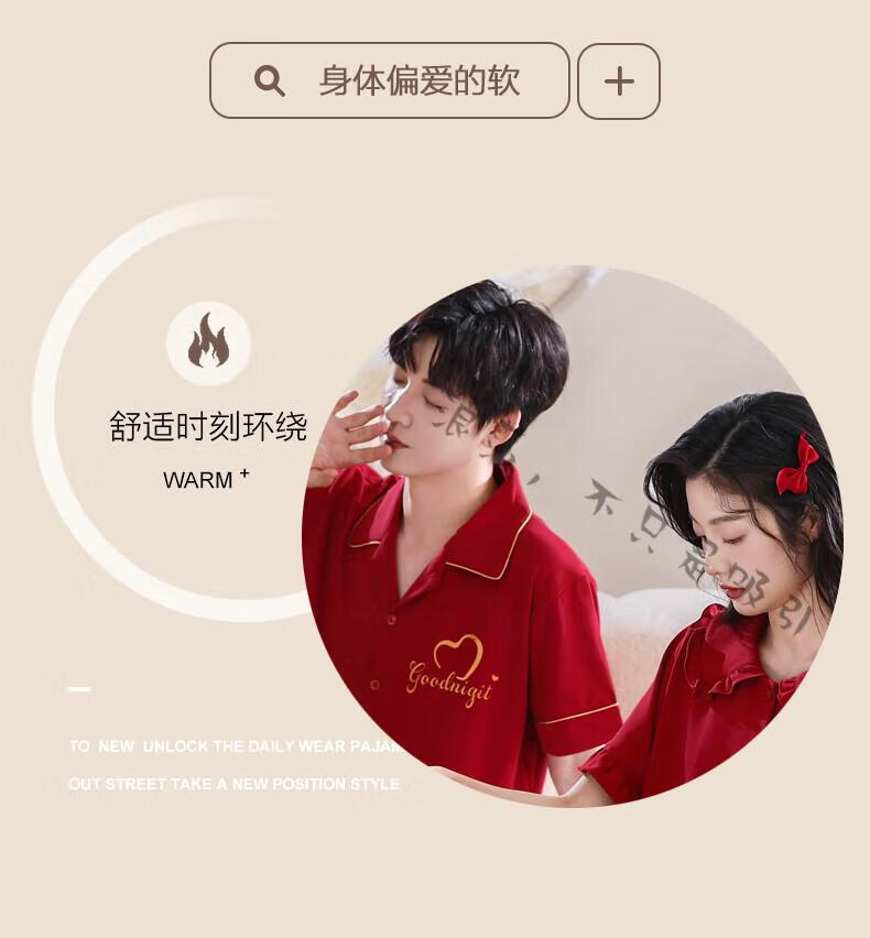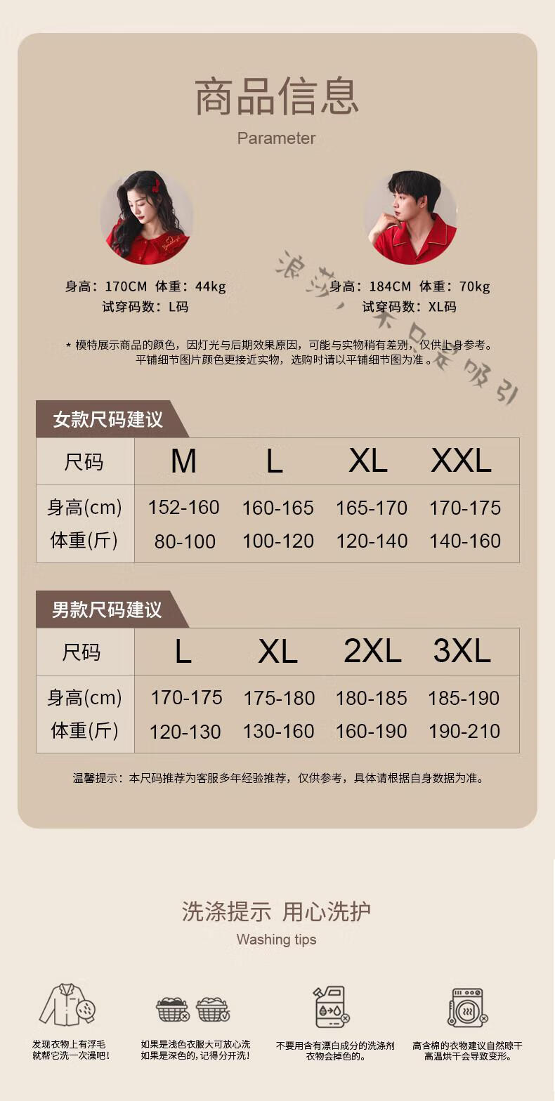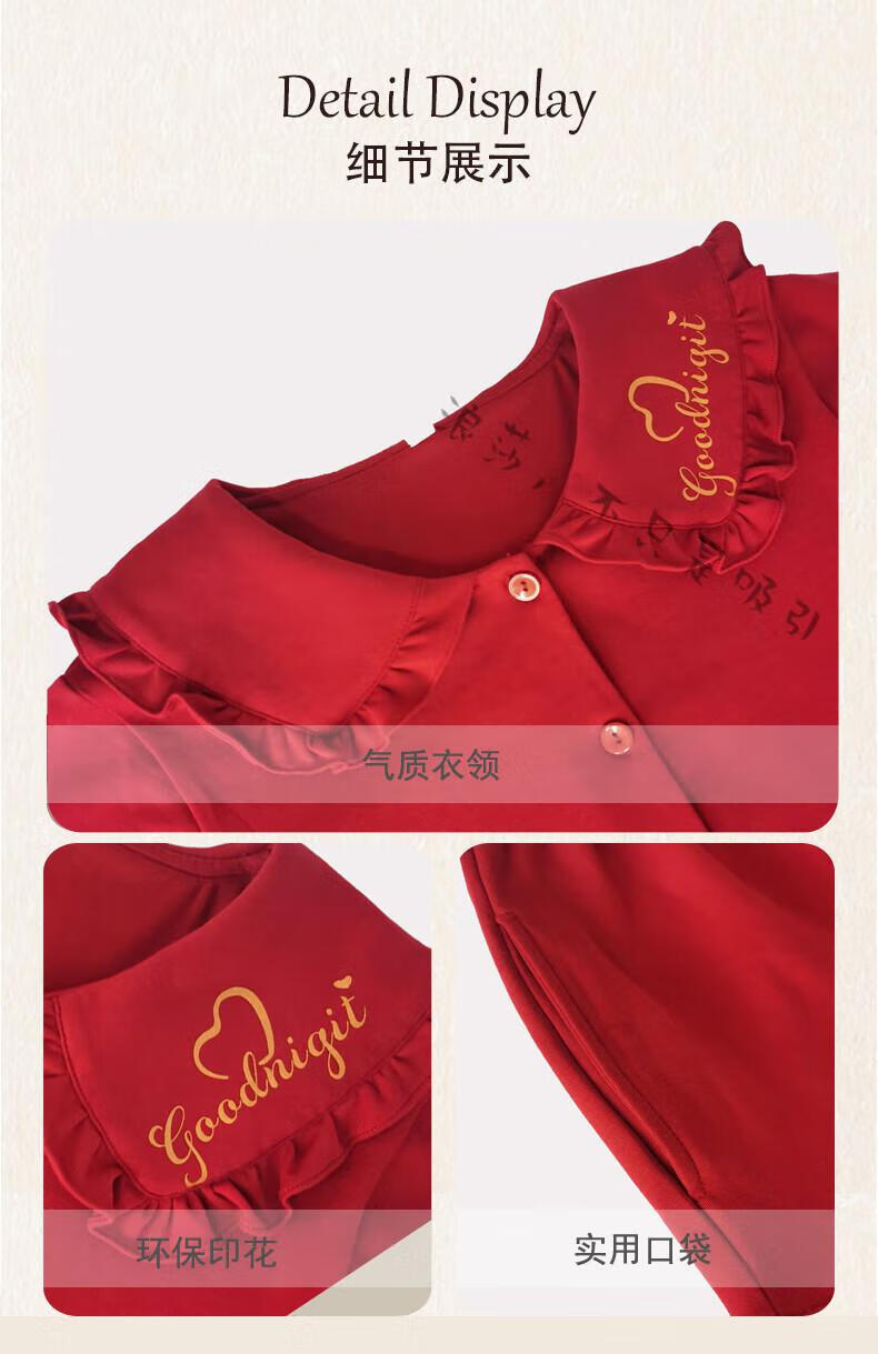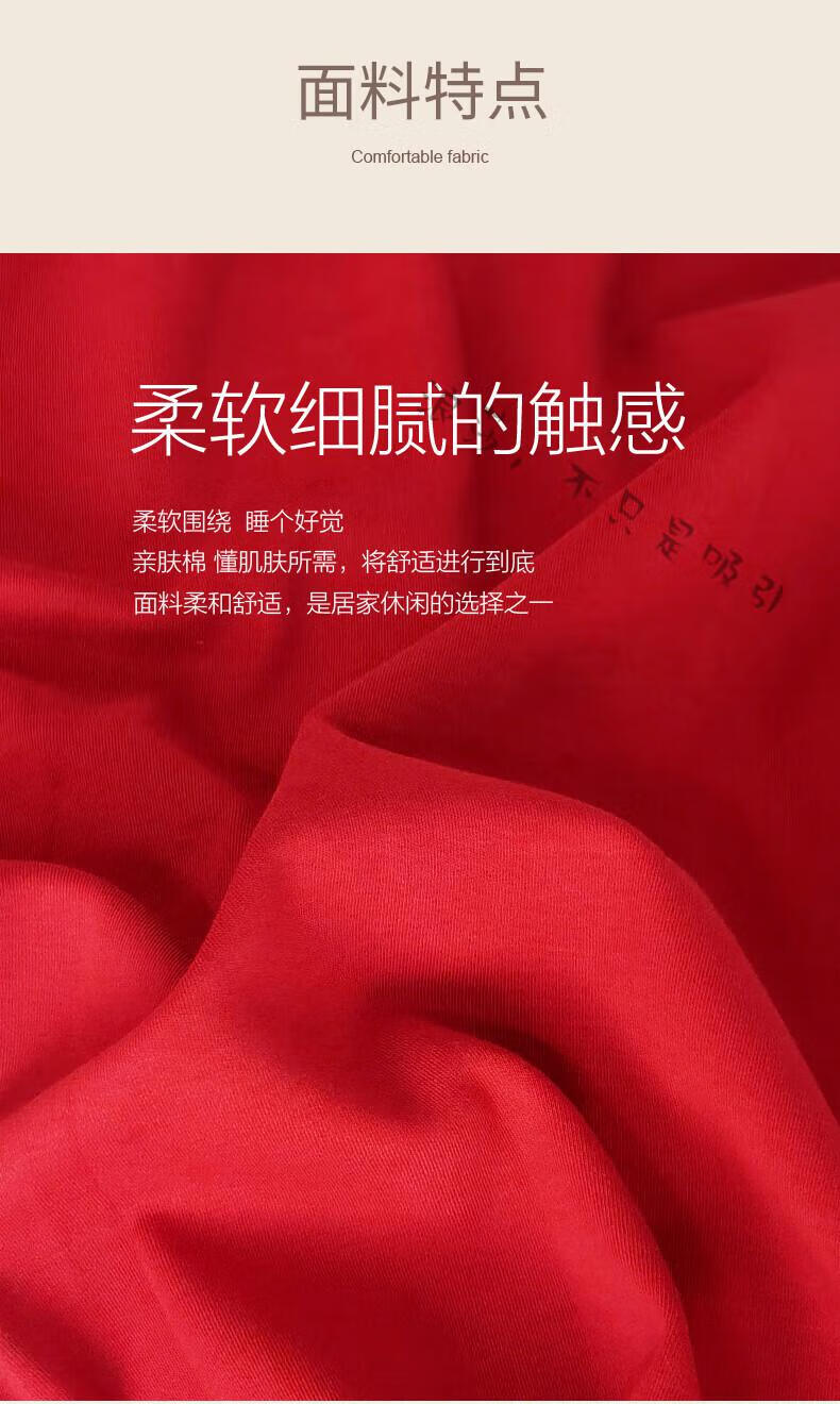 LangSha wedding couple pajamas summer pure cotton with chest pads for one man and one woman red wedding high-end gift box home wear set 5812 couple (with chest pads) female XL + male L