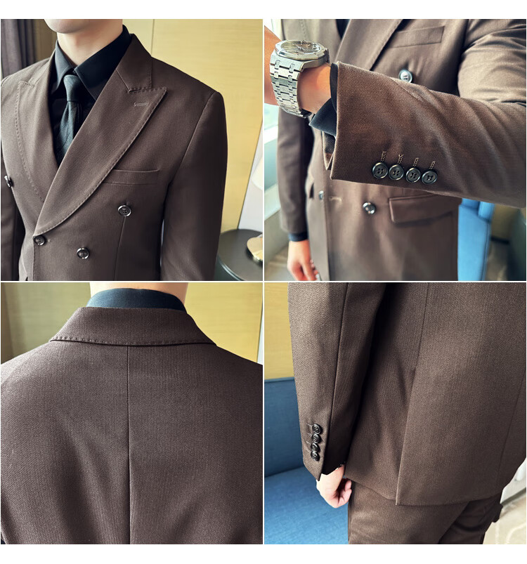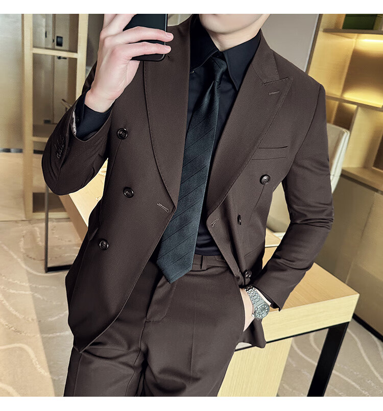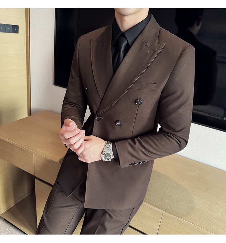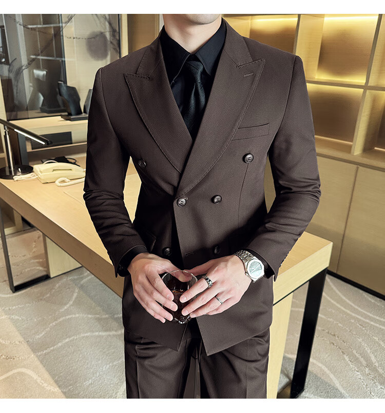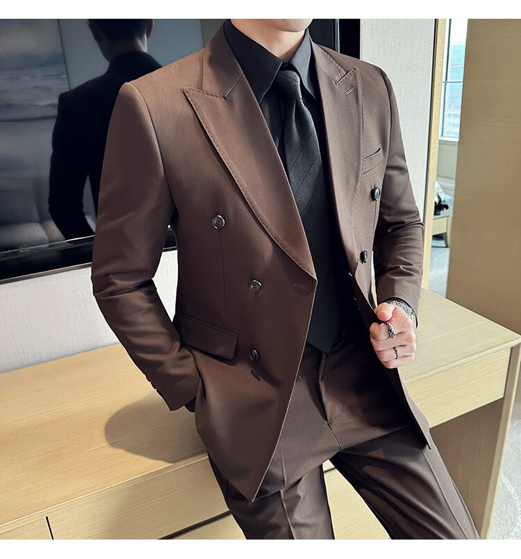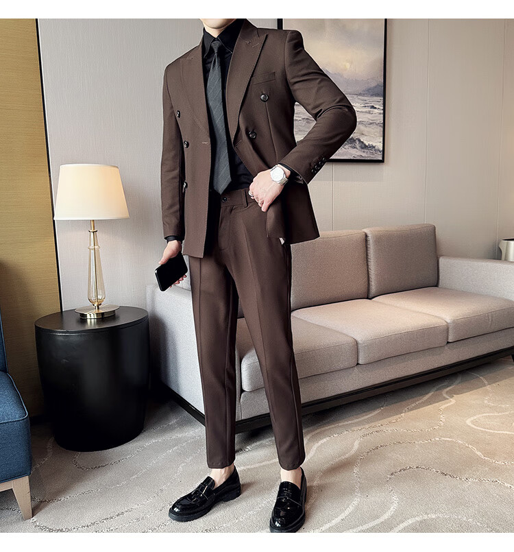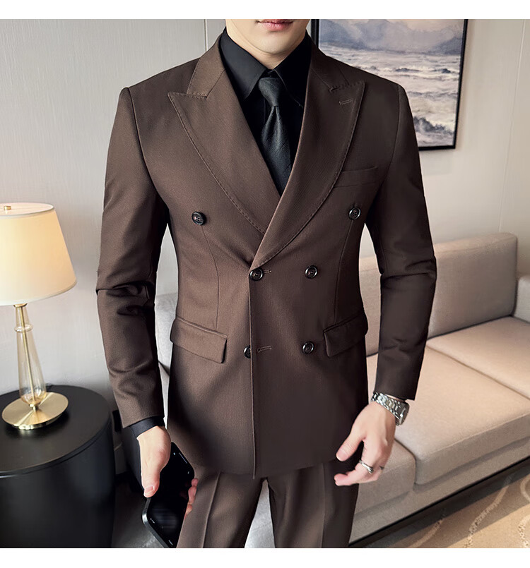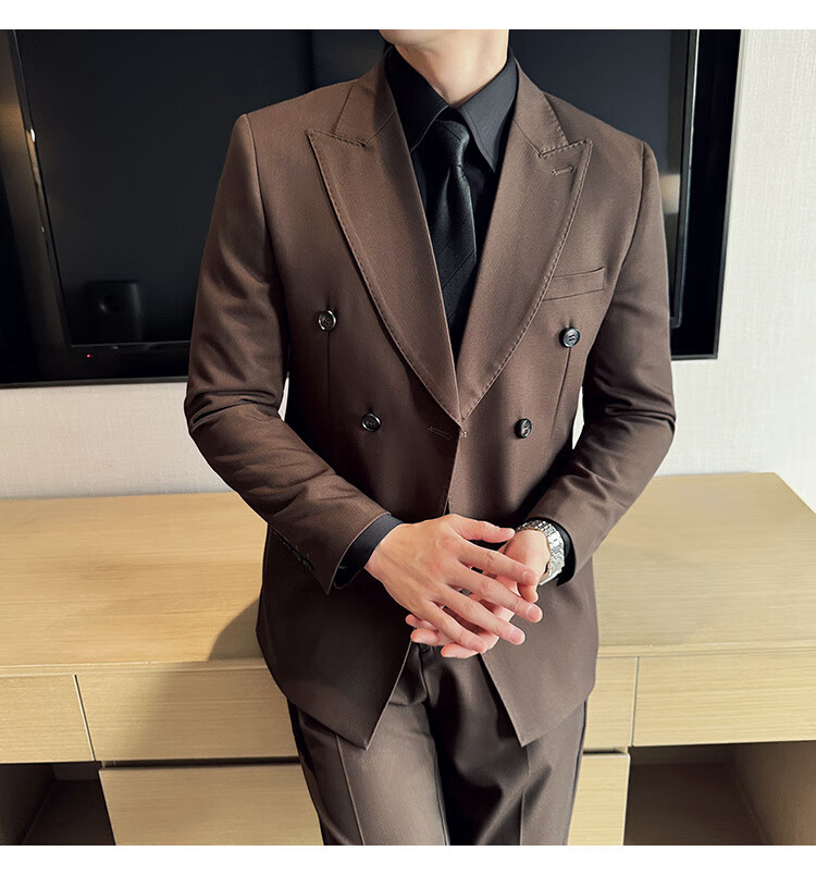 Jason's Double Breasted Suit Men's Suit High-end Banquet Business Professional Formal Wear British Style Handsome Slim Suit Jacket Brown (Single Suit) M (100-120Jin Jin is equal to 0.5kg)