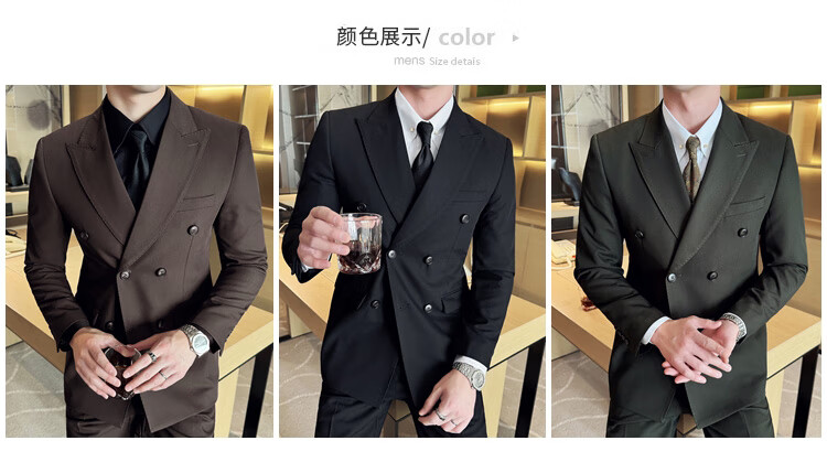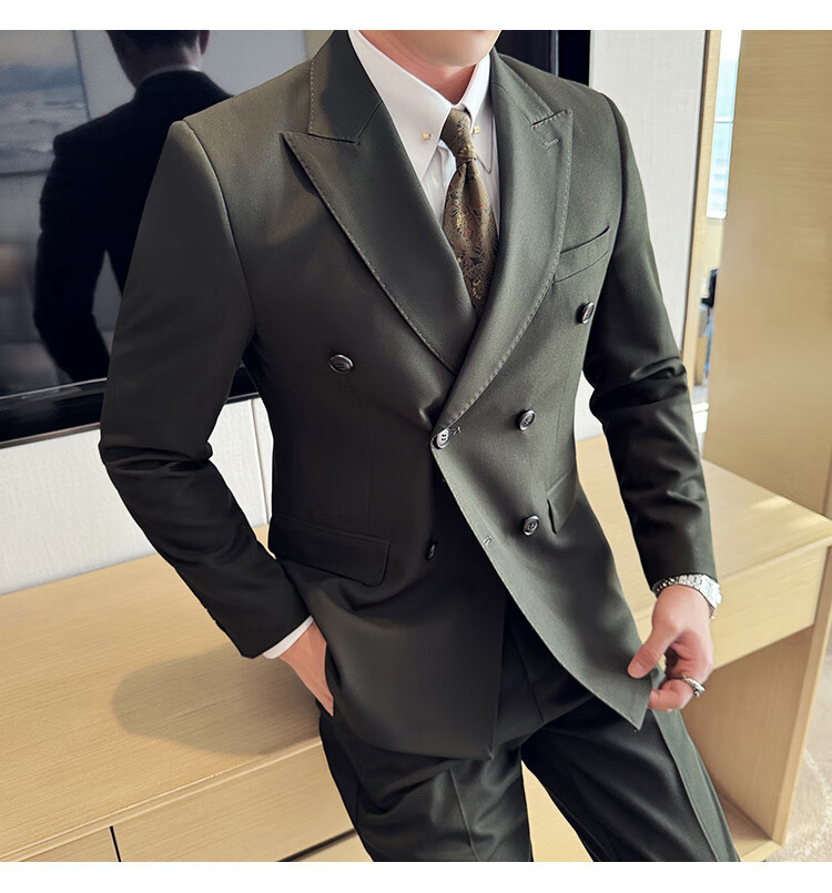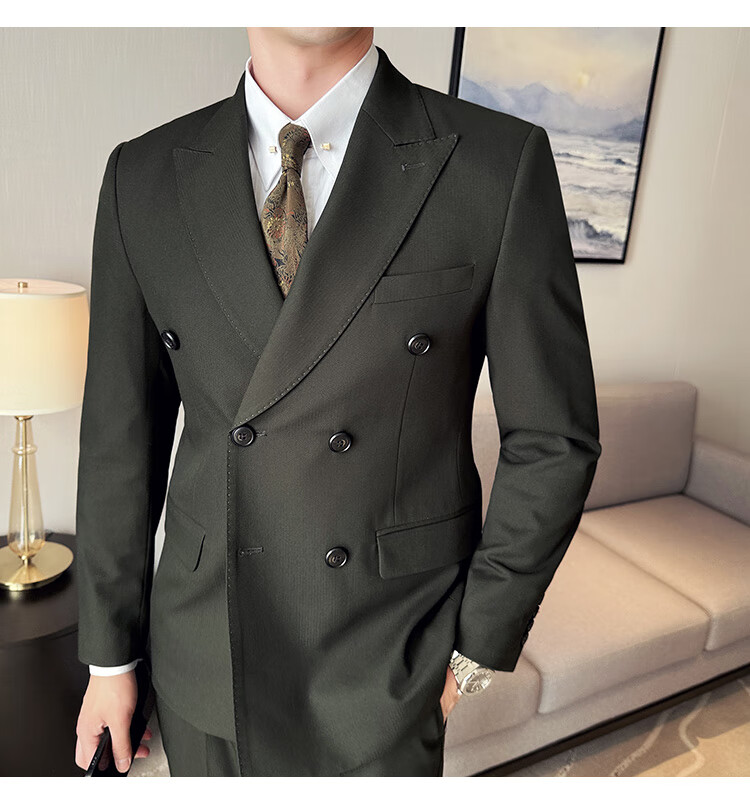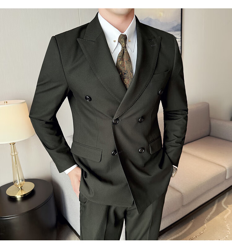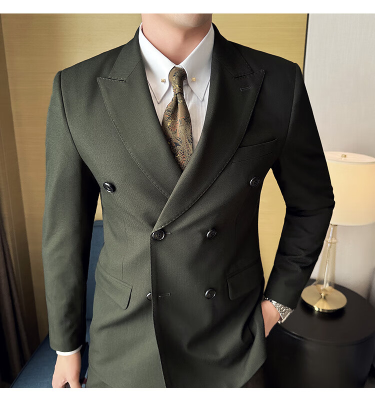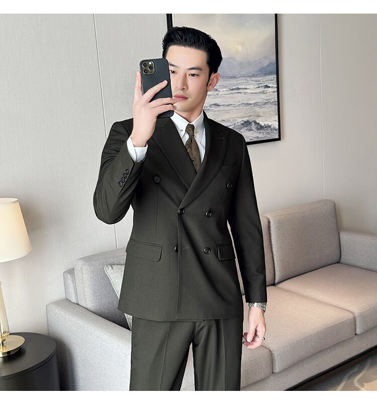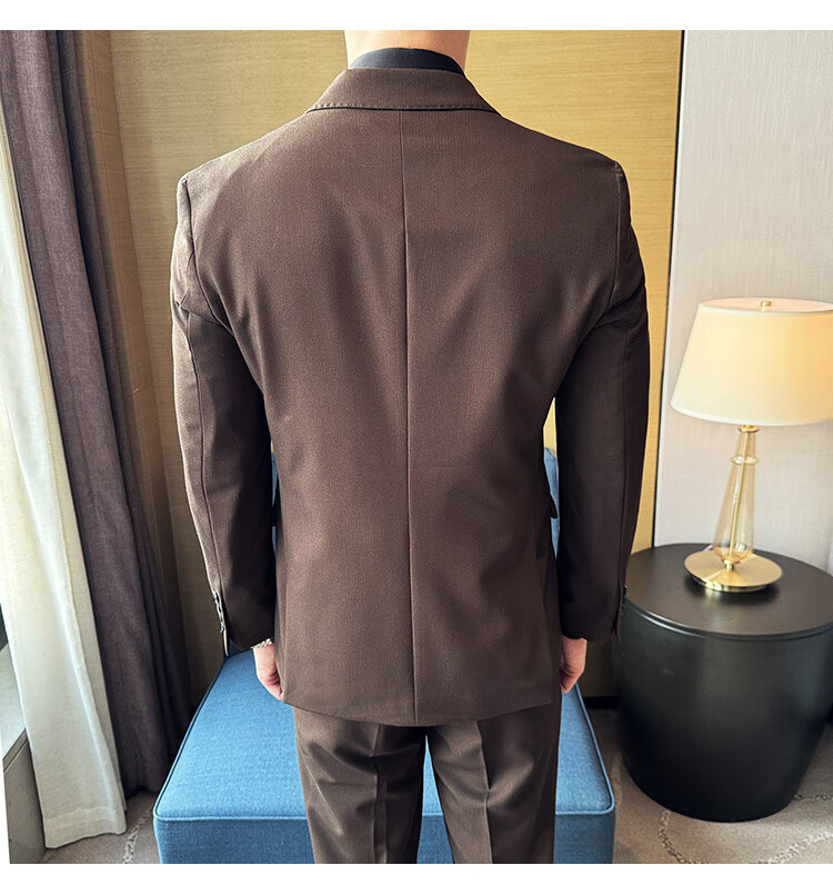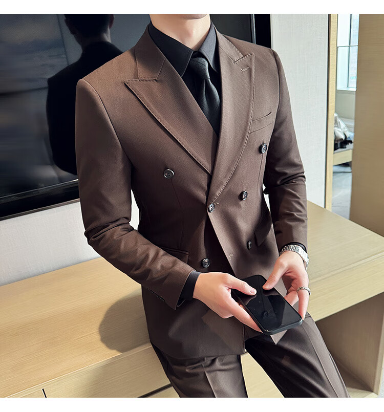 Jason's Double Breasted Suit Men's Suit High-end Banquet Business Professional Formal Wear British Style Handsome Slim Suit Jacket Brown (Single Suit) M (100-120Jin Jin is equal to 0.5kg)