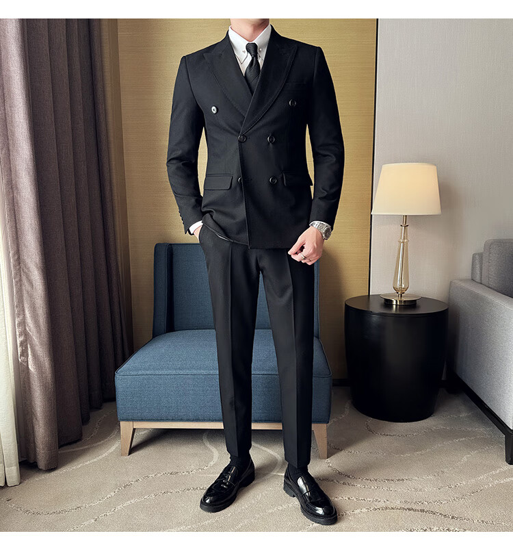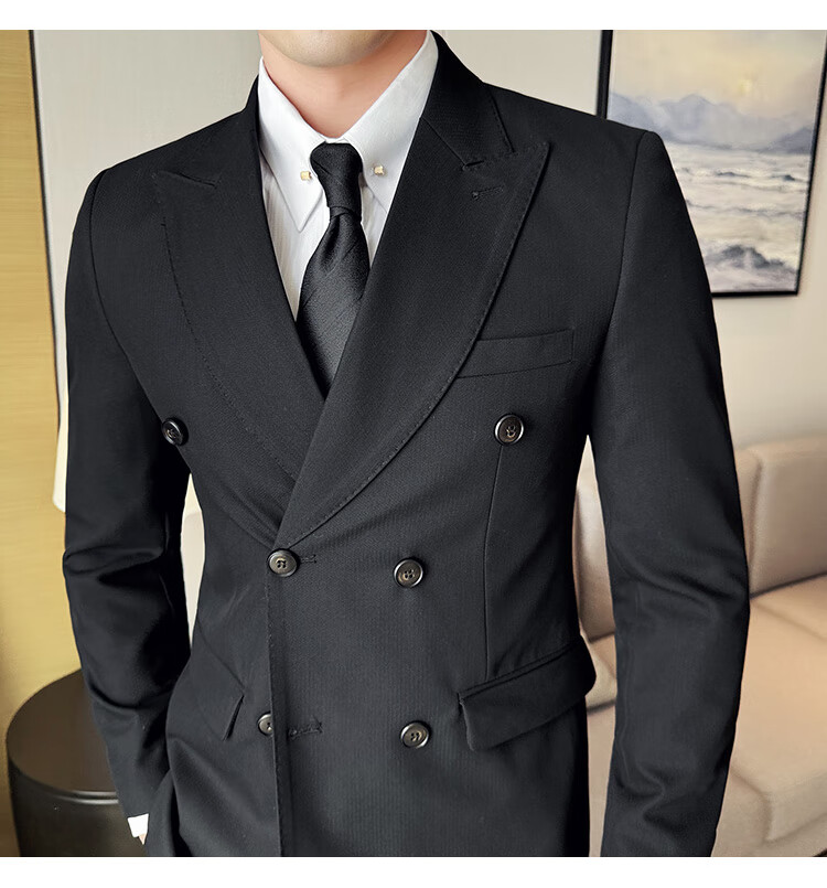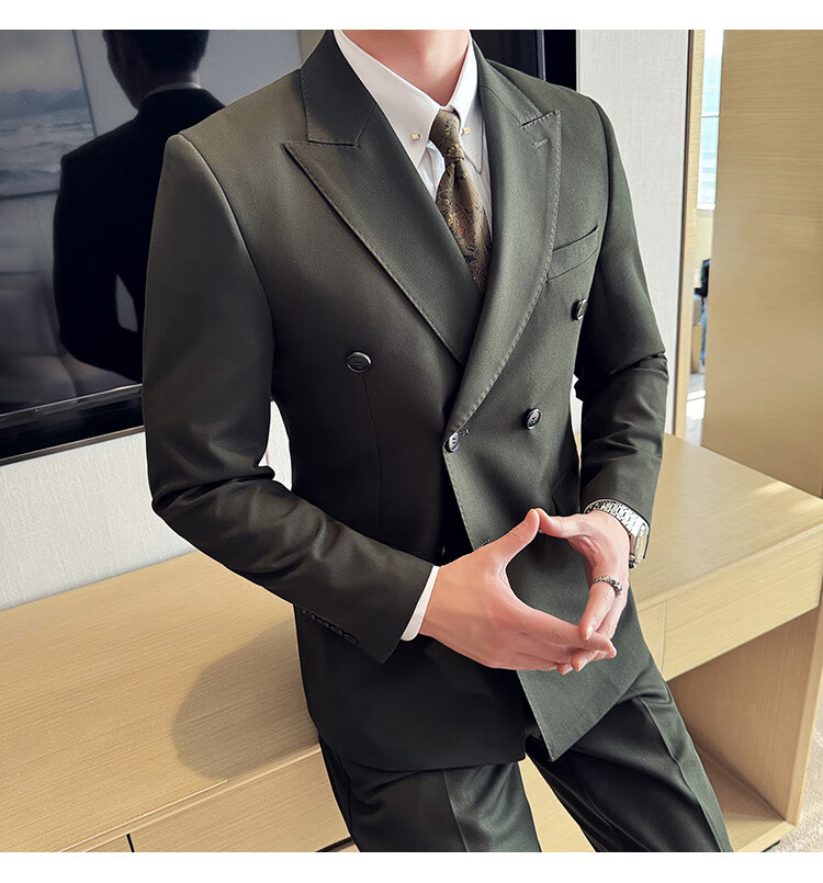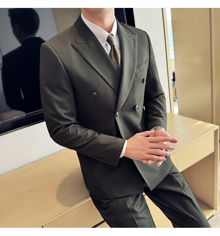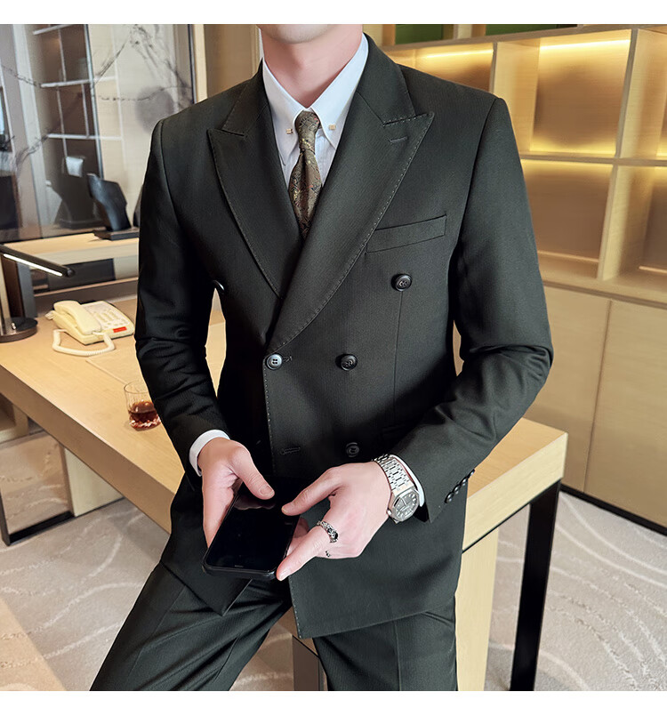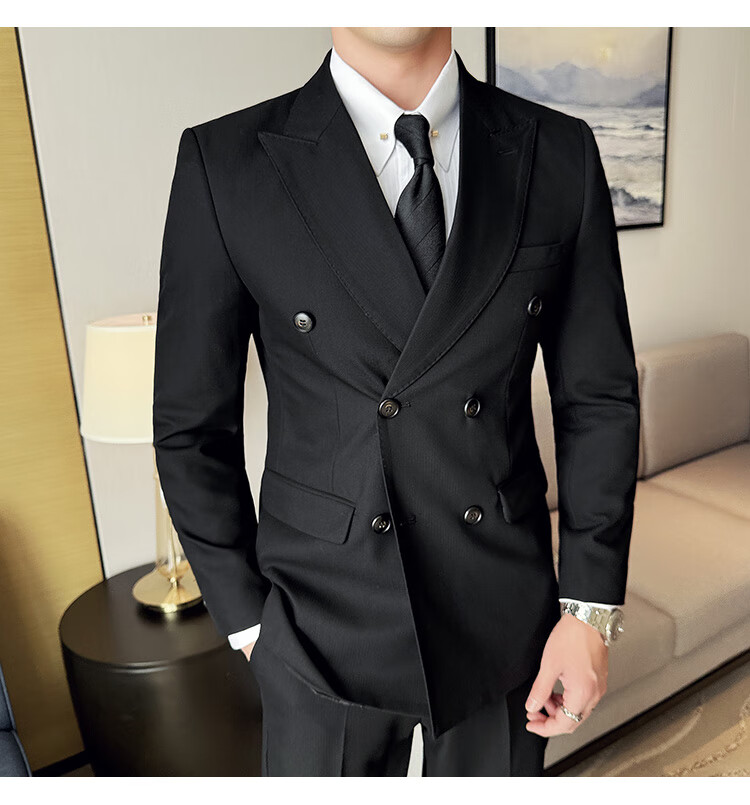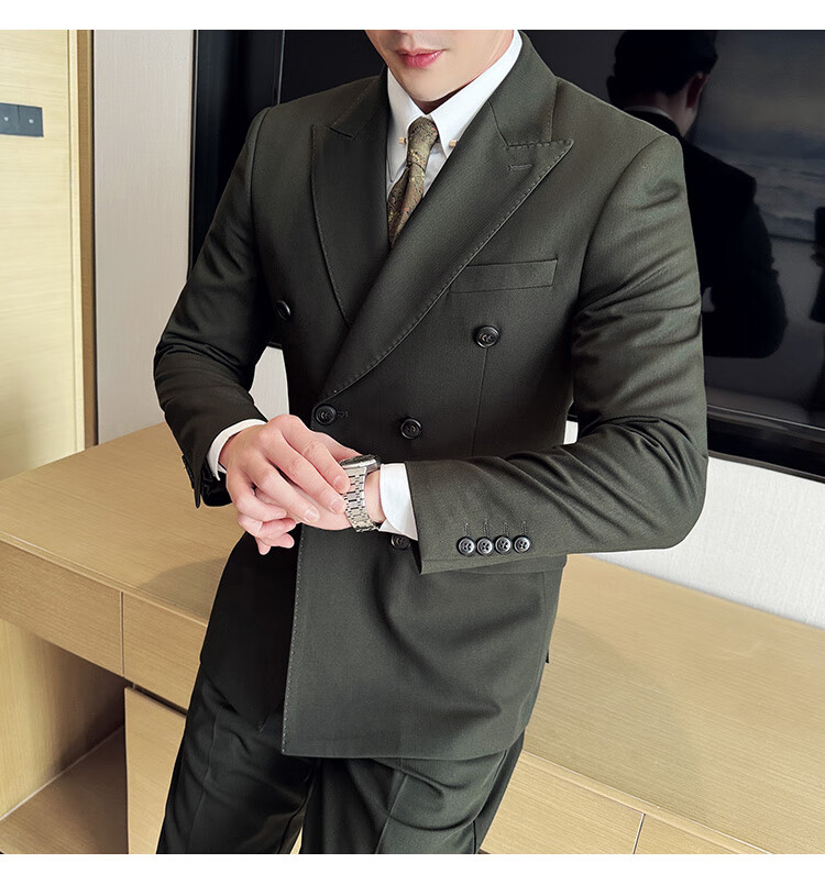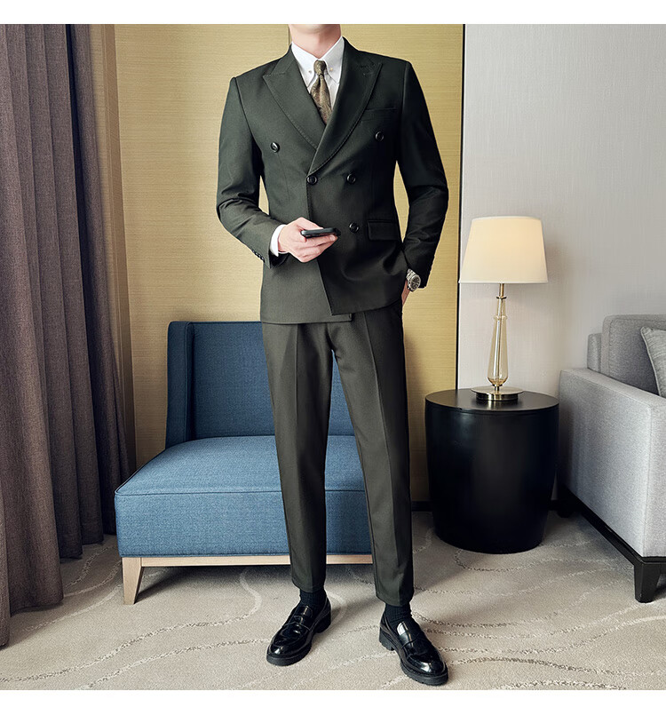 Jason's Double Breasted Suit Men's Suit High-end Banquet Business Professional Formal Wear British Style Handsome Slim Suit Jacket Brown (Single Suit) M (100-120Jin Jin is equal to 0.5kg)