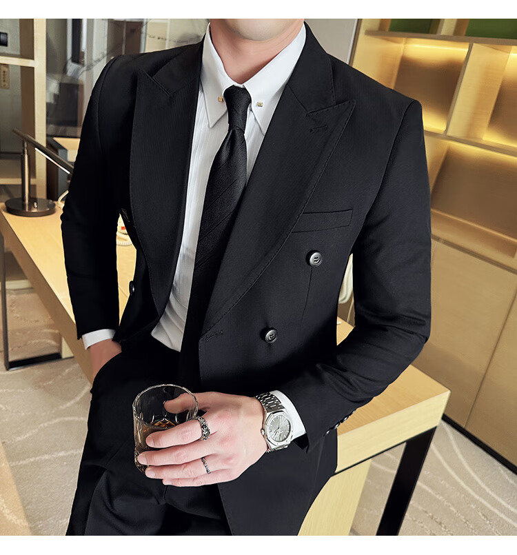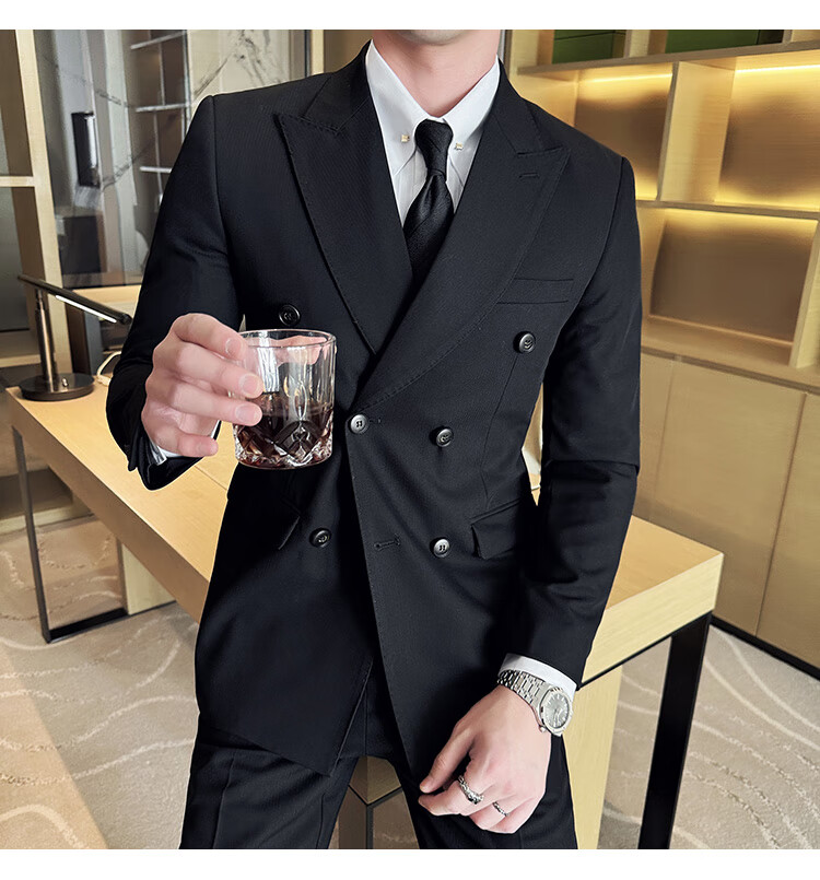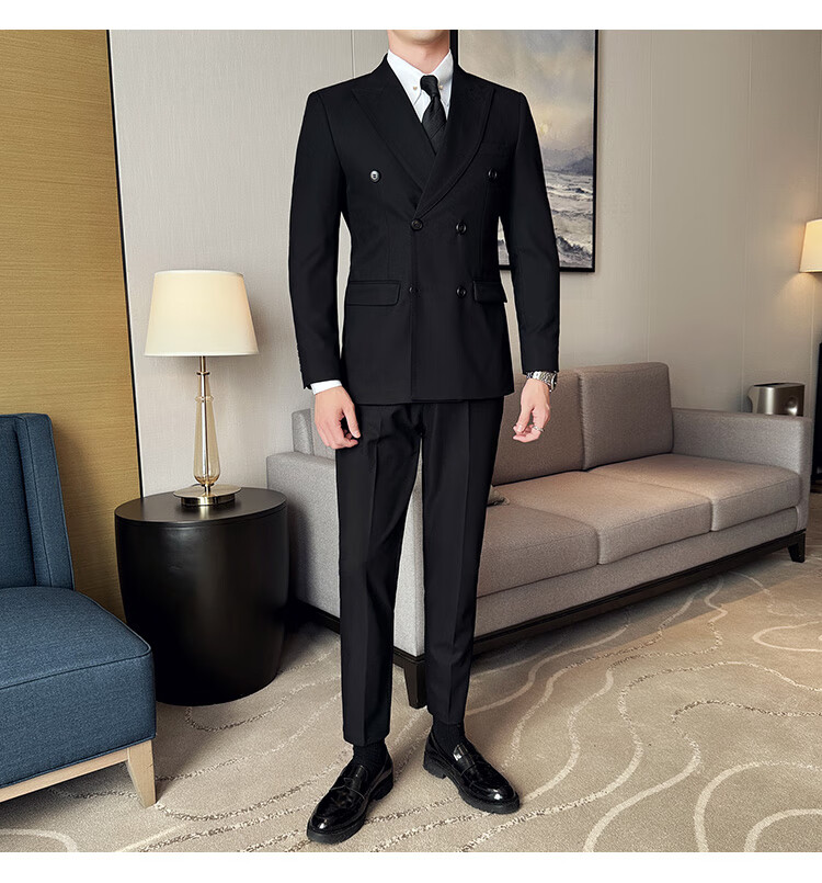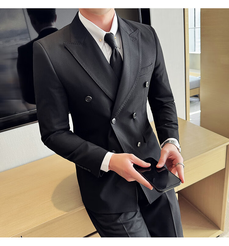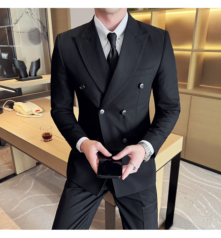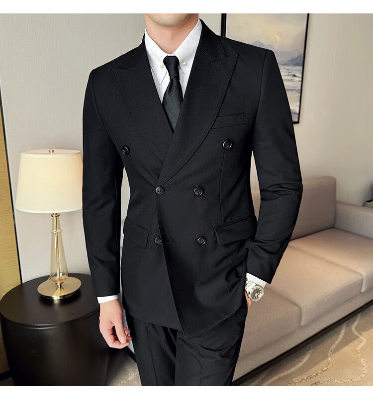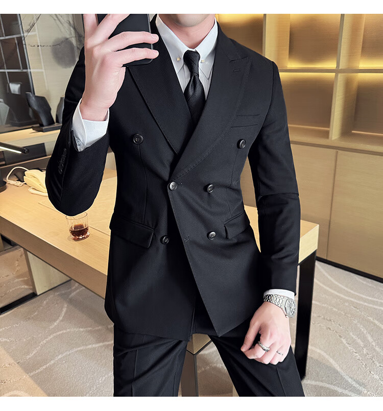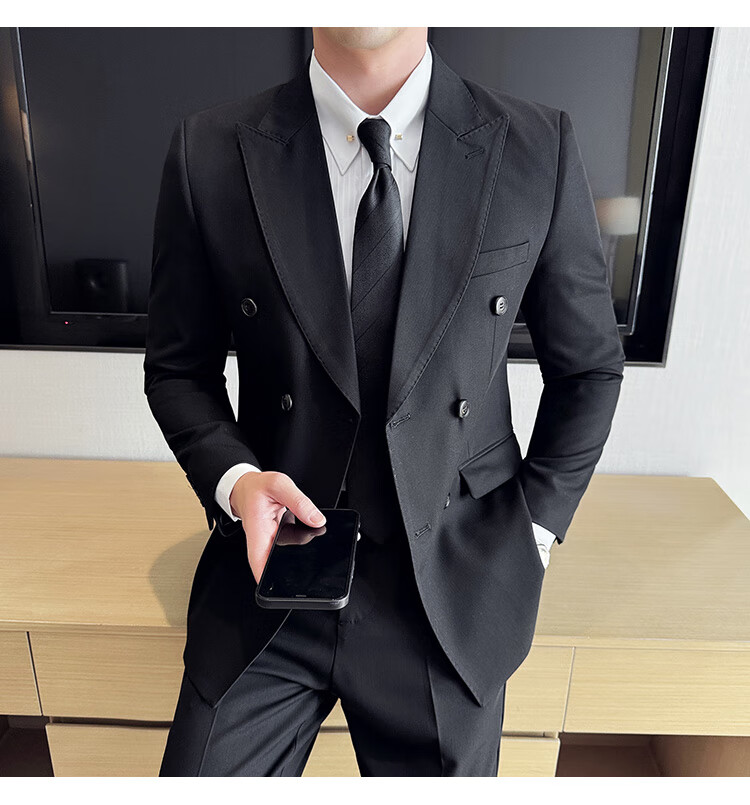 Jason's Double Breasted Suit Men's Suit High-end Banquet Business Professional Formal Wear British Style Handsome Slim Suit Jacket Brown (Single Suit) M (100-120Jin Jin is equal to 0.5kg)