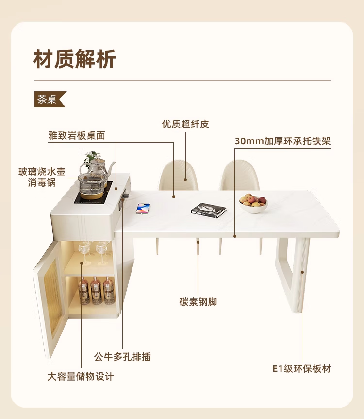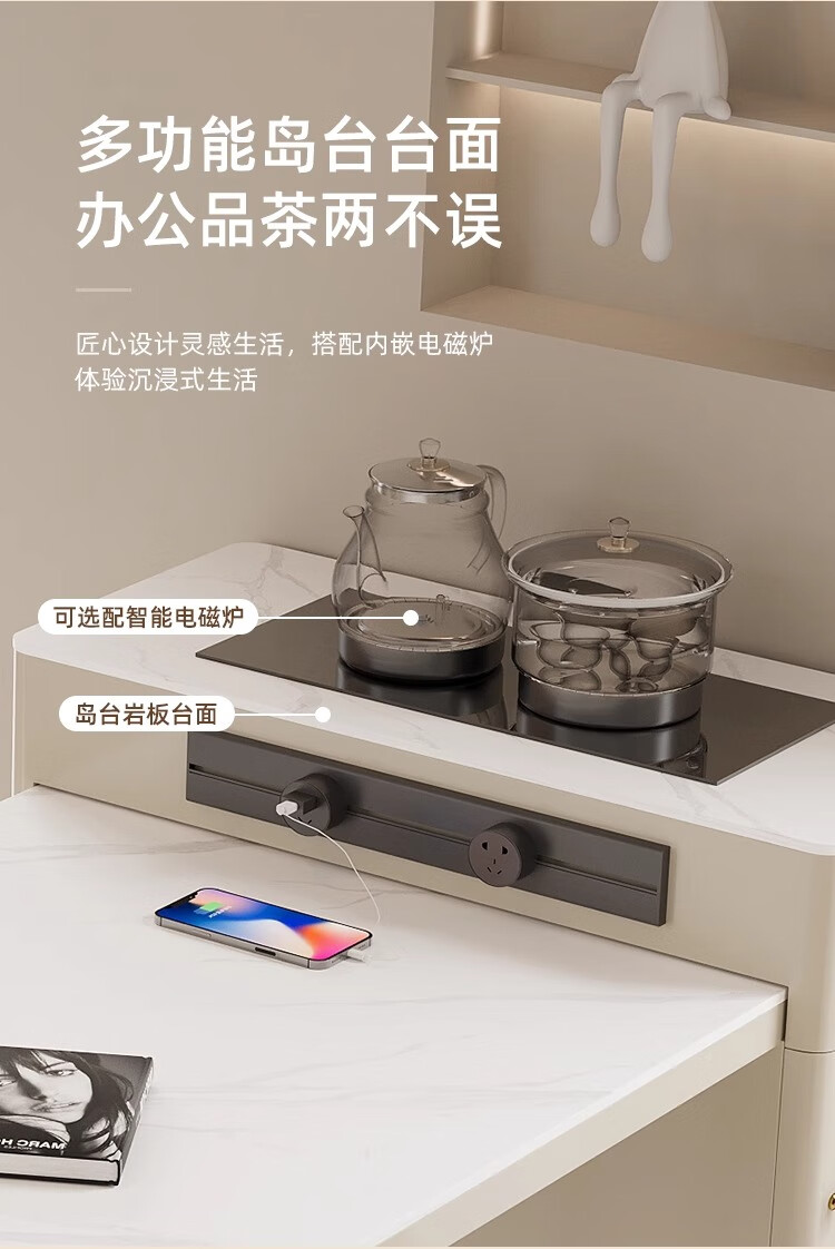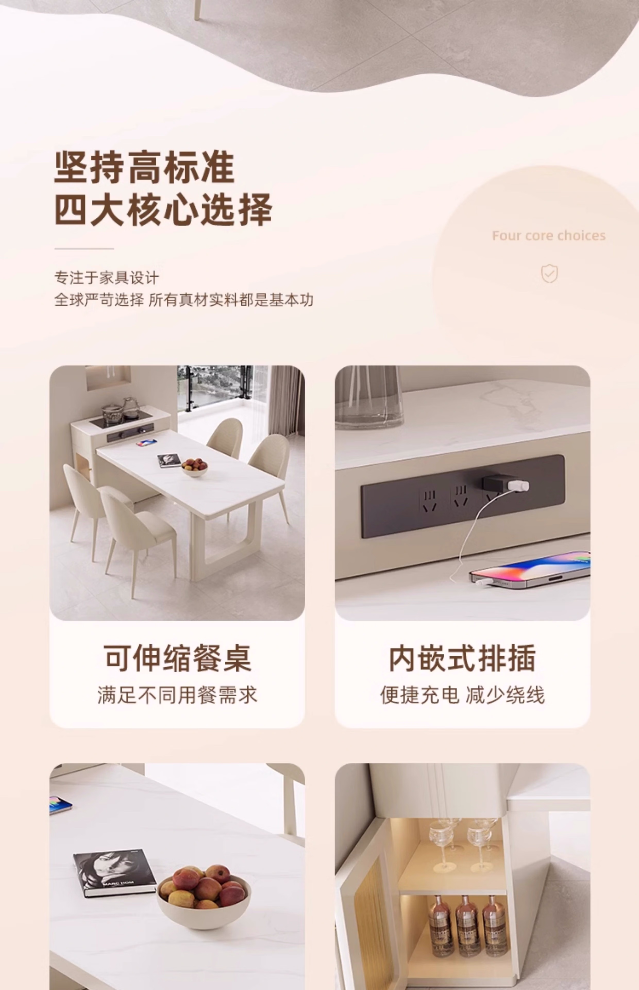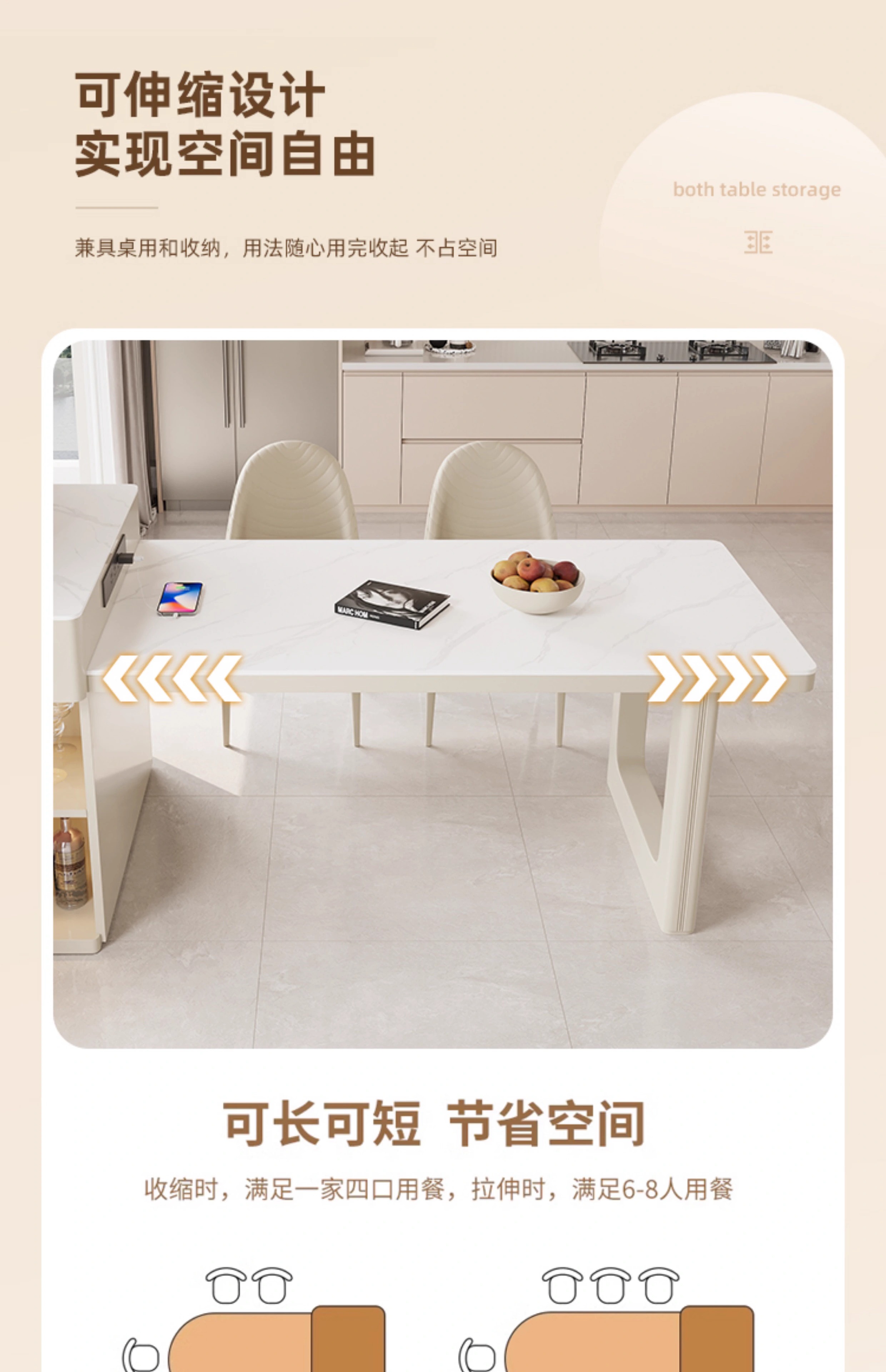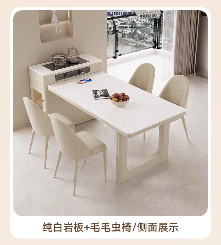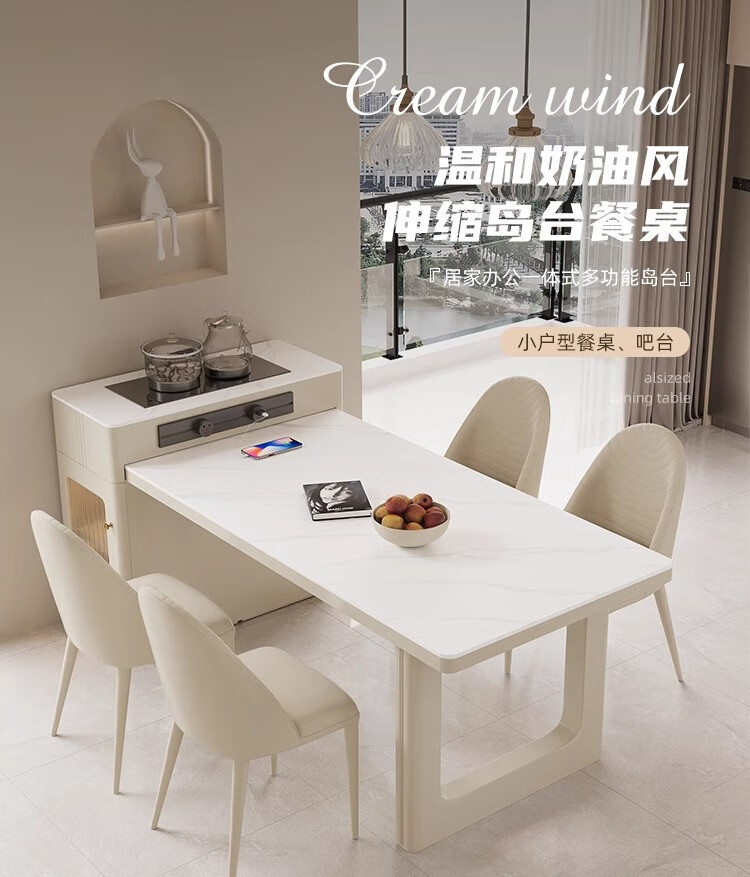 Xiyahao island dining table integrated retractable household dining table and chair combination modern simple small apartment inverted dining table flat style island dining table 140cm slide rail socket