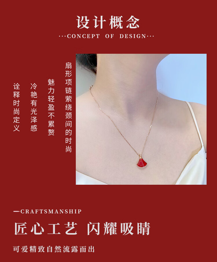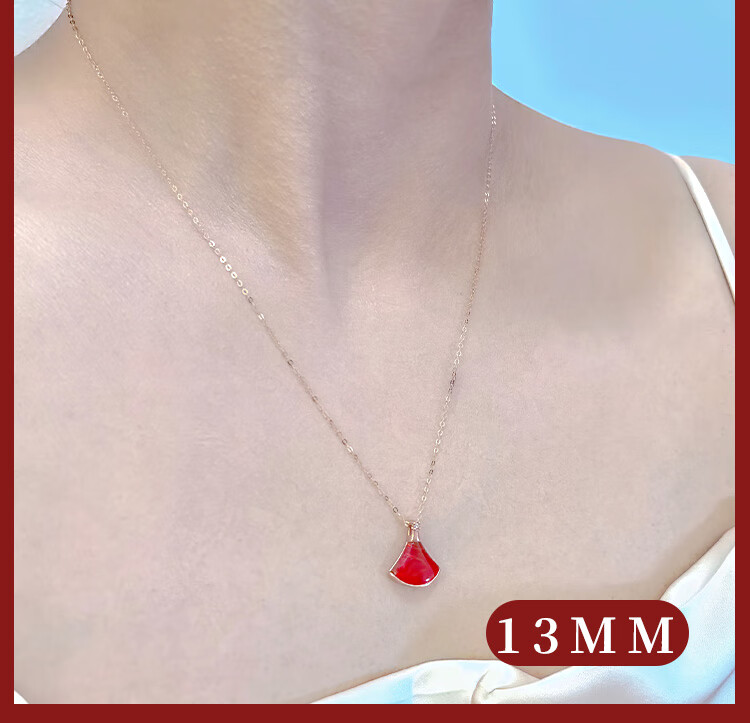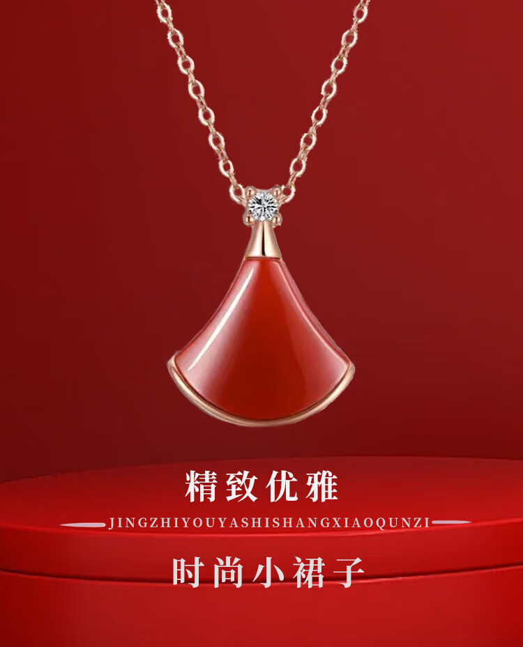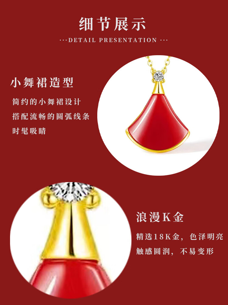 Lai Dai gold 18K gold mini skirt pendant au750 color gold rose gold gold clavicle diamond set chain Chinese Valentine's Day gift 18K gold gold color (single pendant) 16MM red agate