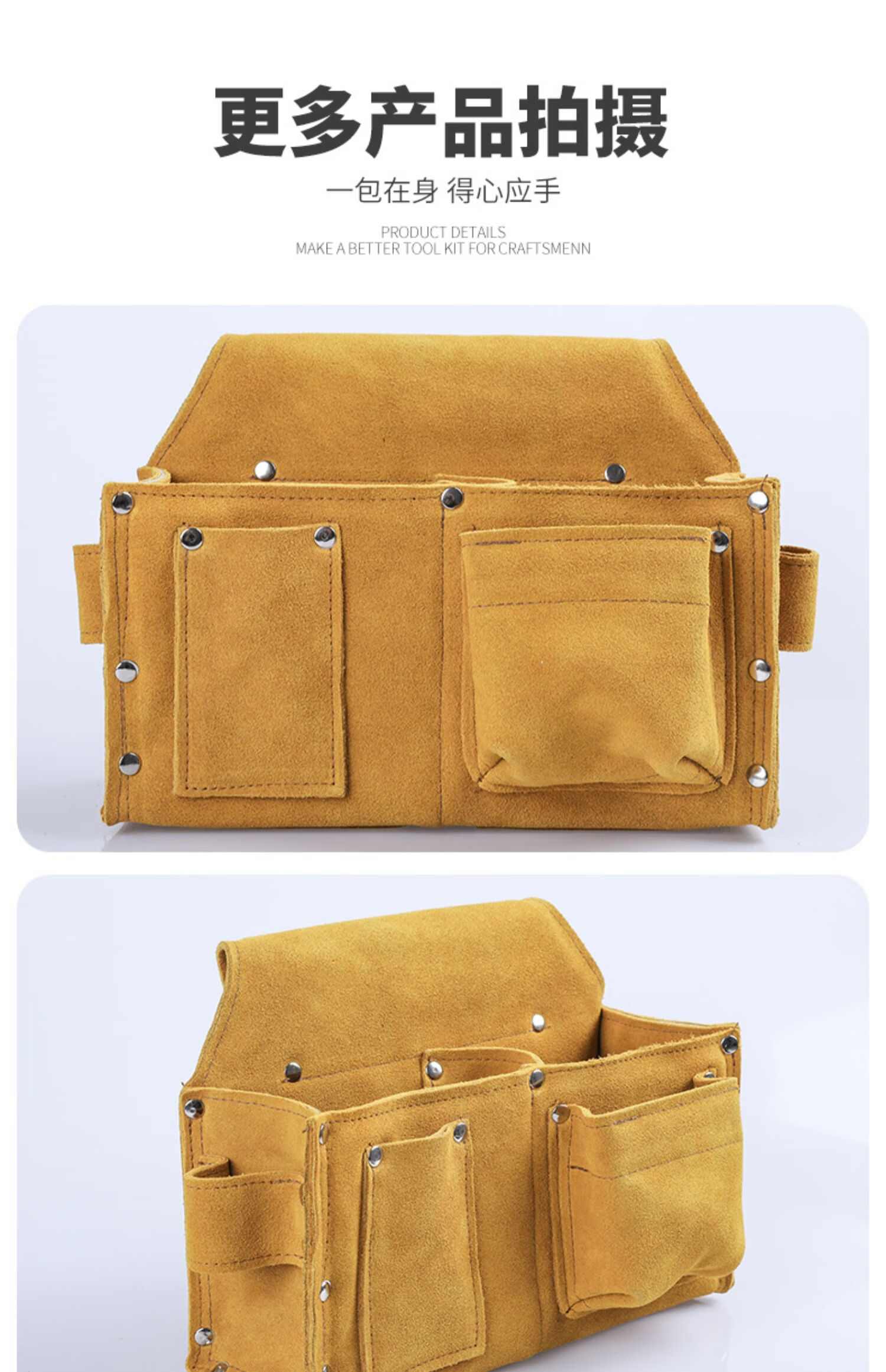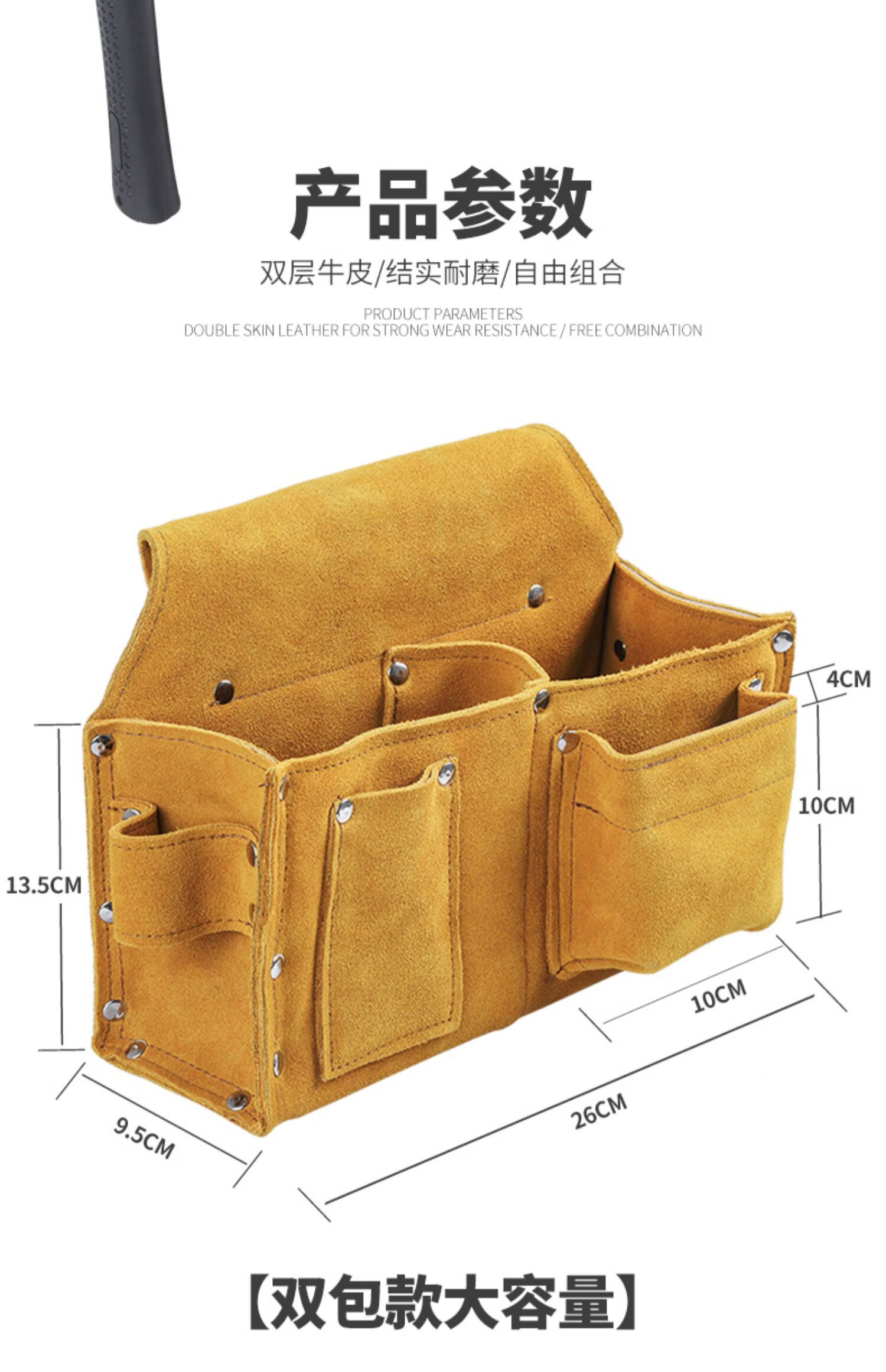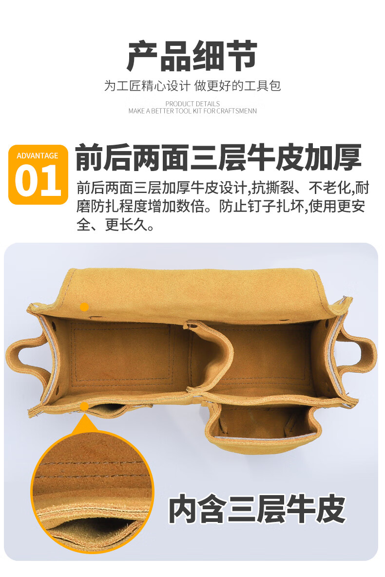 Honglong double-layer cowhide nail bag construction carpentry wear-resistant belt-type waist bag nail bag multi-functional waist pocket tool bag nail bag single pocket large size