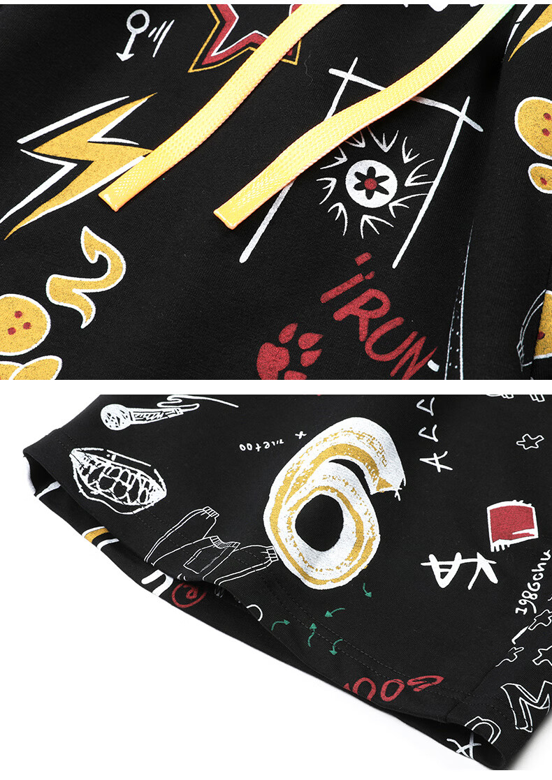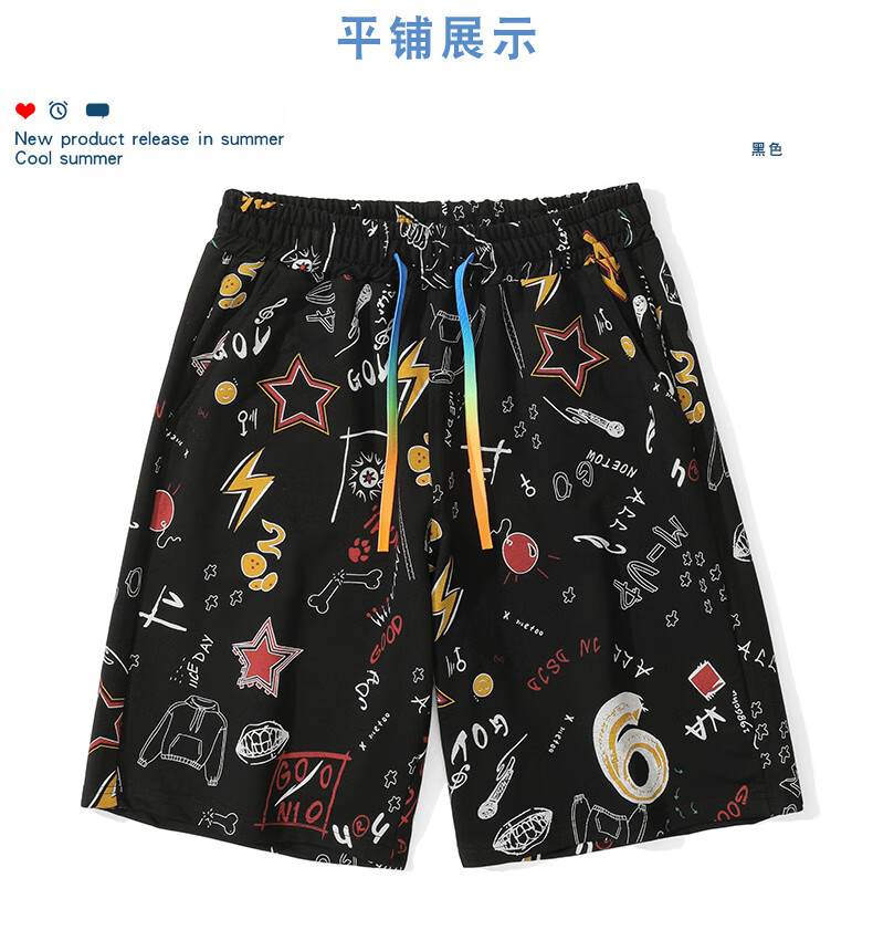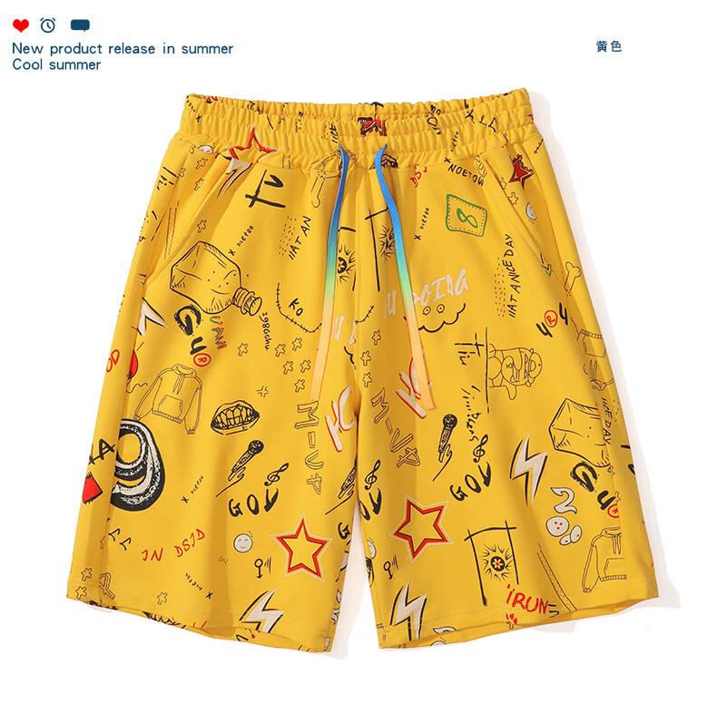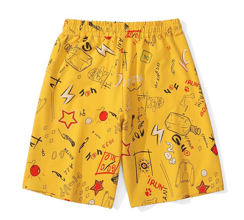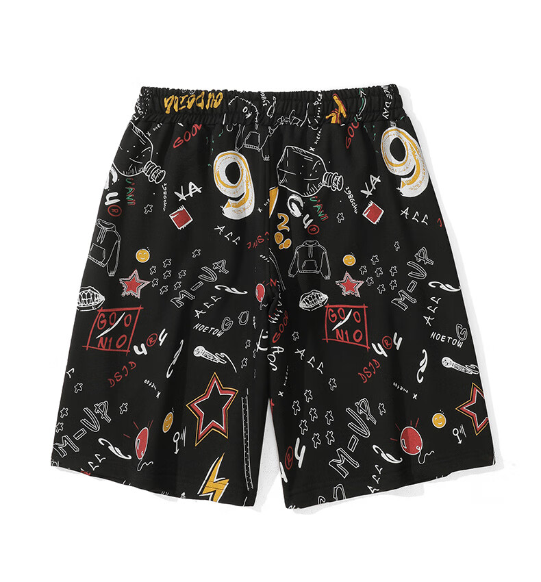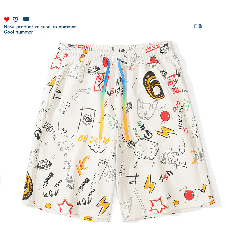 NASALIKE official full-print graffiti shorts men's summer casual shorts beach large pants men's sports breathable cotton pants white XL (recommended 129-145Jin Jin equals 0.5 kg)