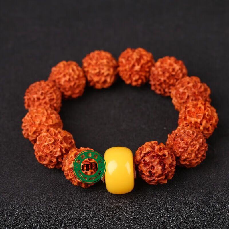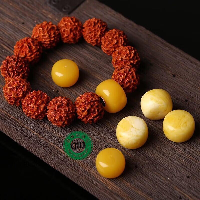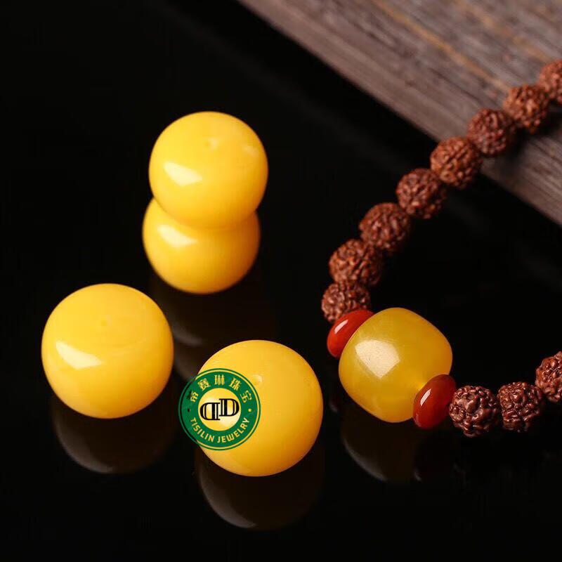 Fat Donglai same style beeswax loose beads single bead amber pier button button wheel bead abacus bead round bead DIY cultural toy with chicken oil yellow 12mm