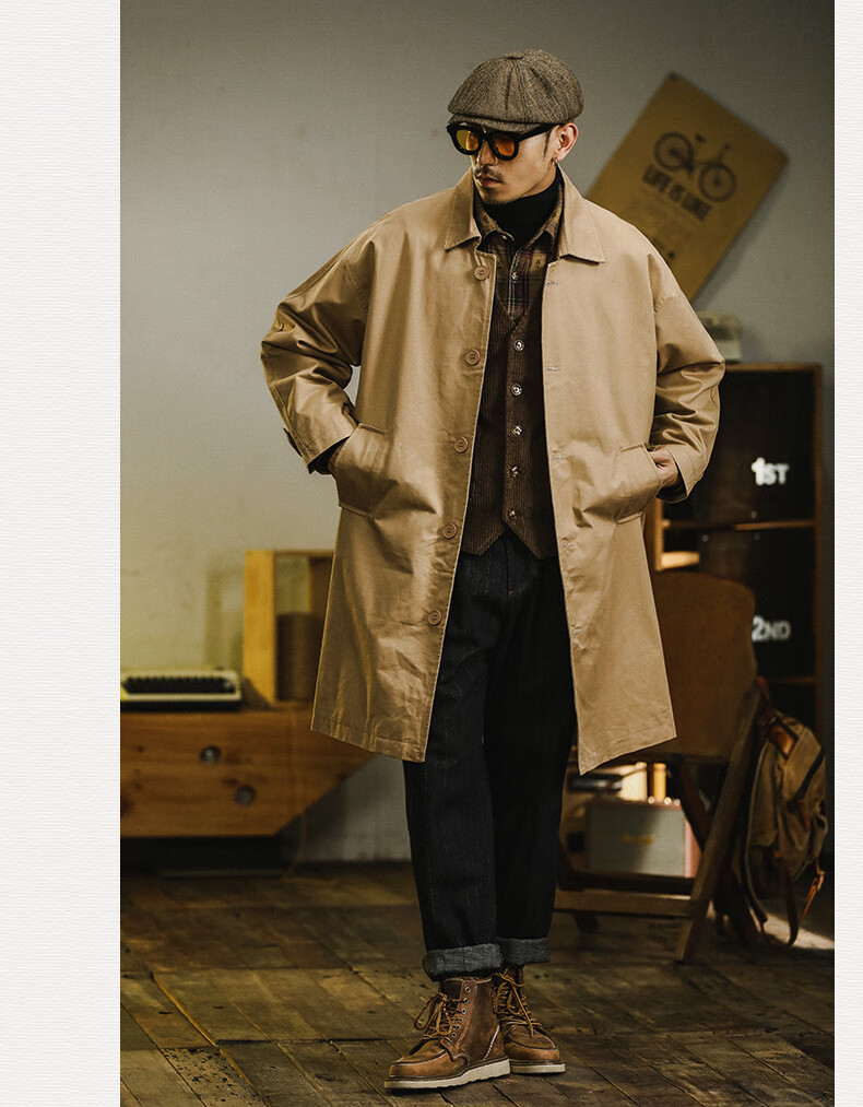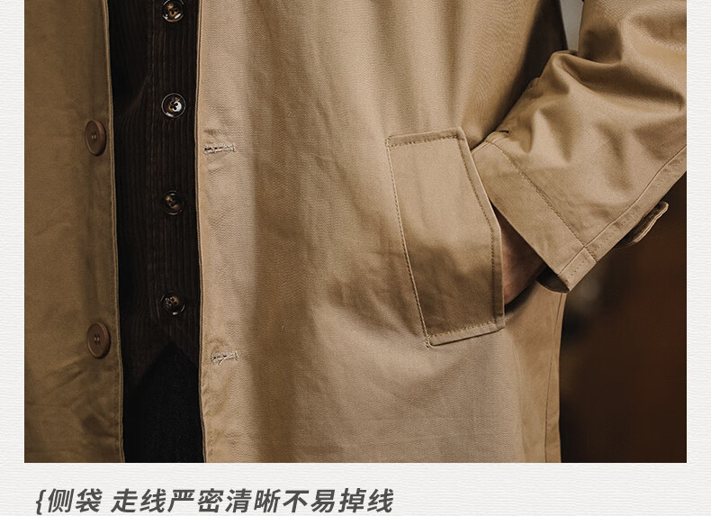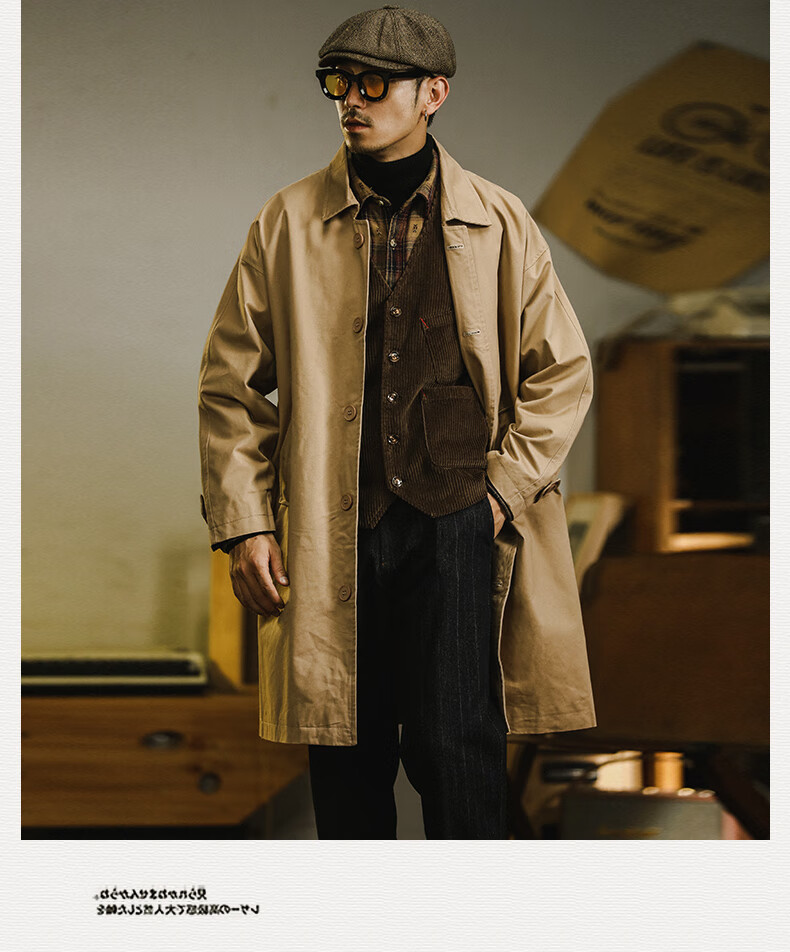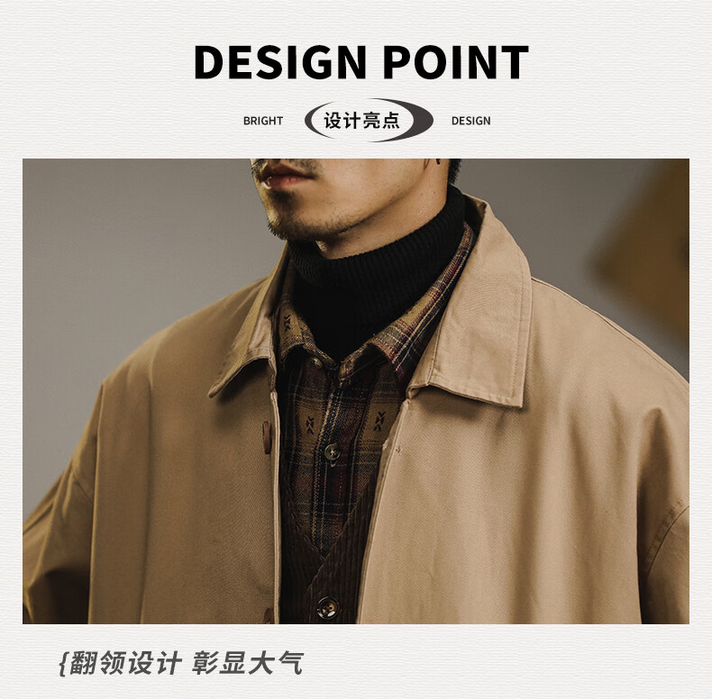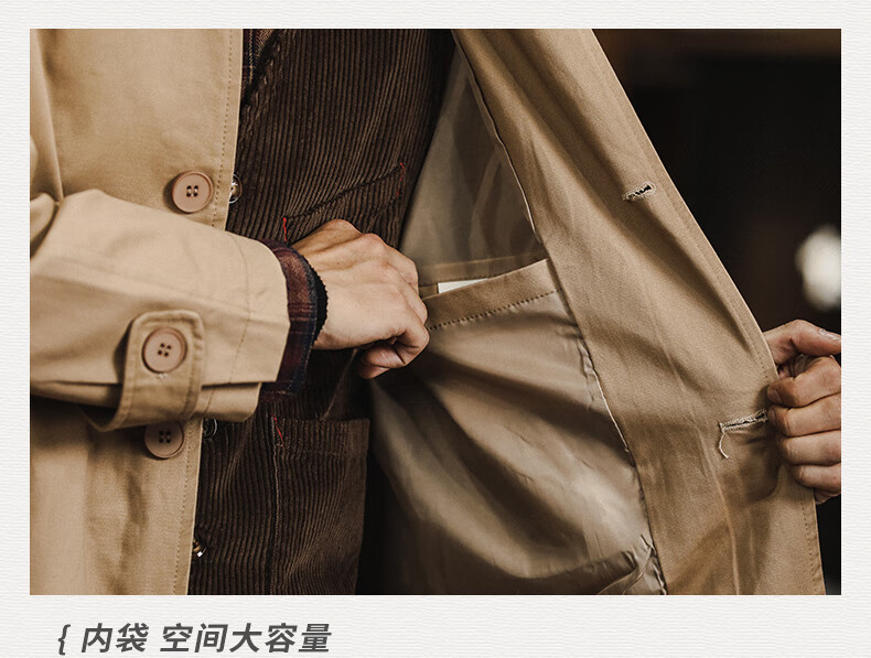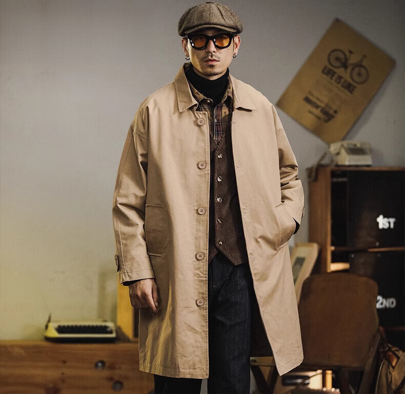 Trendy and shared American retro windbreaker jacket men's medium-length 2024 new British yuppie men's loose casual cotton coat Khaki XL recommended 150-170 Jin Jin is equal to 0.5 kg