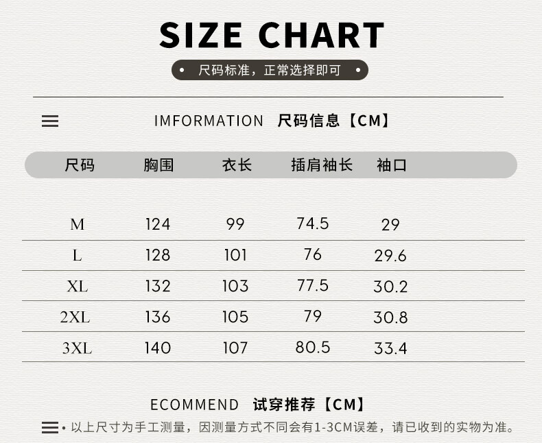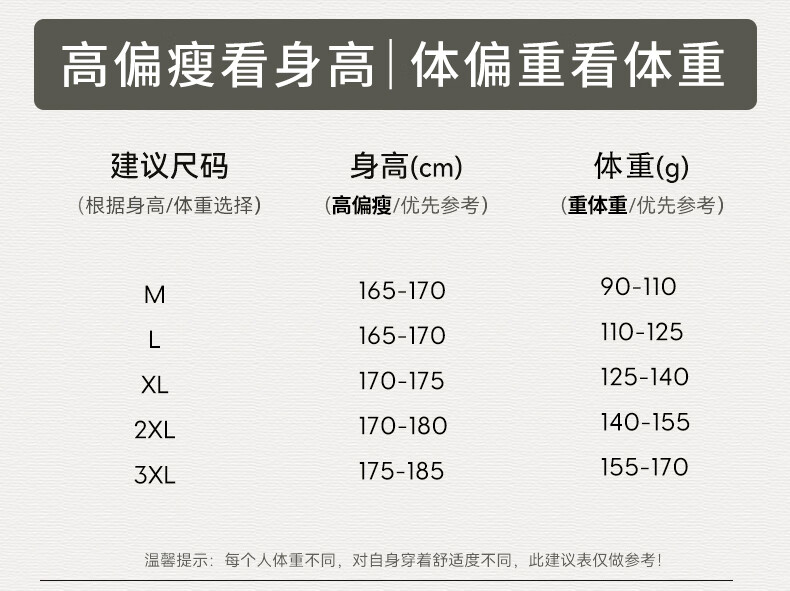 China (cm) 160-165/84-86 165-170 / 88-90 167-172 / 92-96 168-173 / 98-102 170-176 / 106-110