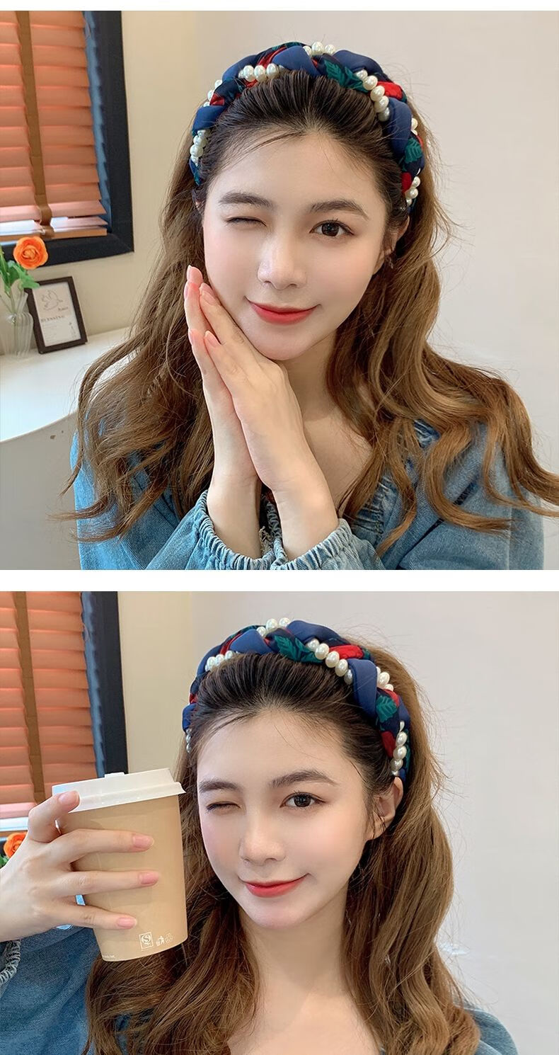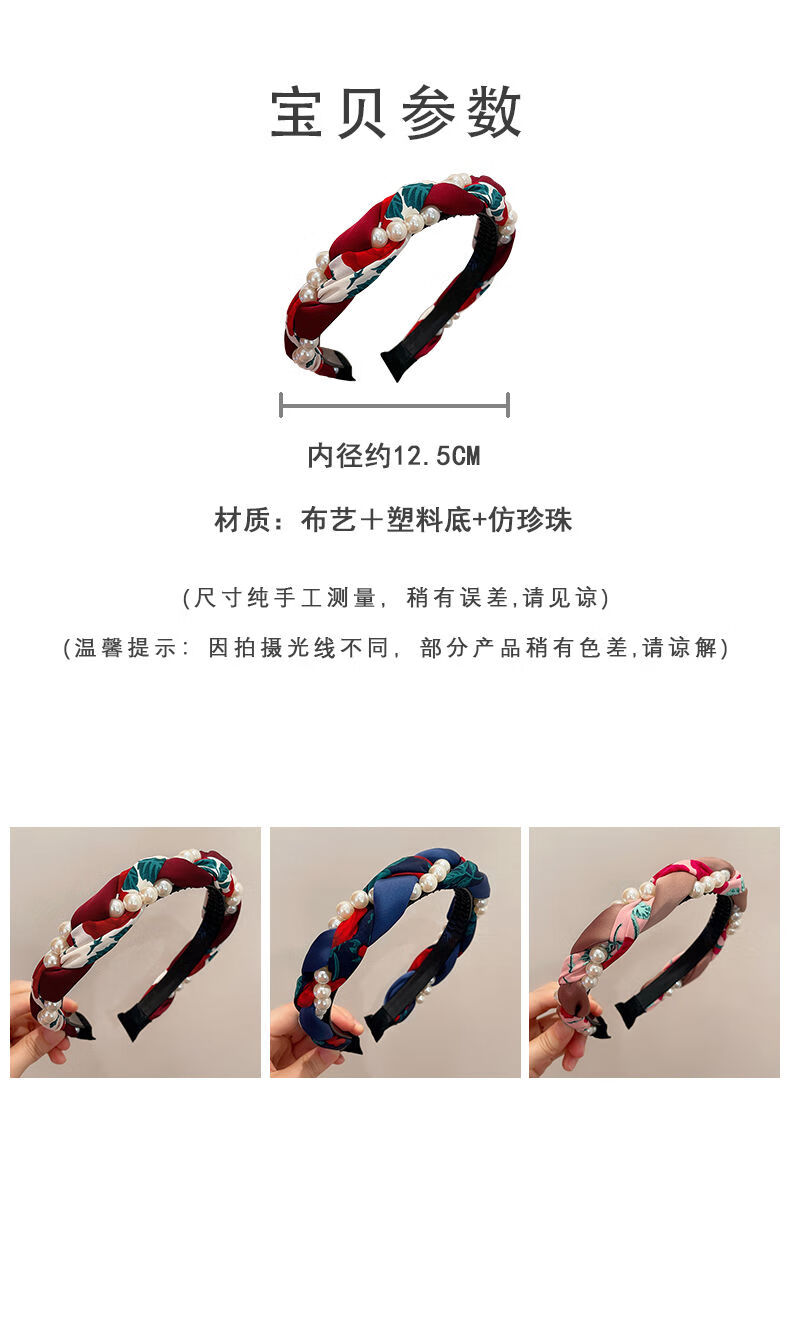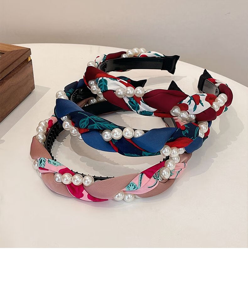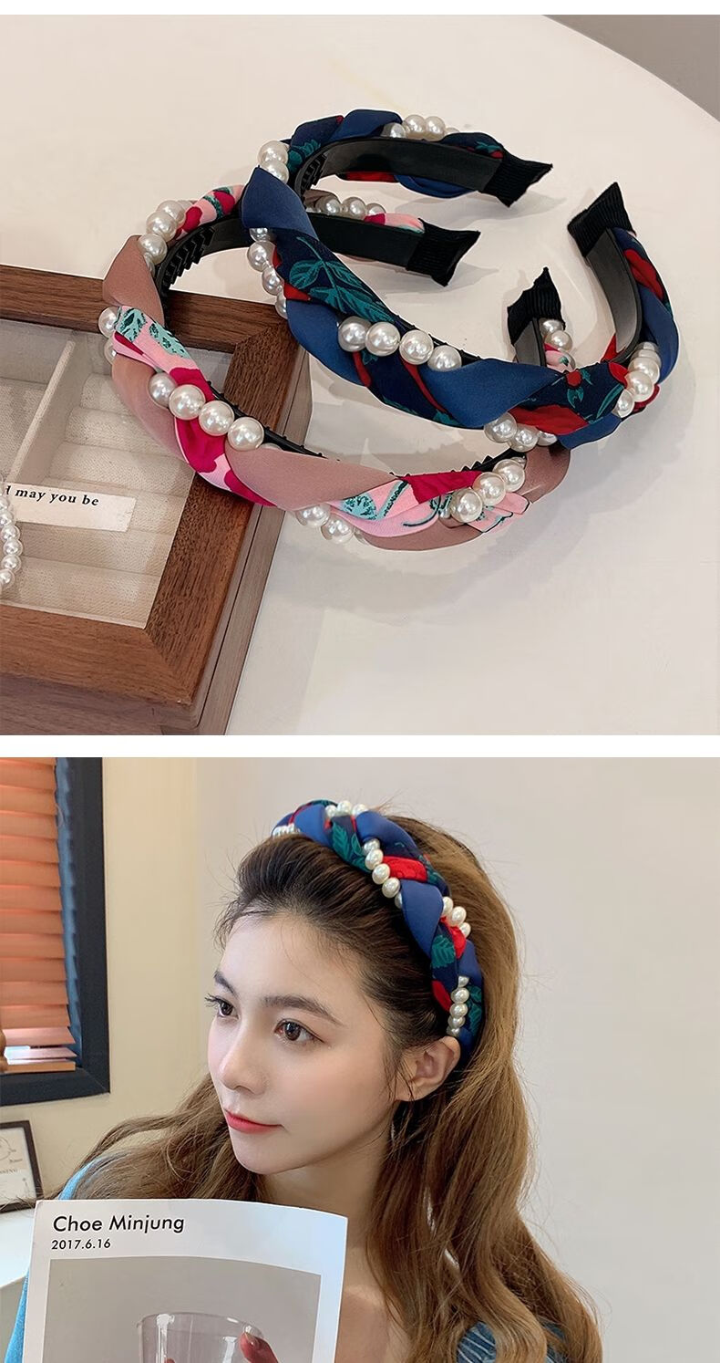 Beautiful Princess Korean version of high-end retro pearl twist headband, feminine wide-border non-slip toothed hairpin headband, high-end headwear 1# pearl twist red