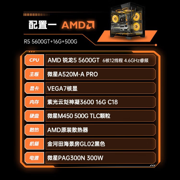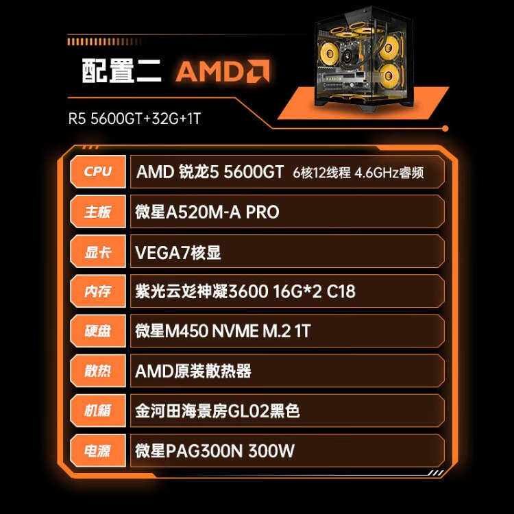 AMD Ryzen R5/R7 5600GT/5700G new host business enterprise office gaming desktop computer host designer computer DIY assembly machine configuration four/5700G/32G/1T
