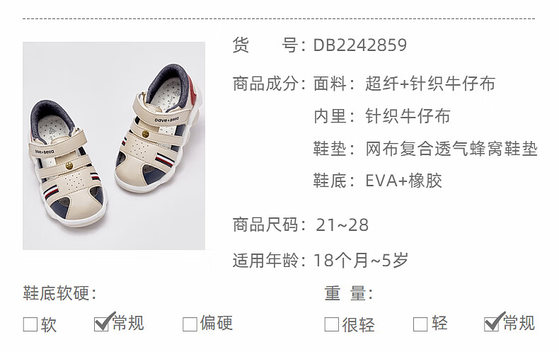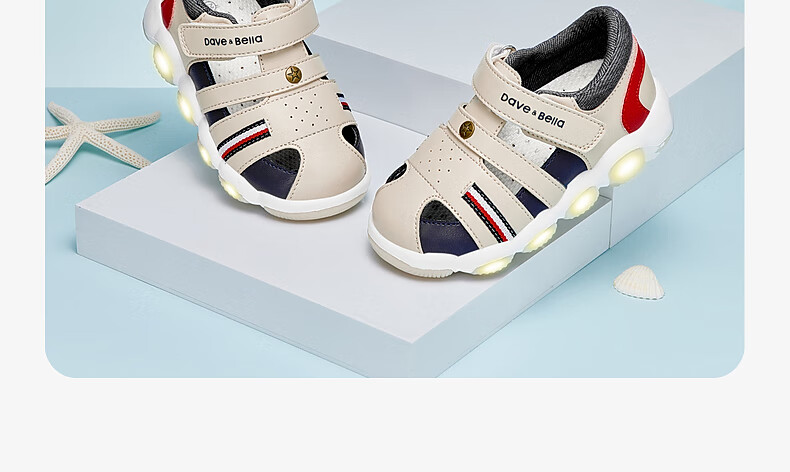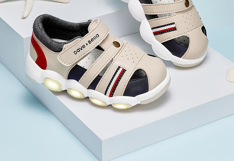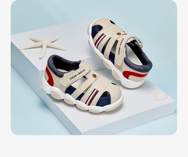 DAVE&BELLA boys' sandals, children's casual shoes, stylish baby shoes, soft-soled toddler shoes, summer new children's shoes, khaki color, in stock 26