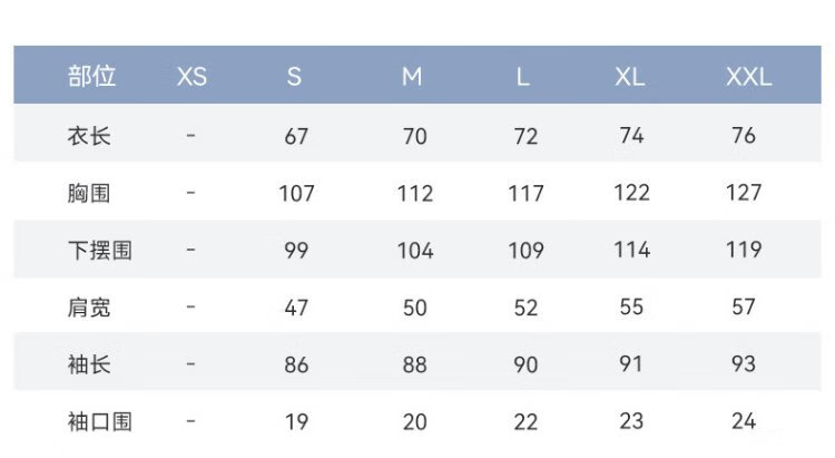 China(cm) 72-76 76-81 81-87 87-93 93-98
