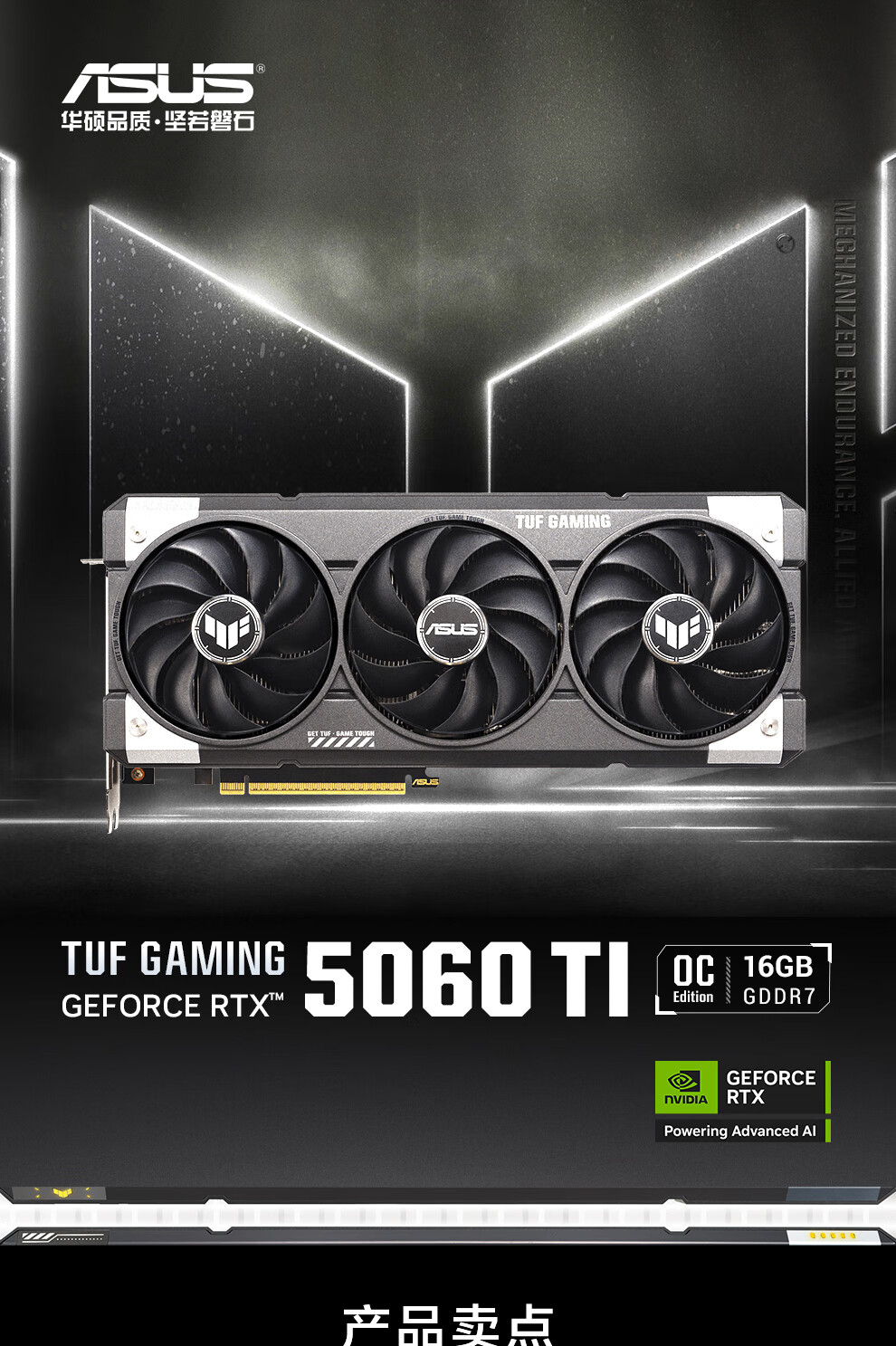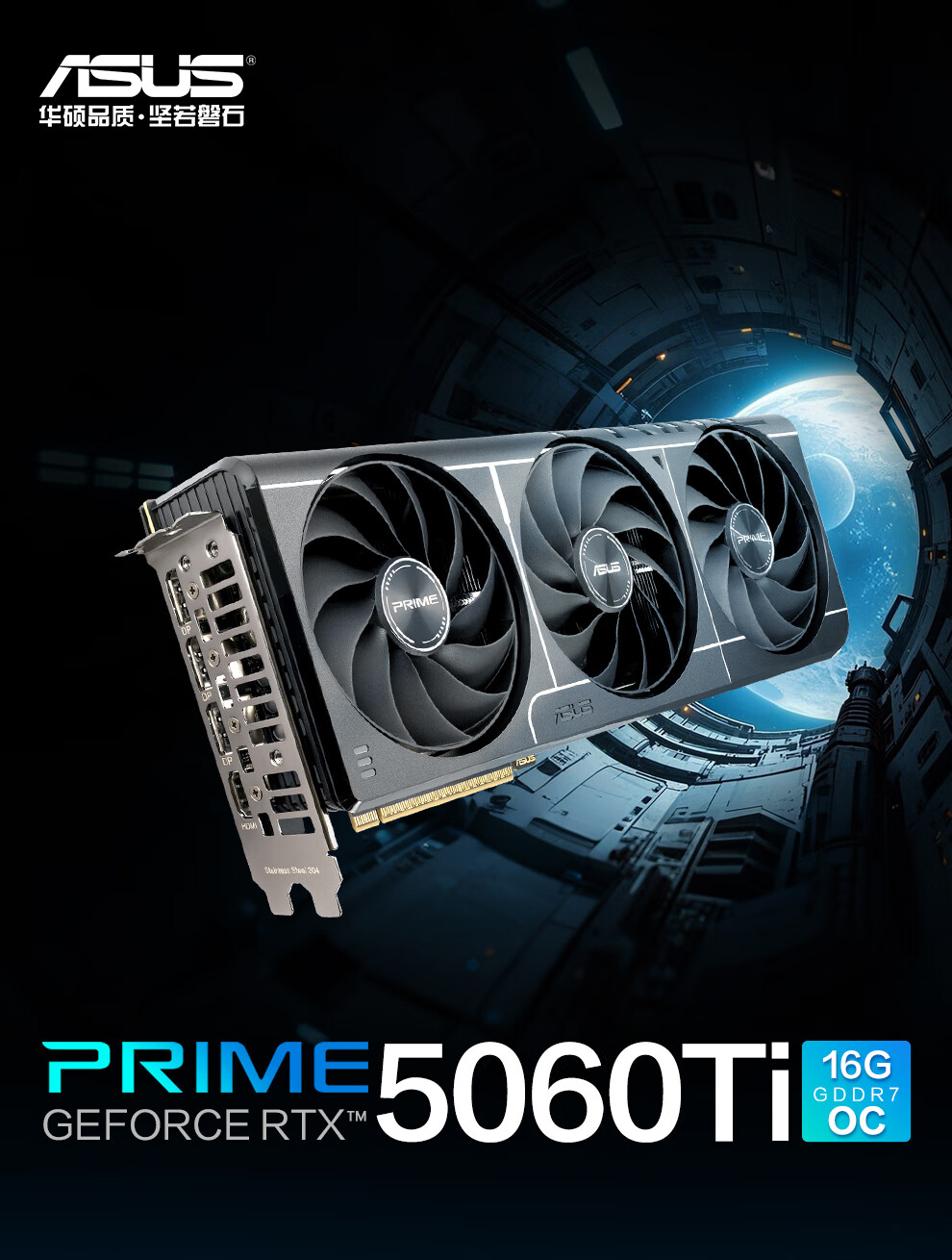 ASUS RTX5060Ti/4060Ti 8G/16G Master/Megalodon/Tianxuan/Snow Leopard AI Computing Power Live Rendering and Mapping E-Sports Game Desktop Computer Graphics Card PRIME-RTX5060Ti-O16G Master Operation Delta/Eternal Tribulation/Chicken PUBG/Valorant/Wukong