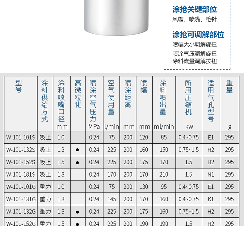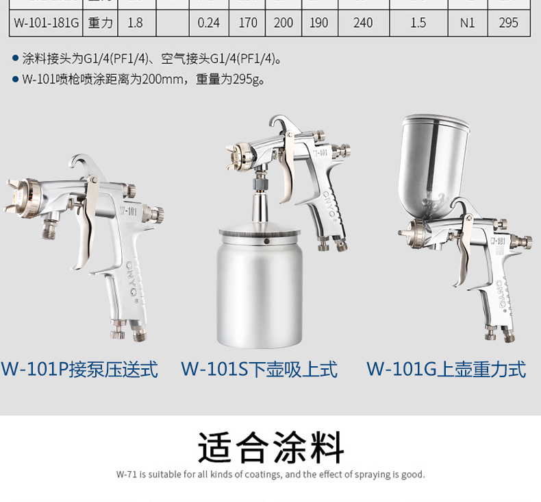 Yipeng is suitable for Iwasaki W-101 spray gun paint spray gun spray painting tool W-71 furniture car topcoat gas W-77 caliber 2.0 (upper and lower pot remarks)