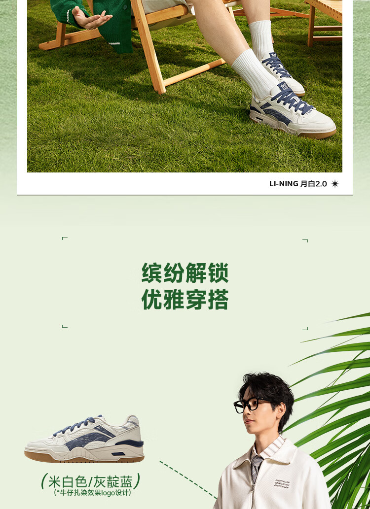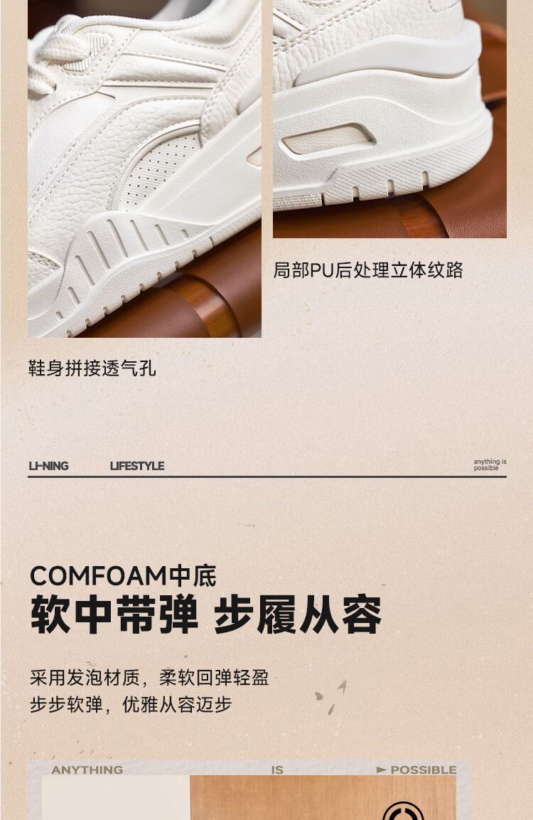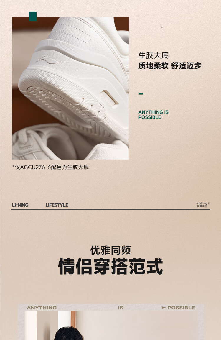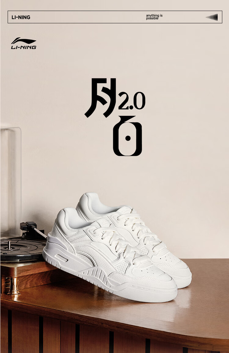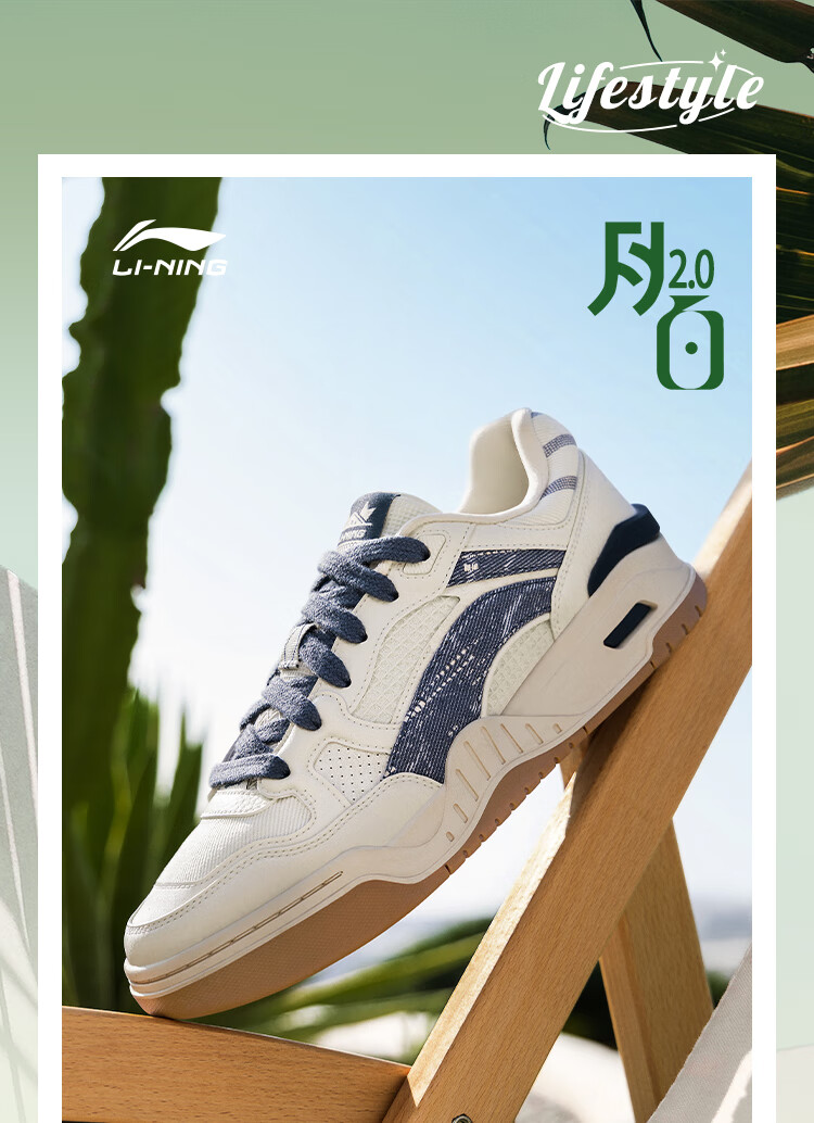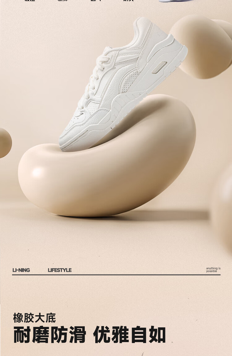 Li Ning Yuebai 2.0 | Men's and women's sneakers, low top, soft, resilient, breathable, white shoes, autumn and winter casual sports shoes, off-white (275 men's style)-1 42