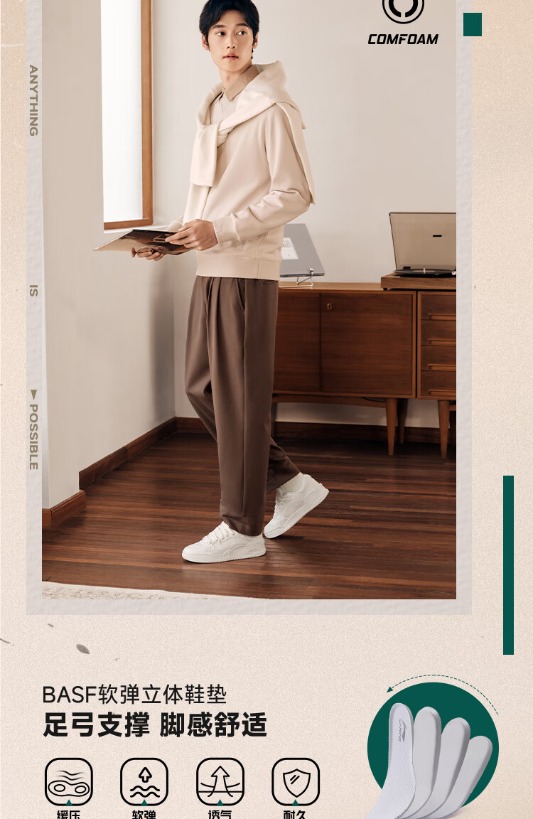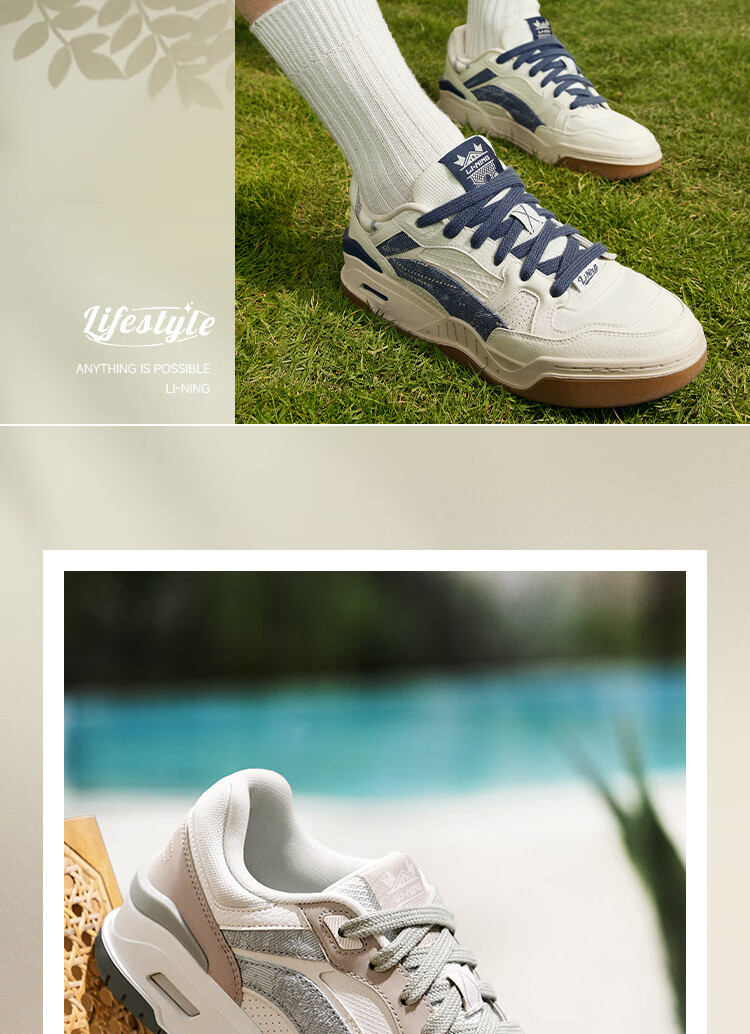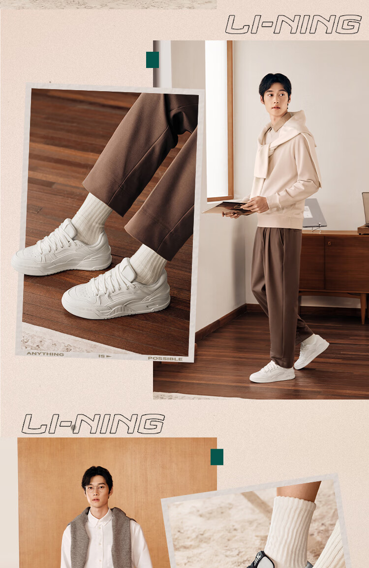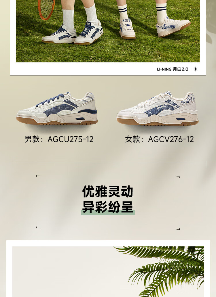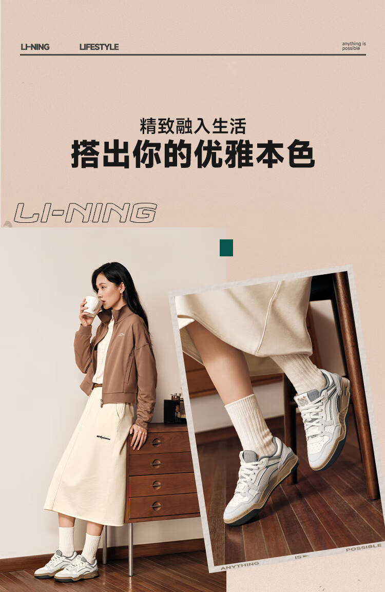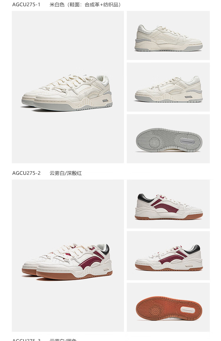 Li Ning Yuebai 2.0 | Men's and women's sneakers, low top, soft, resilient, breathable, white shoes, autumn and winter casual sports shoes, off-white (275 men's style)-1 42