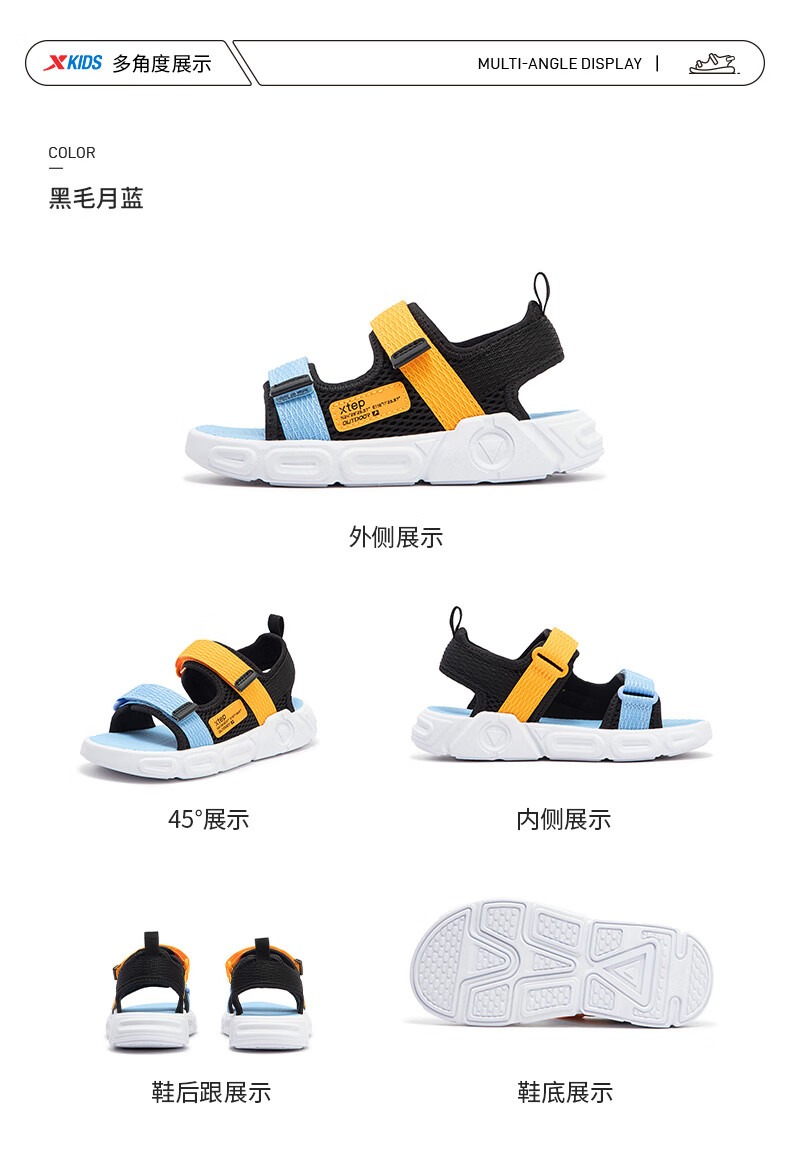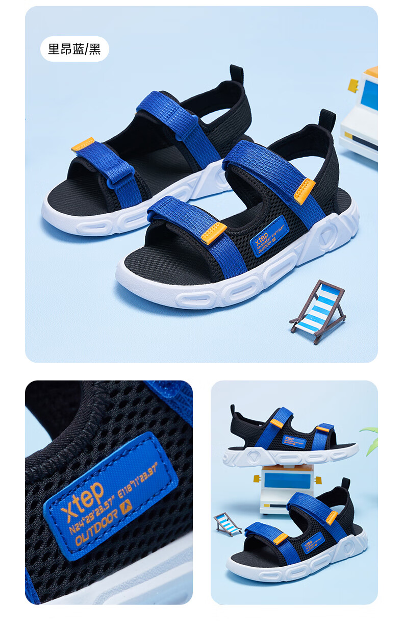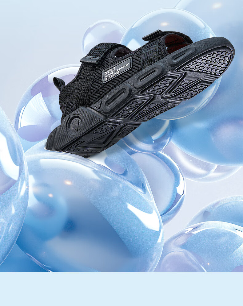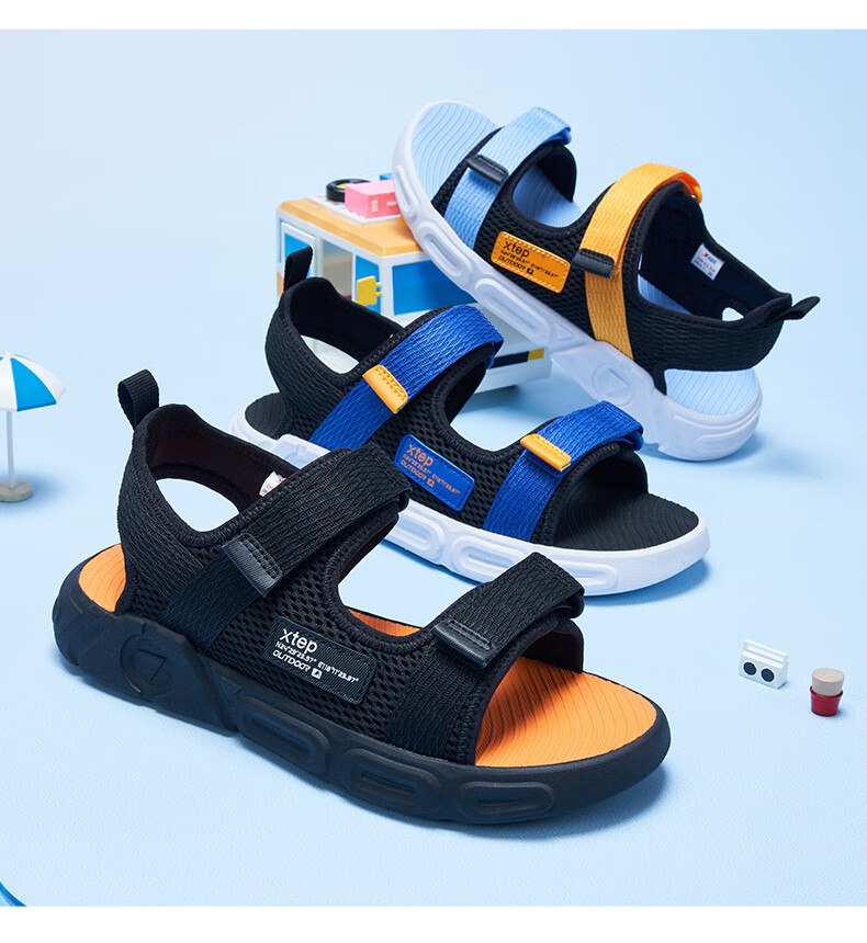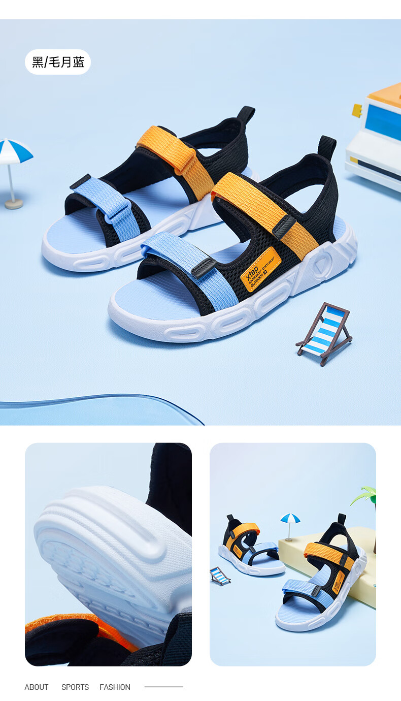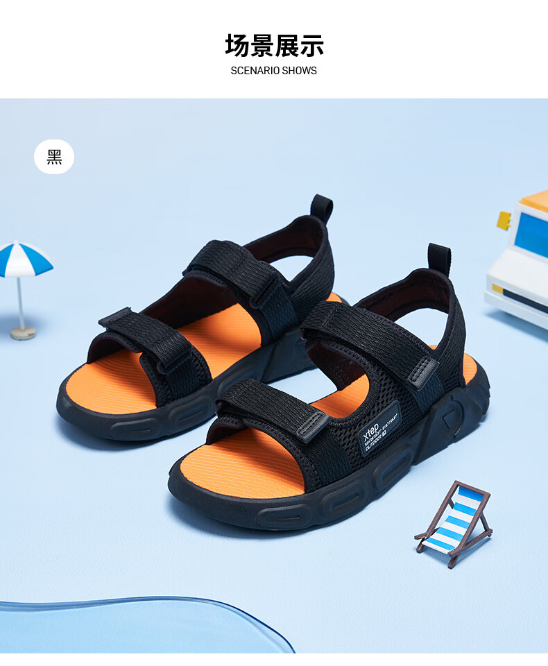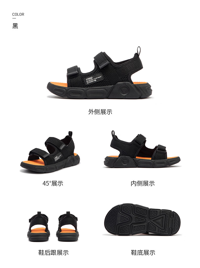 XTEP children's shoes, children's sports sandals, breathable and comfortable open-toe sandals, non-slip beach shoes, small, medium and large children's summer sandals, black 27