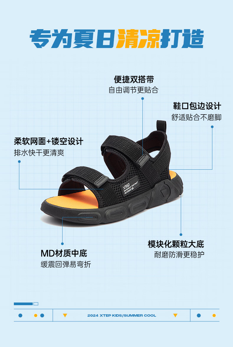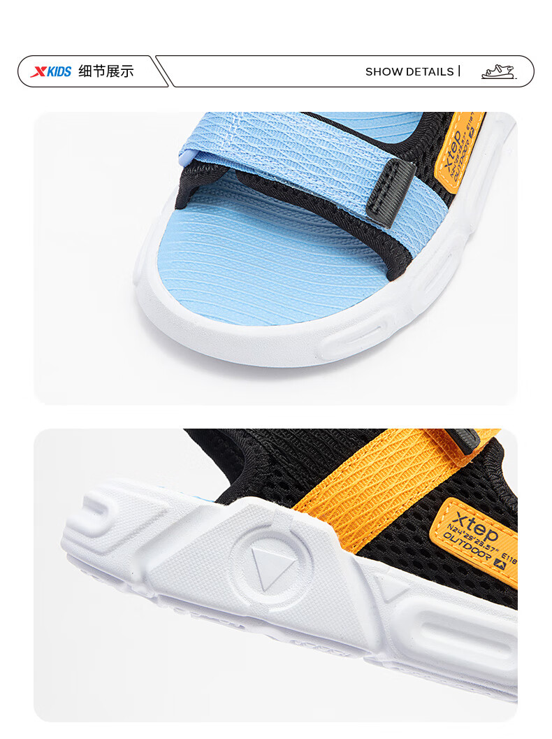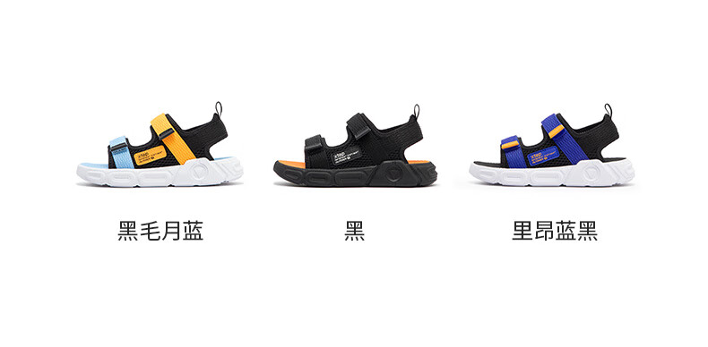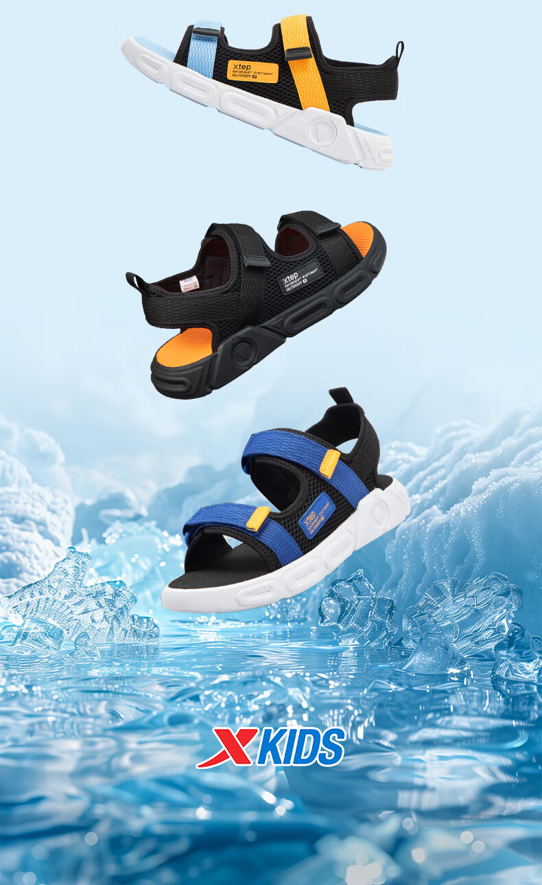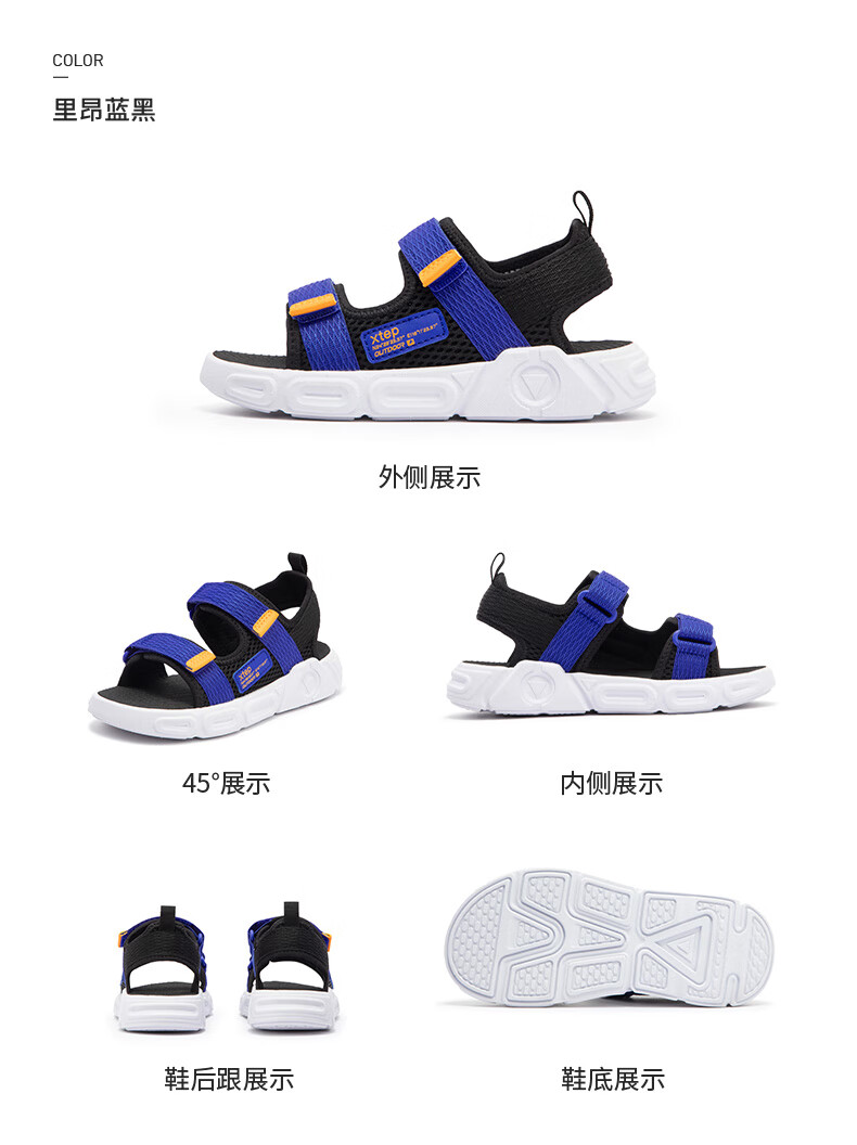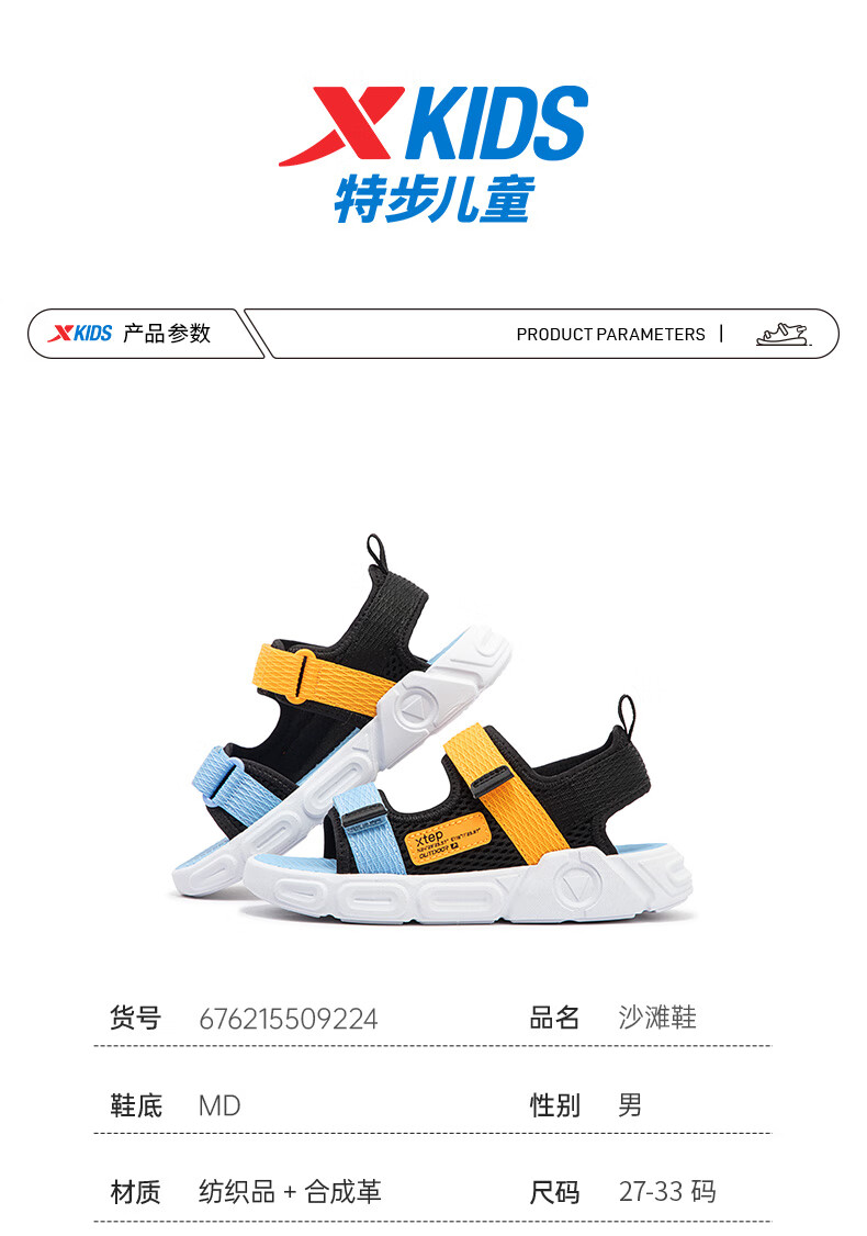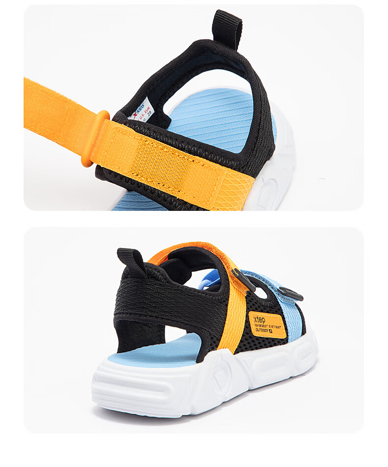XTEP children's shoes, children's sports sandals, breathable and comfortable open-toe sandals, non-slip beach shoes, small, medium and large children's summer sandals, black 27
