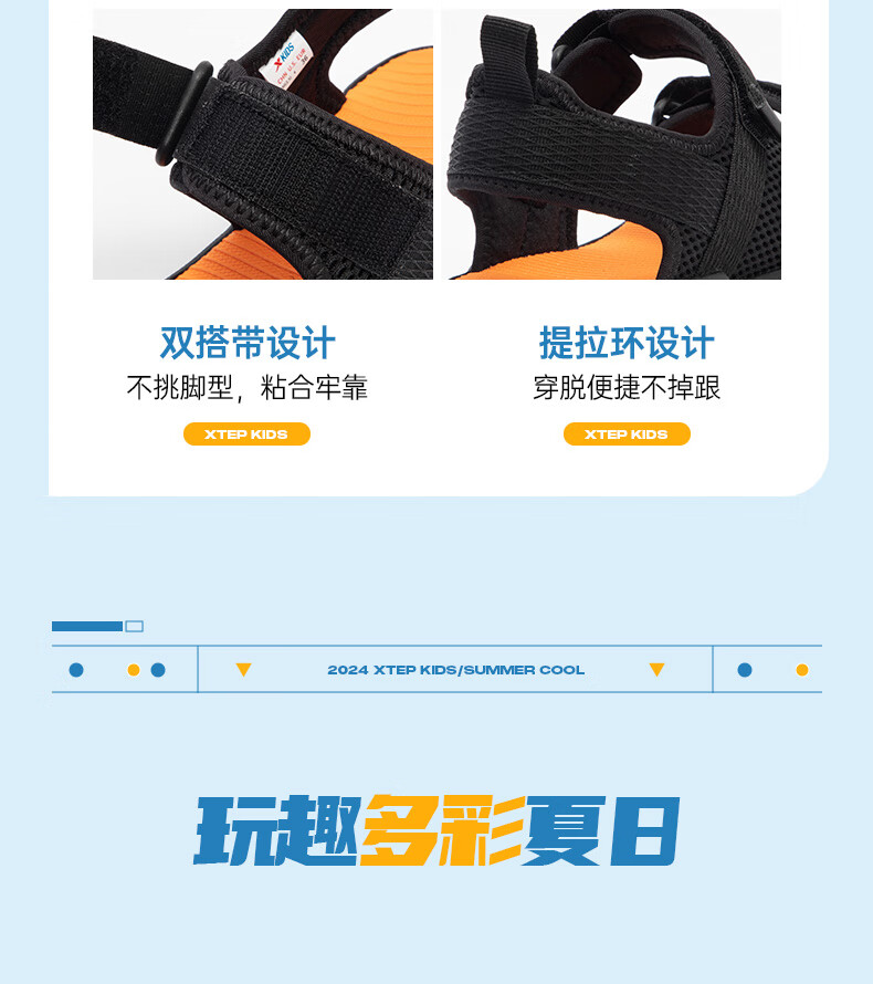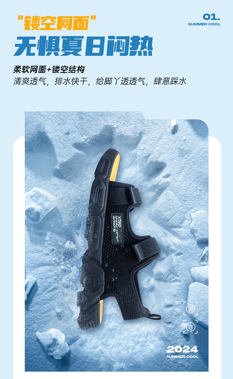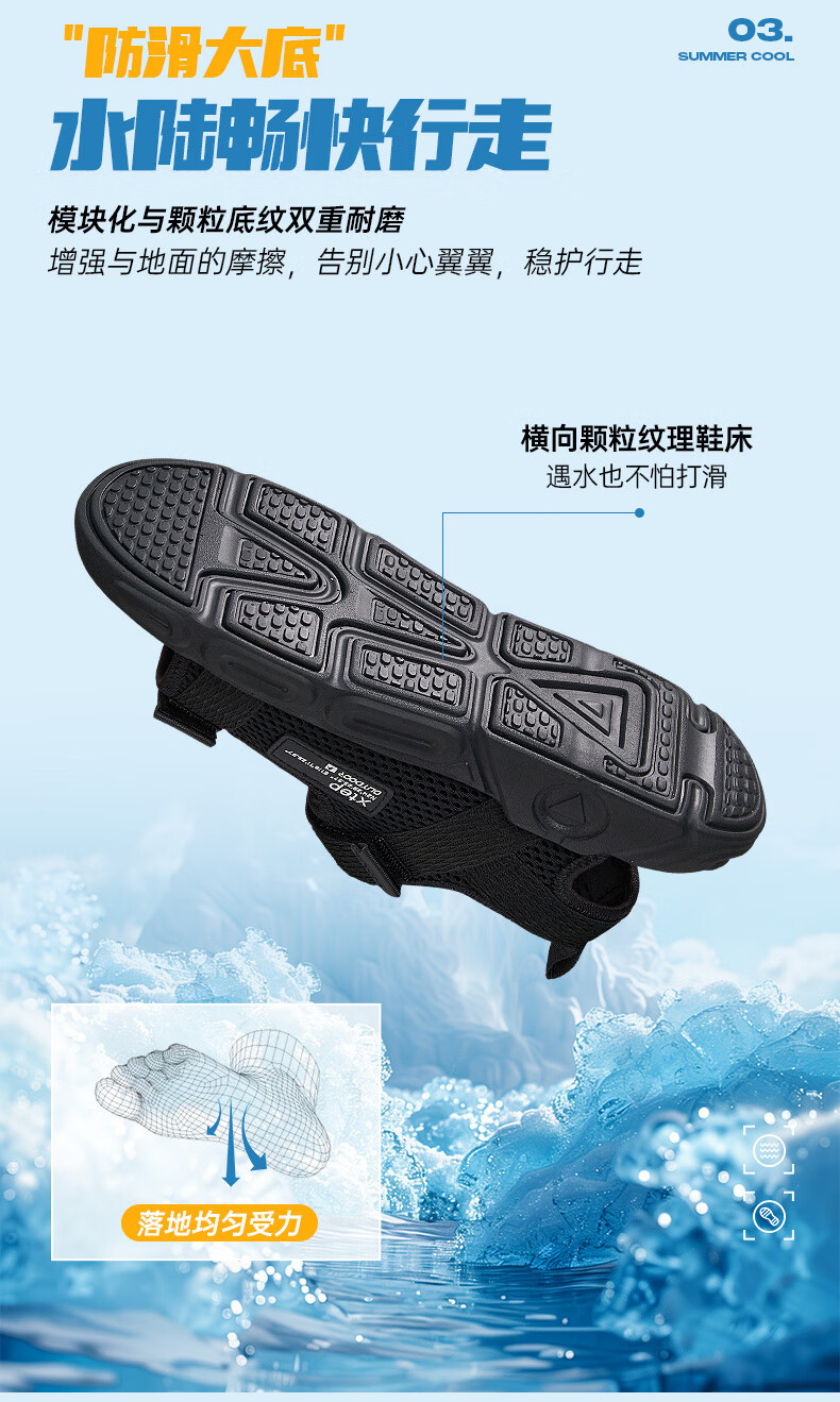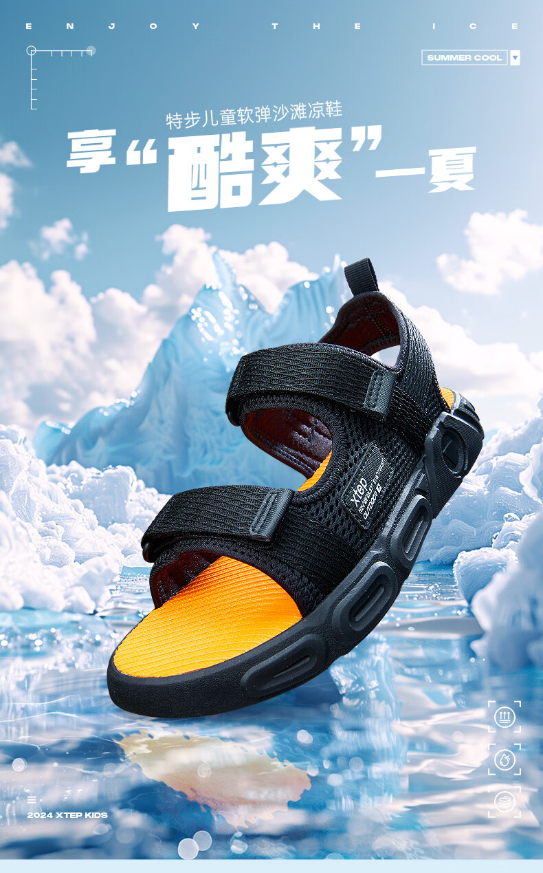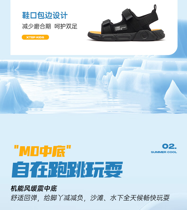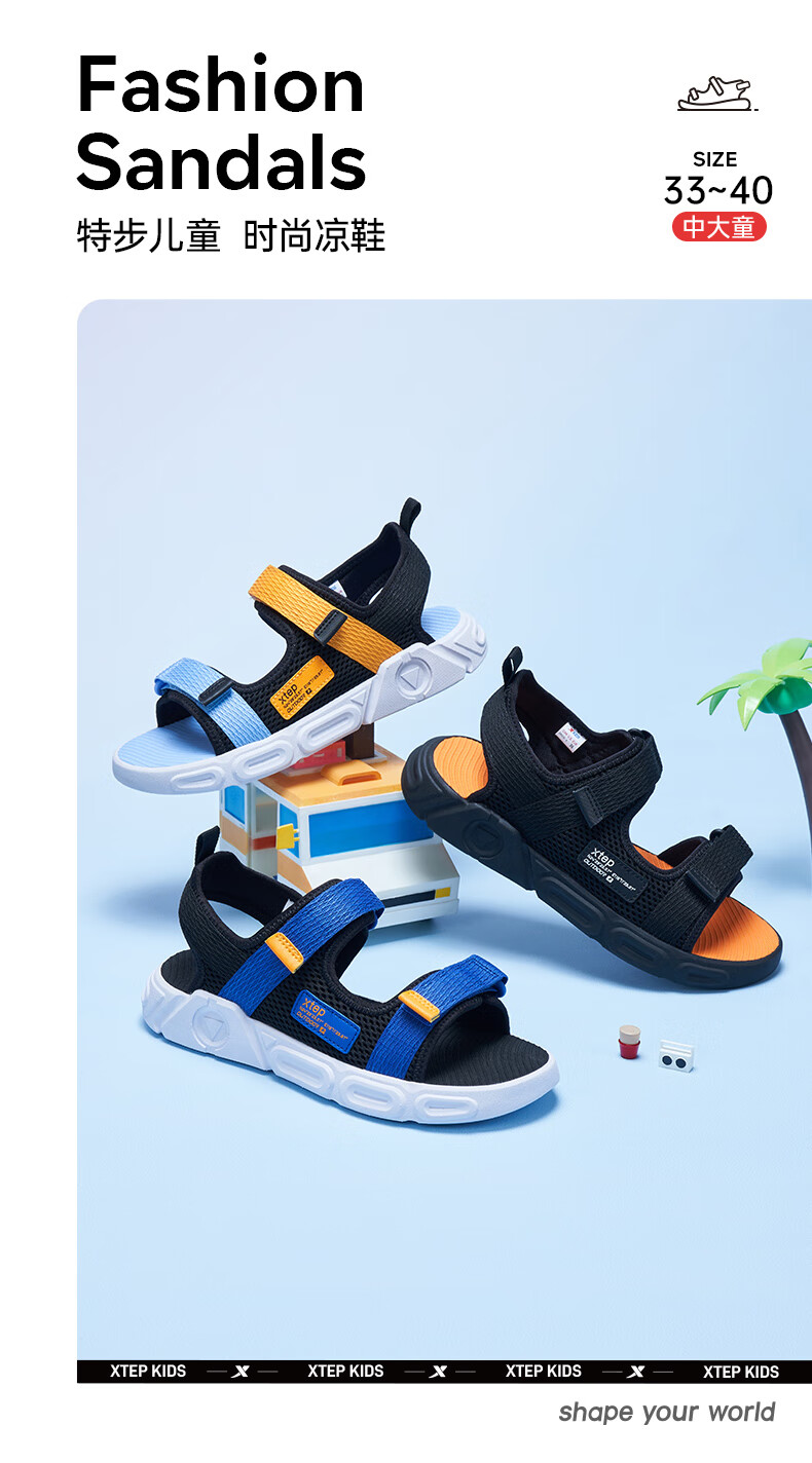 XTEP children's shoes, children's sports sandals, breathable and comfortable open-toe sandals, non-slip beach shoes, small, medium and large children's summer sandals, black 27