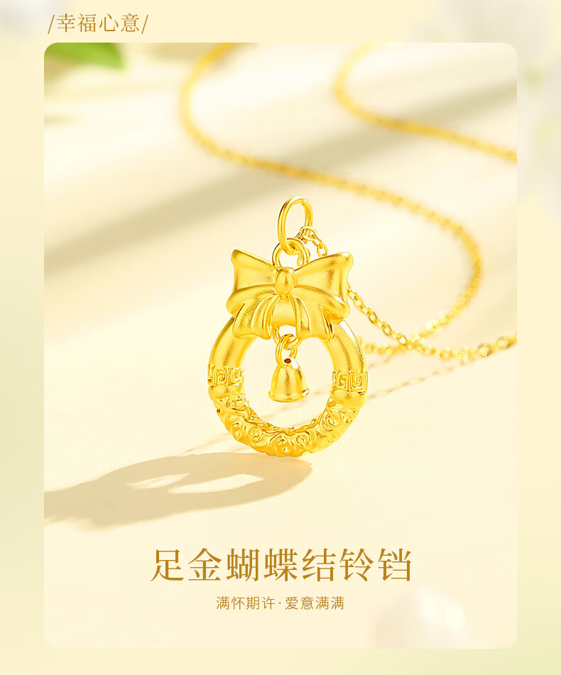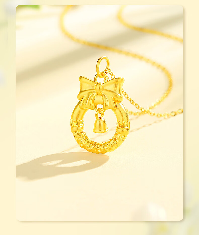CHINA GOLD Gold Necklace Women's Pure Gold Bow Fugitive Princess Bell Pendant Birthday Christmas Safe Gift for Girlfriend Pure Gold Pendant About 0.8g* Comes with Silver Chain Selection Gift Box