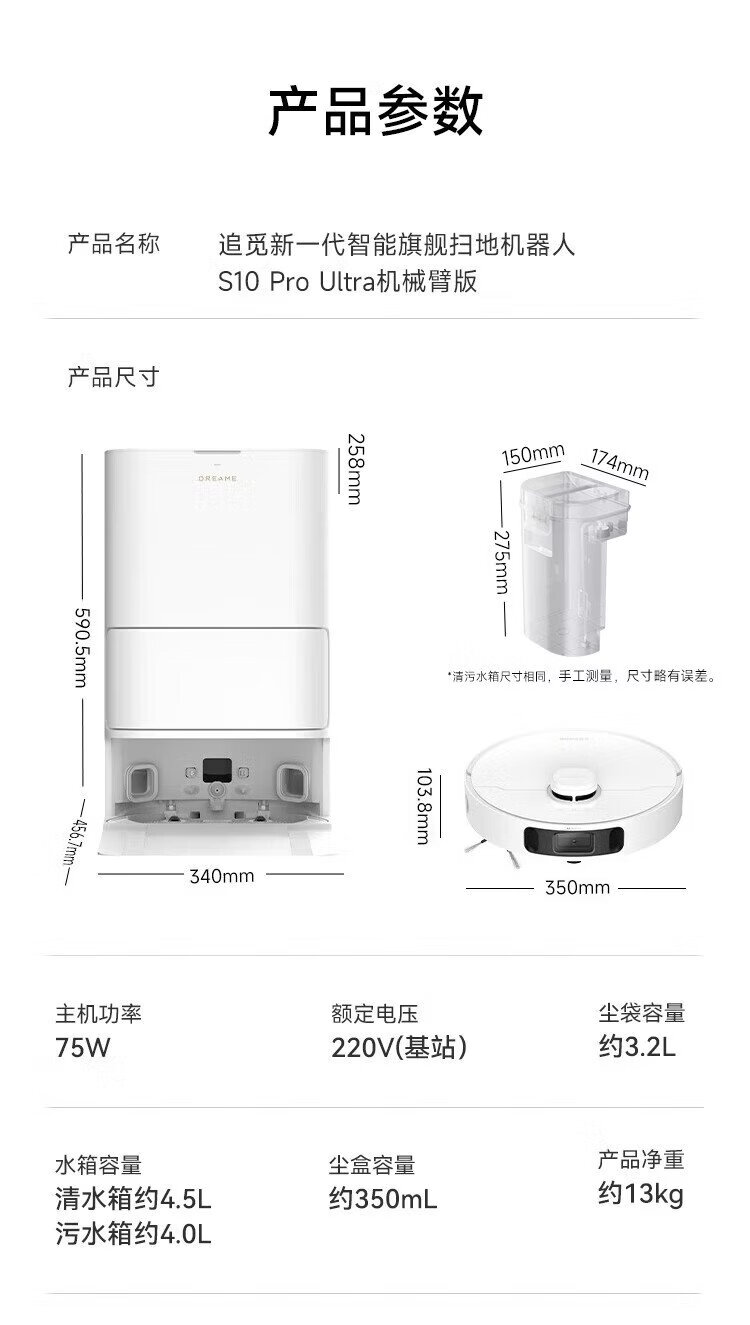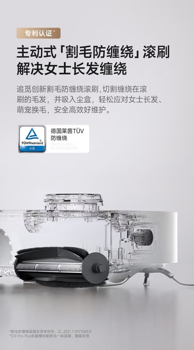 Chuimi official machine S10Pro Ultra/Plus robotic arm version, sweeping robot, hot water washing mop, active hair cutting, self-dust collection, large suction sweeping and mopping all in one, S10 Proplus robotic arm water tank version, slight trial B level