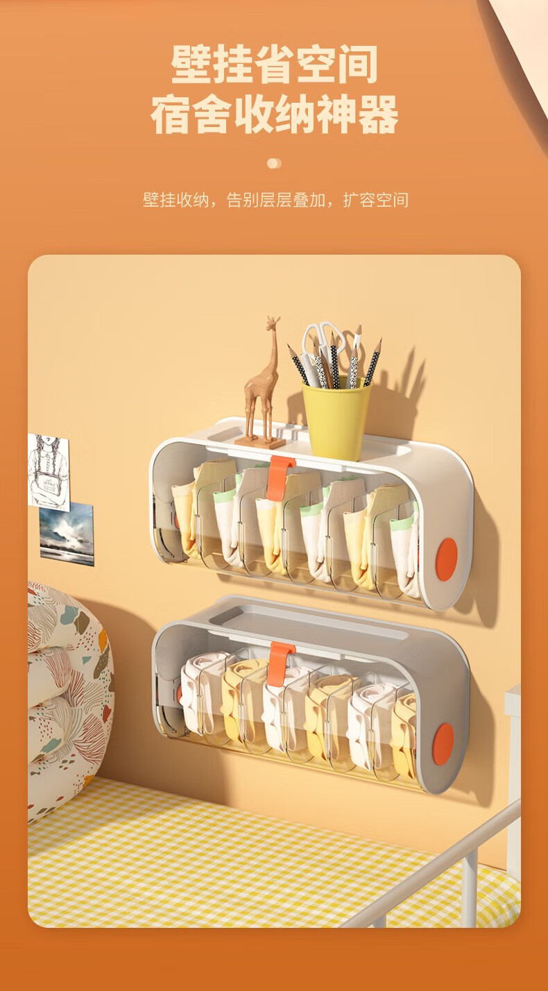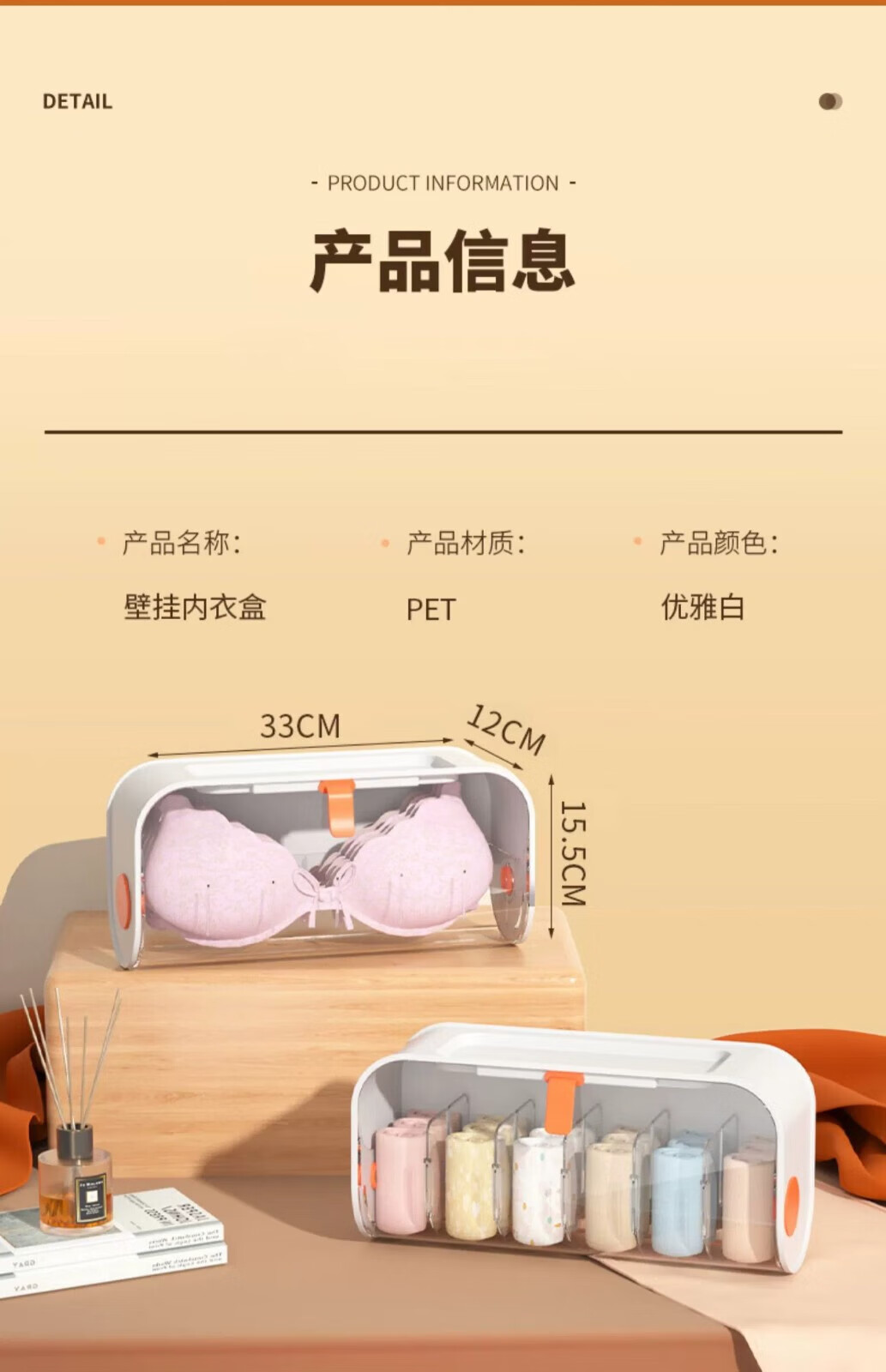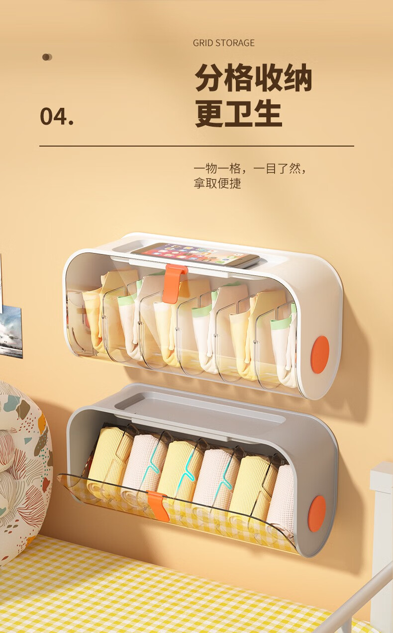 Huangsi wall-mounted storage box underwear, panties and socks storage three-in-one compartment drawer type socks, underwear and bra organization, underwear storage box, white