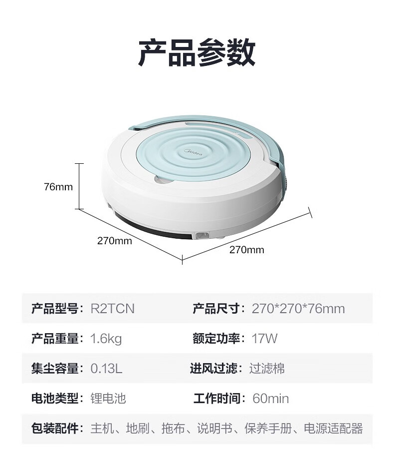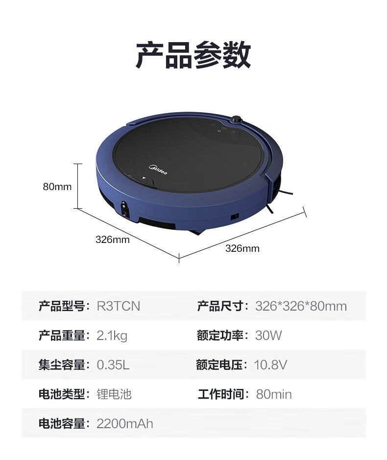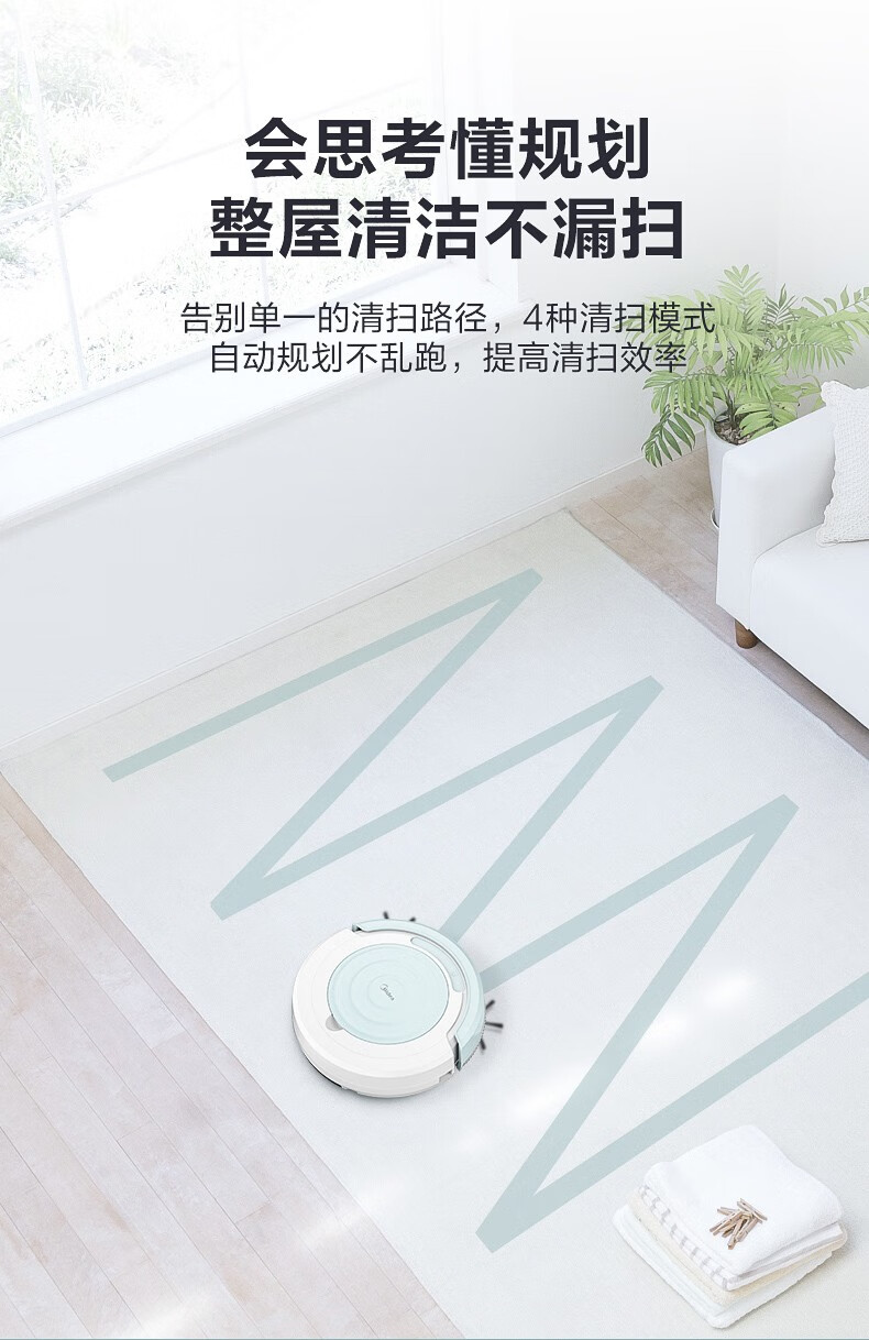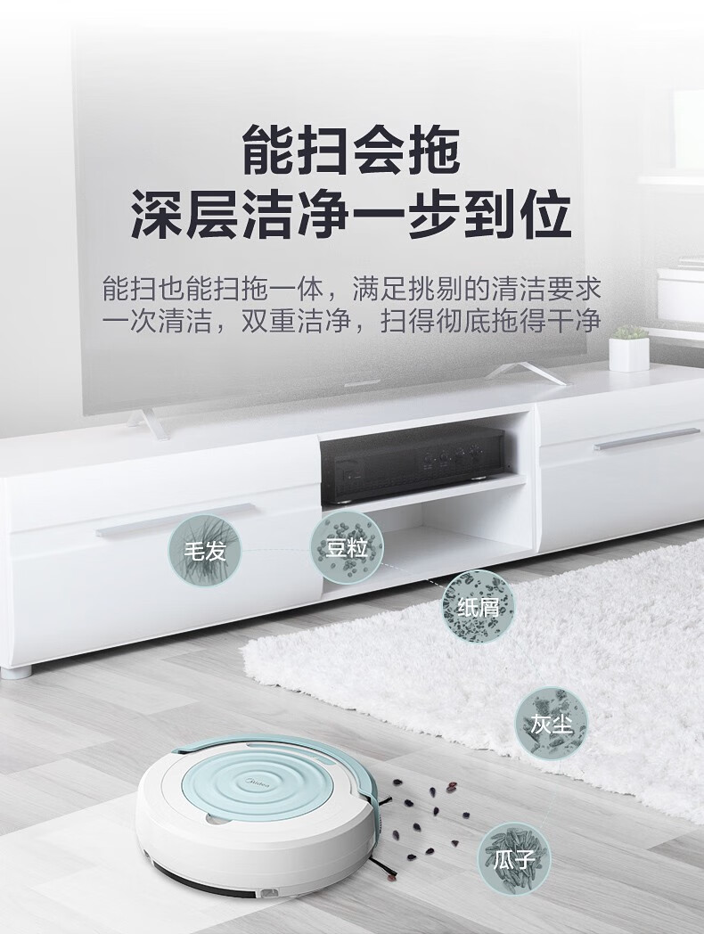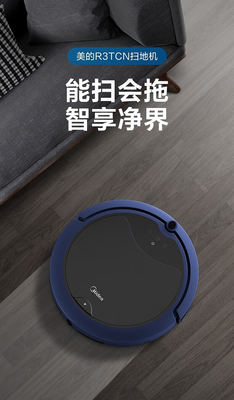 Midea sweeping robot, household fully automatic sweeping and mopping all-in-one machine, planned cleaning environment sensing, convenient vacuum cleaner, low battery automatic recharging R3TCN