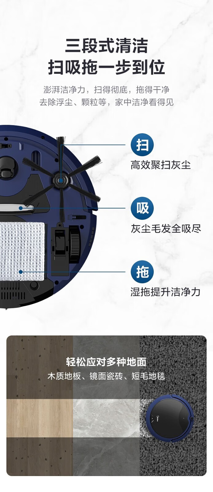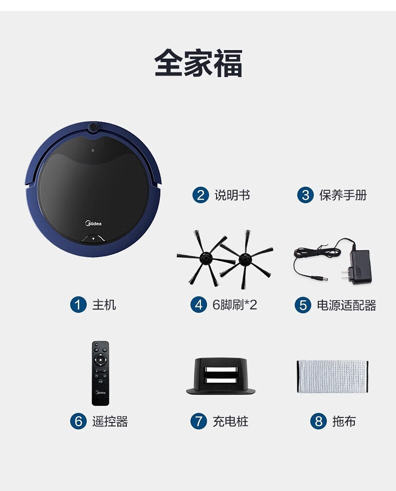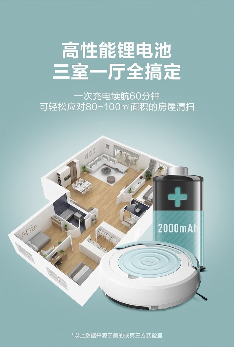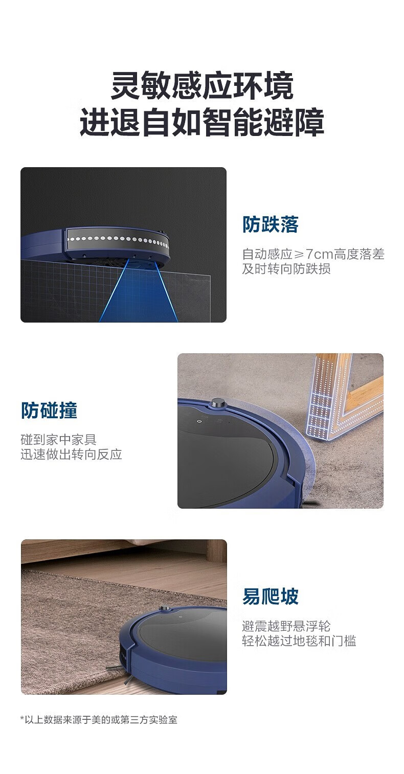 Midea sweeping robot, household fully automatic sweeping and mopping all-in-one machine, planned cleaning environment sensing, convenient vacuum cleaner, low battery automatic recharging R3TCN