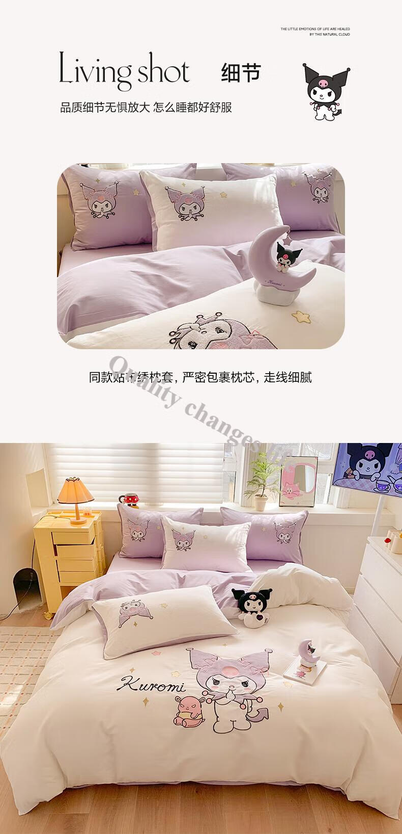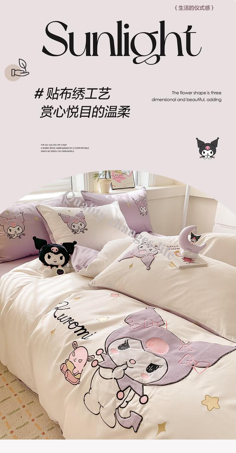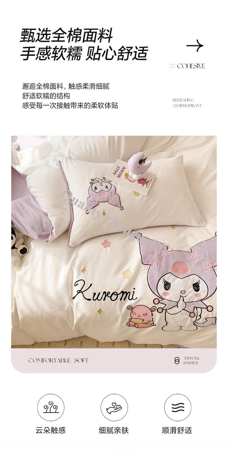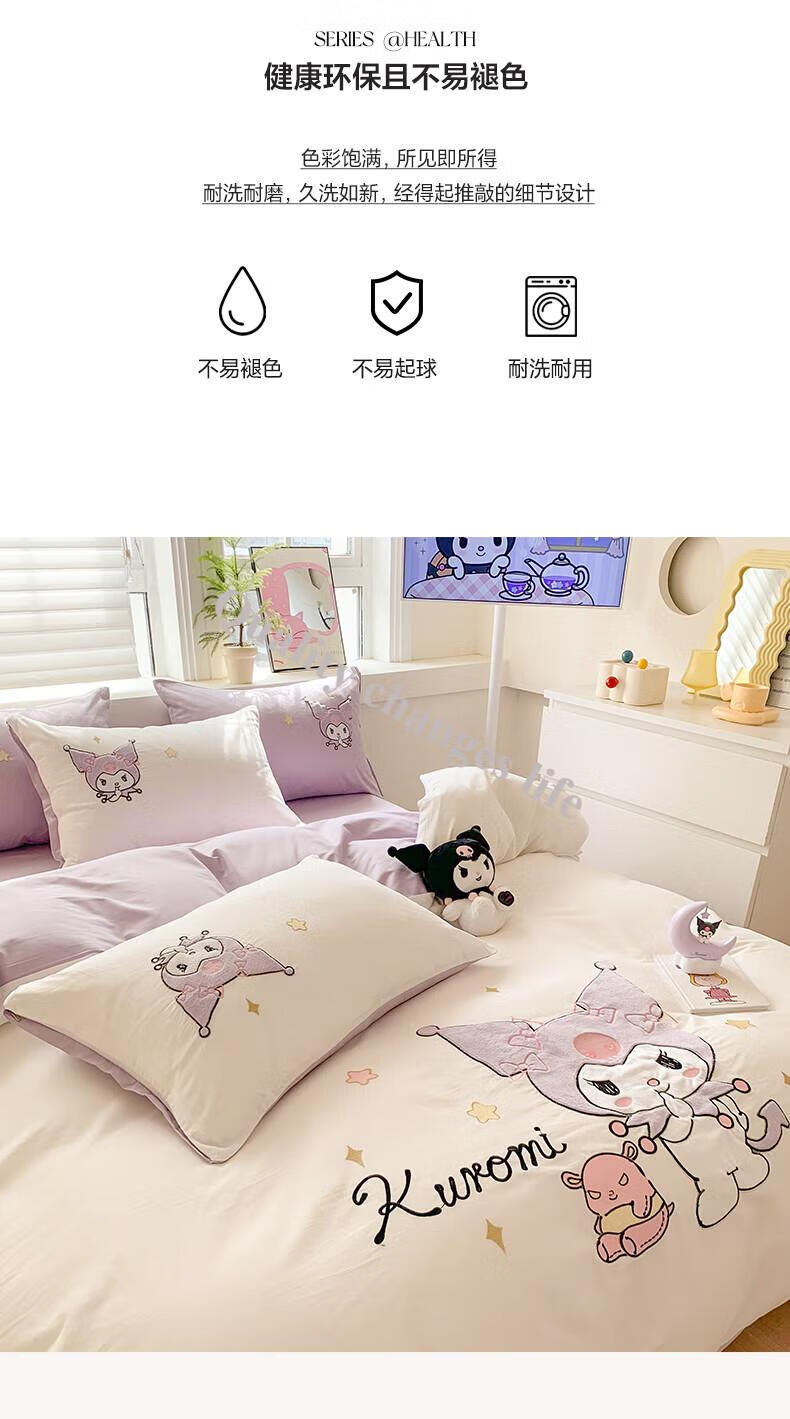Mercury Series Home Textiles Cartoon Cute Kuromi Cotton Four-piece Set Pure Cotton Quilt Cover Dormitory Sheet Three-piece Set Bedding Camp Kuromi-White Purple 1.5m Sheet Style Four-piece Set
