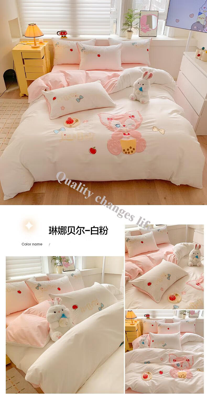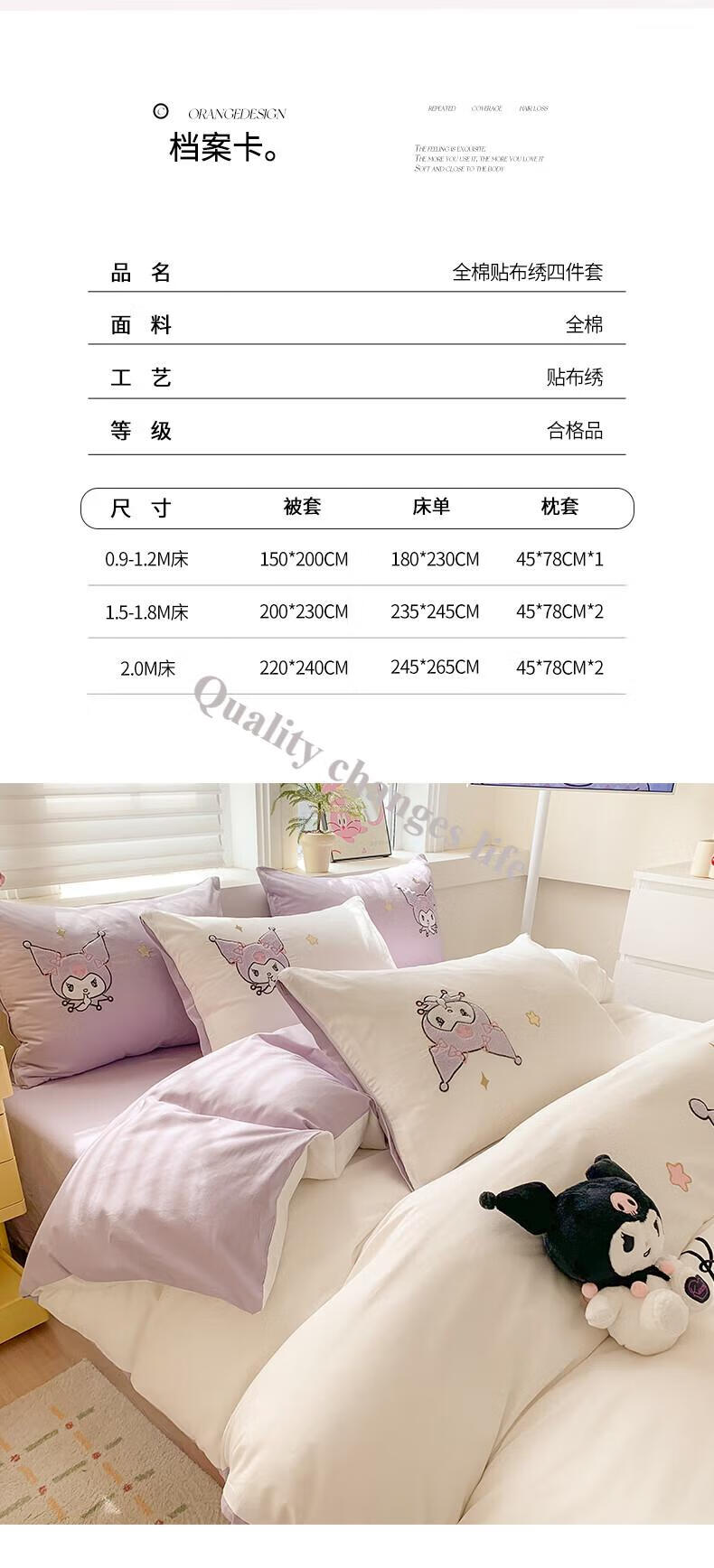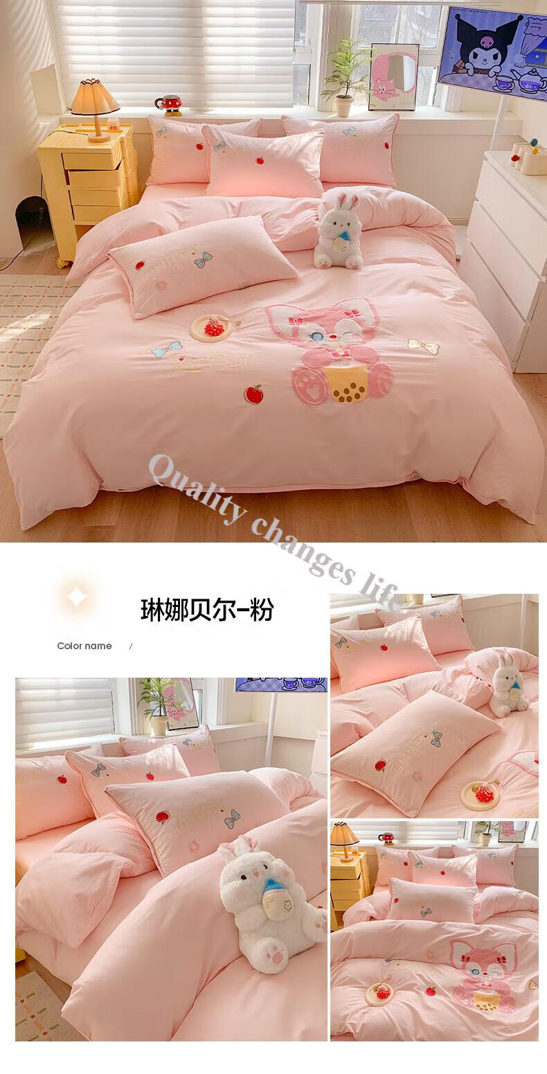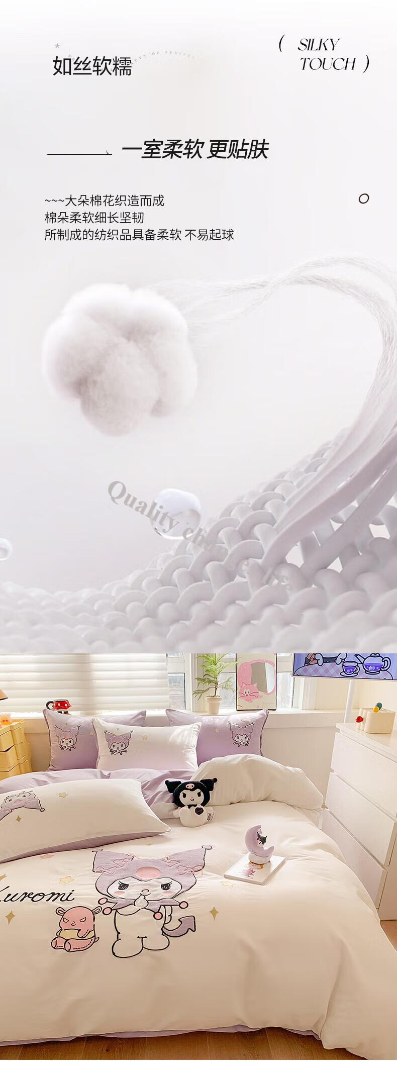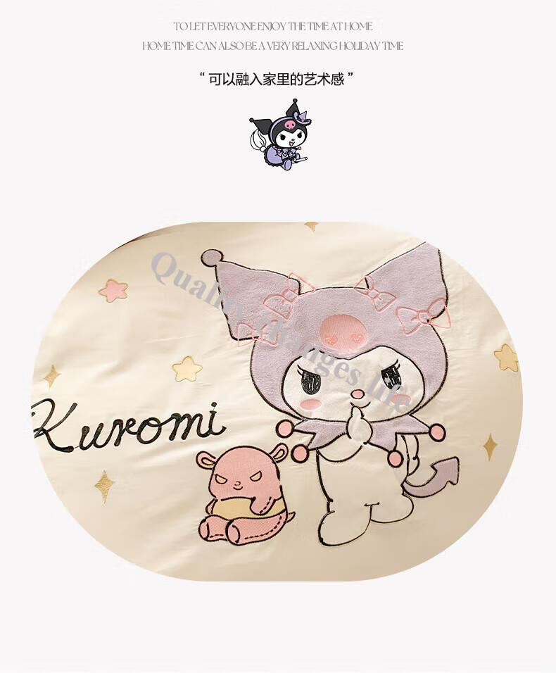 Mercury Series Home Textiles Cartoon Cute Kuromi Cotton Four-piece Set Pure Cotton Quilt Cover Dormitory Sheet Three-piece Set Bedding Camp Kuromi-White Purple 1.5m Sheet Style Four-piece Set