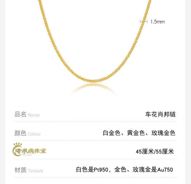 Fat Donglai same style 18k gold Chopard chain adjustable Pt950 necklace for women and men 18k gold rose gold extended snake bone Au750 gold Chopard chain 2.8g x 56cm