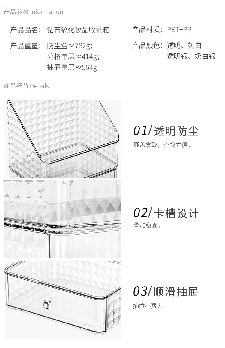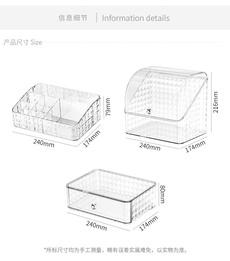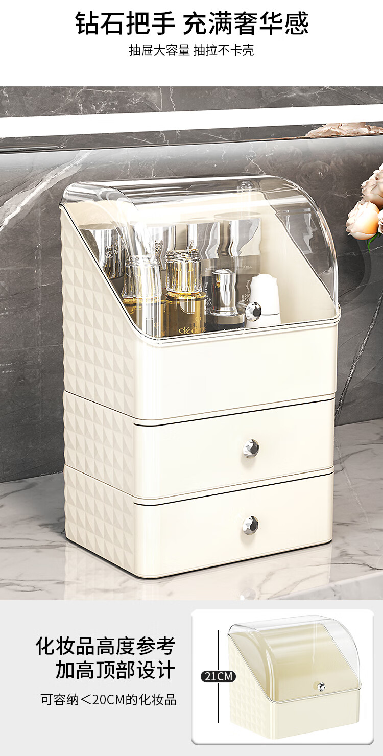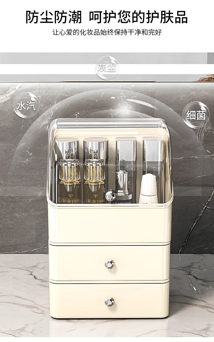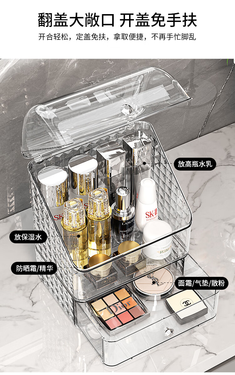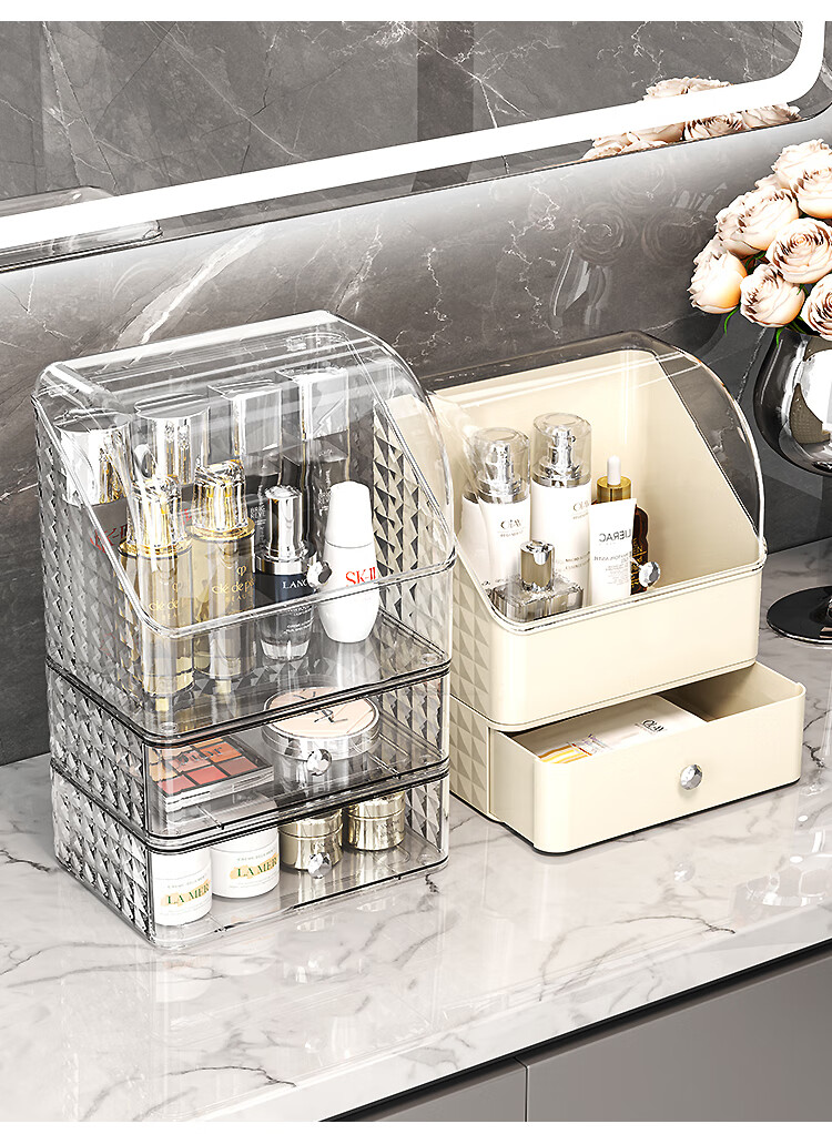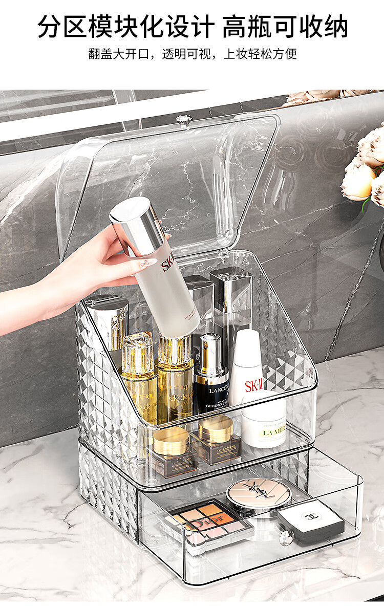 Buxinju Transparent Acrylic Cosmetics Storage Box Dust-proof Covered Desktop Dressing Table Skin Care Product Storage Rack Divider Box/Transparent Silver Can be stacked with drawers