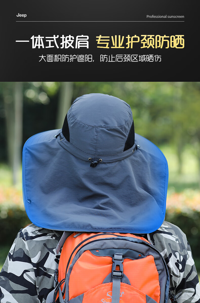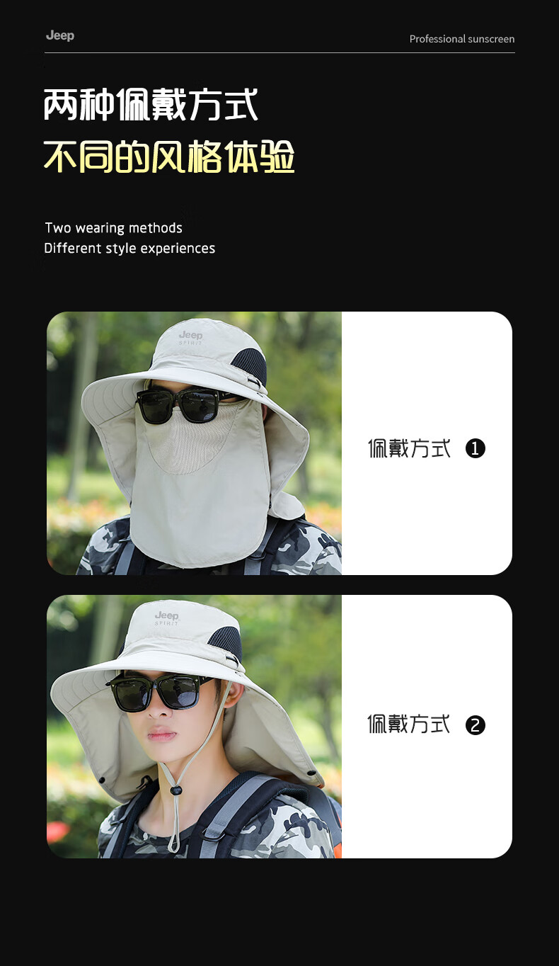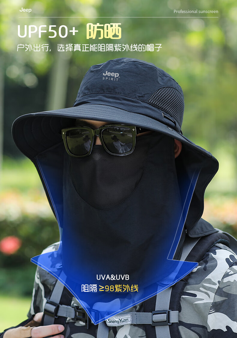 JEEP SPIRIT sun protection hat men's summer sun hat mask integrated neck protection fishing hat outdoor waterproof sun hat covering the whole face dark gray one size fits all adjustable