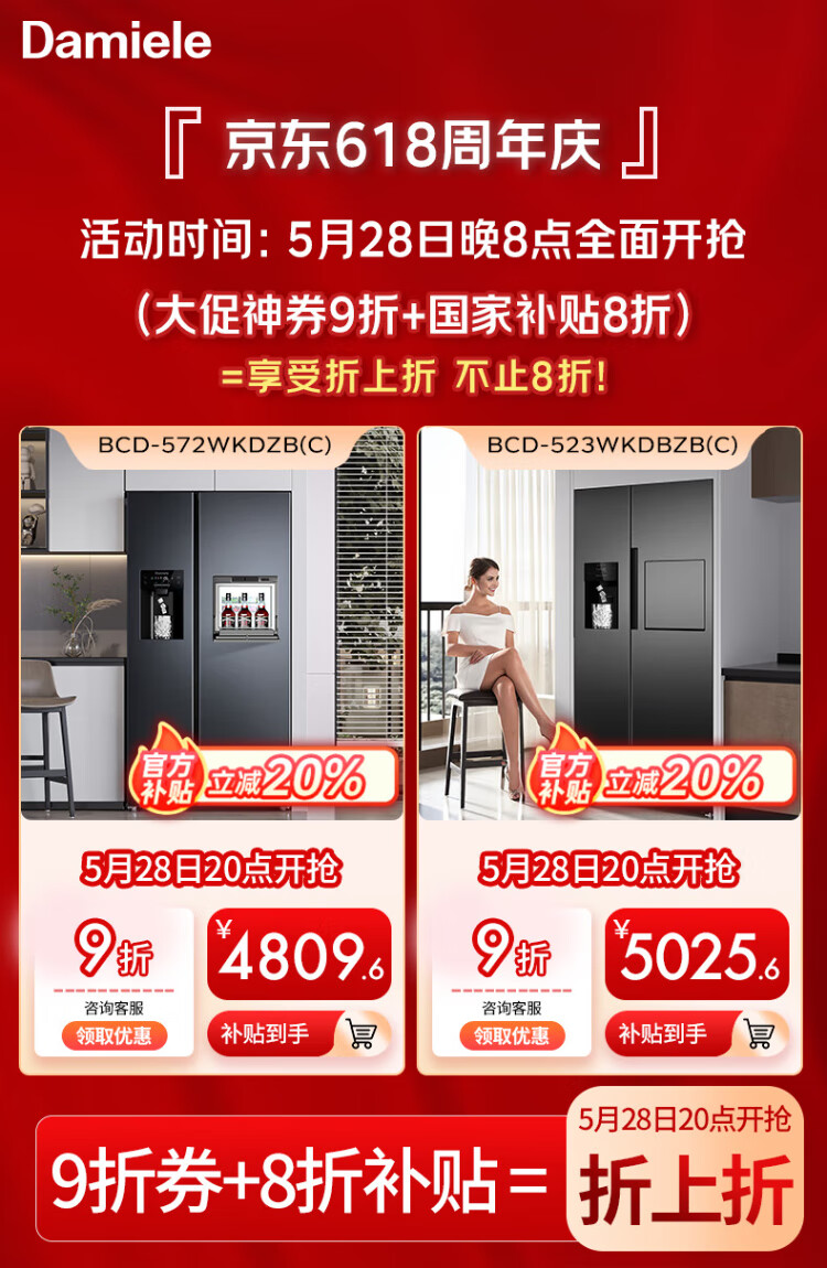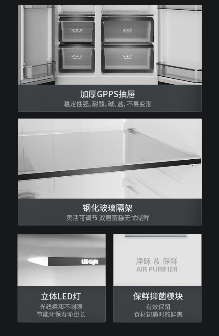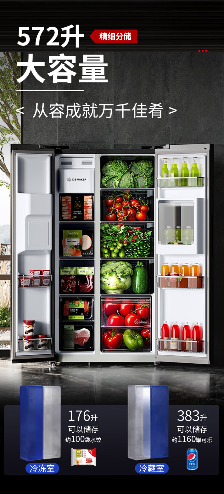 Damiele's hot-selling new product 572 double door side-by-side refrigerator fully automatic ice making refrigerator ice making household refrigerator variable frequency refrigerator air-cooled frost-free large capacity refrigerator 572 (C) water tank first level + fresh flavor for one week + magic box + silver ion sterilization